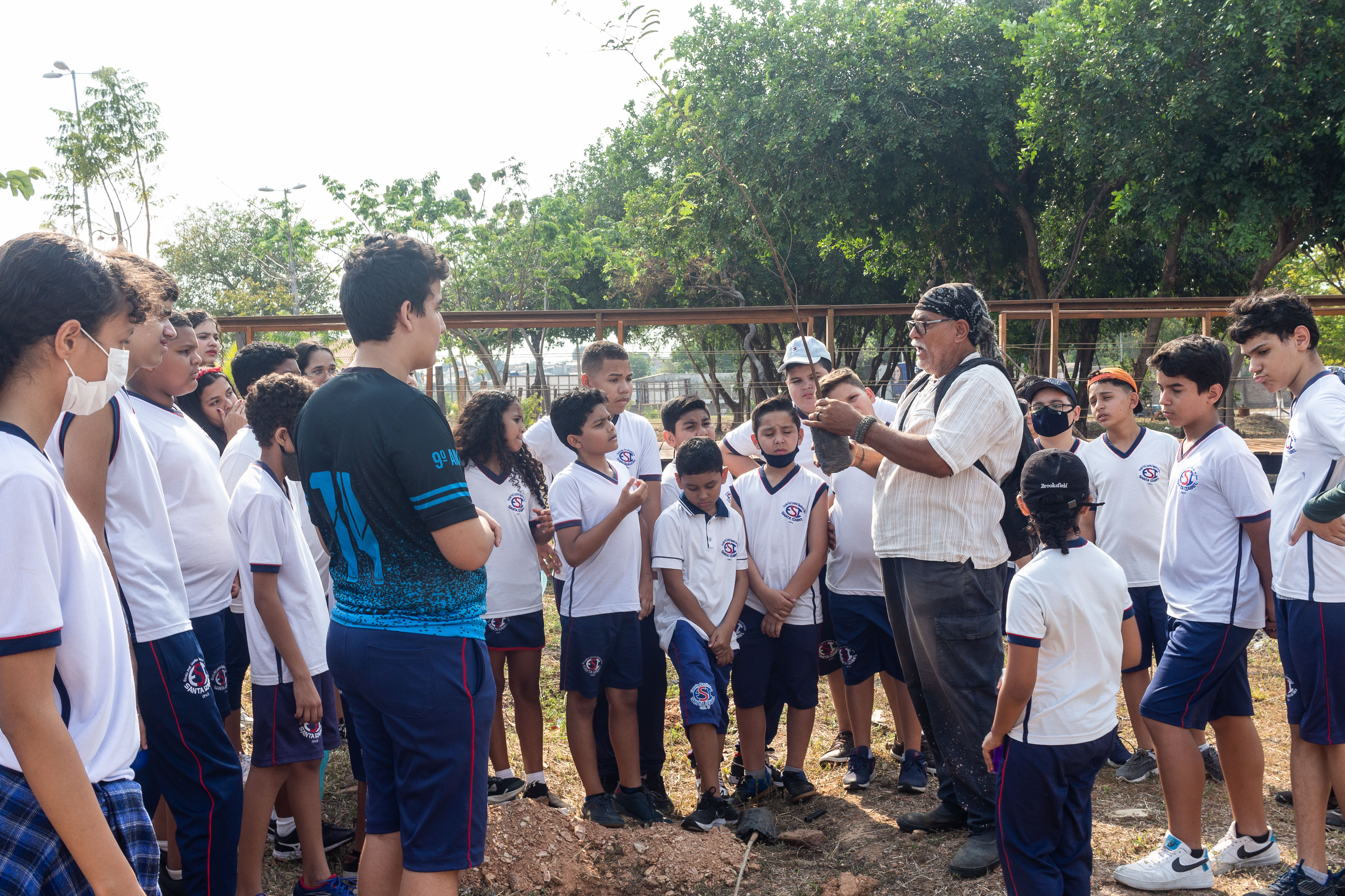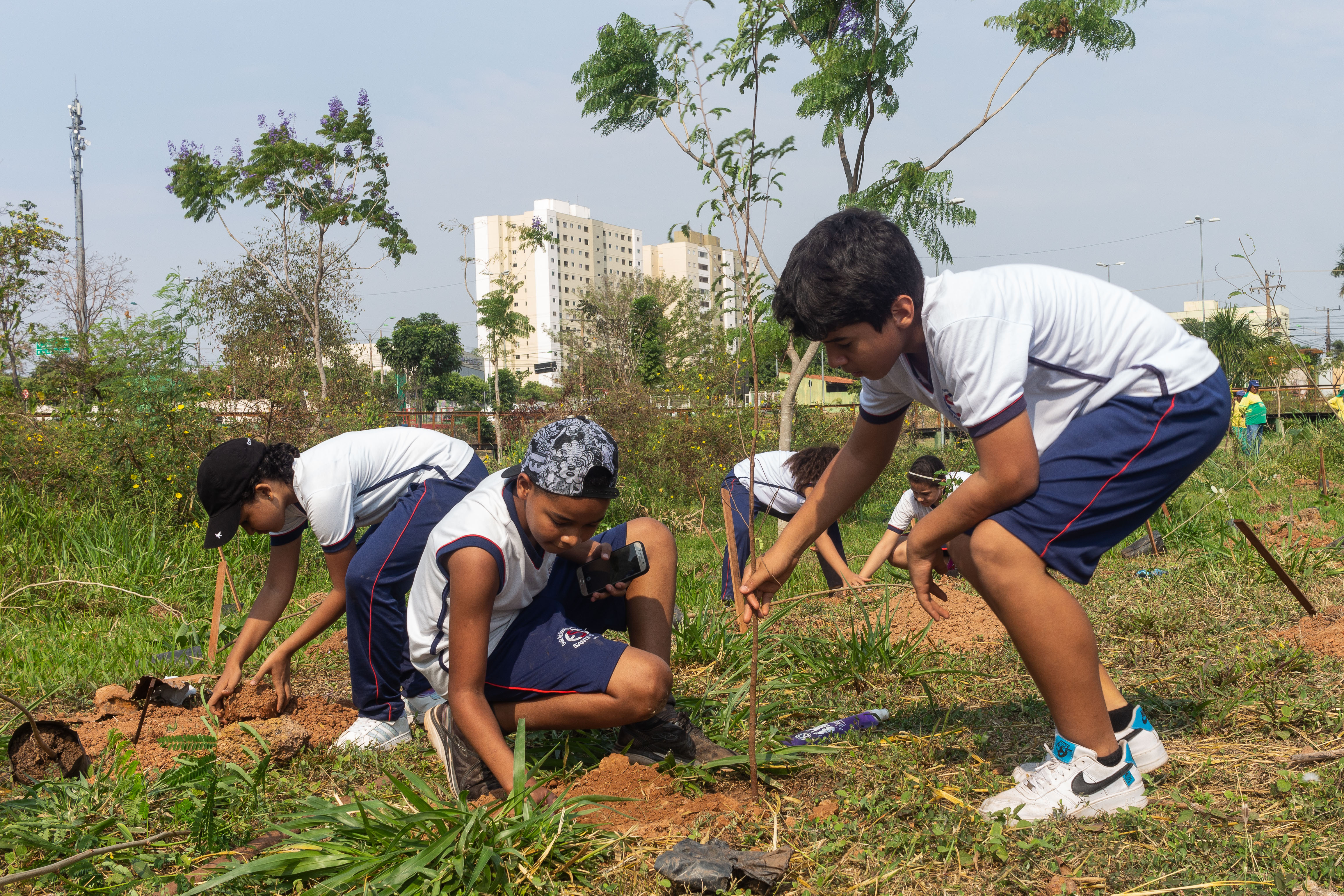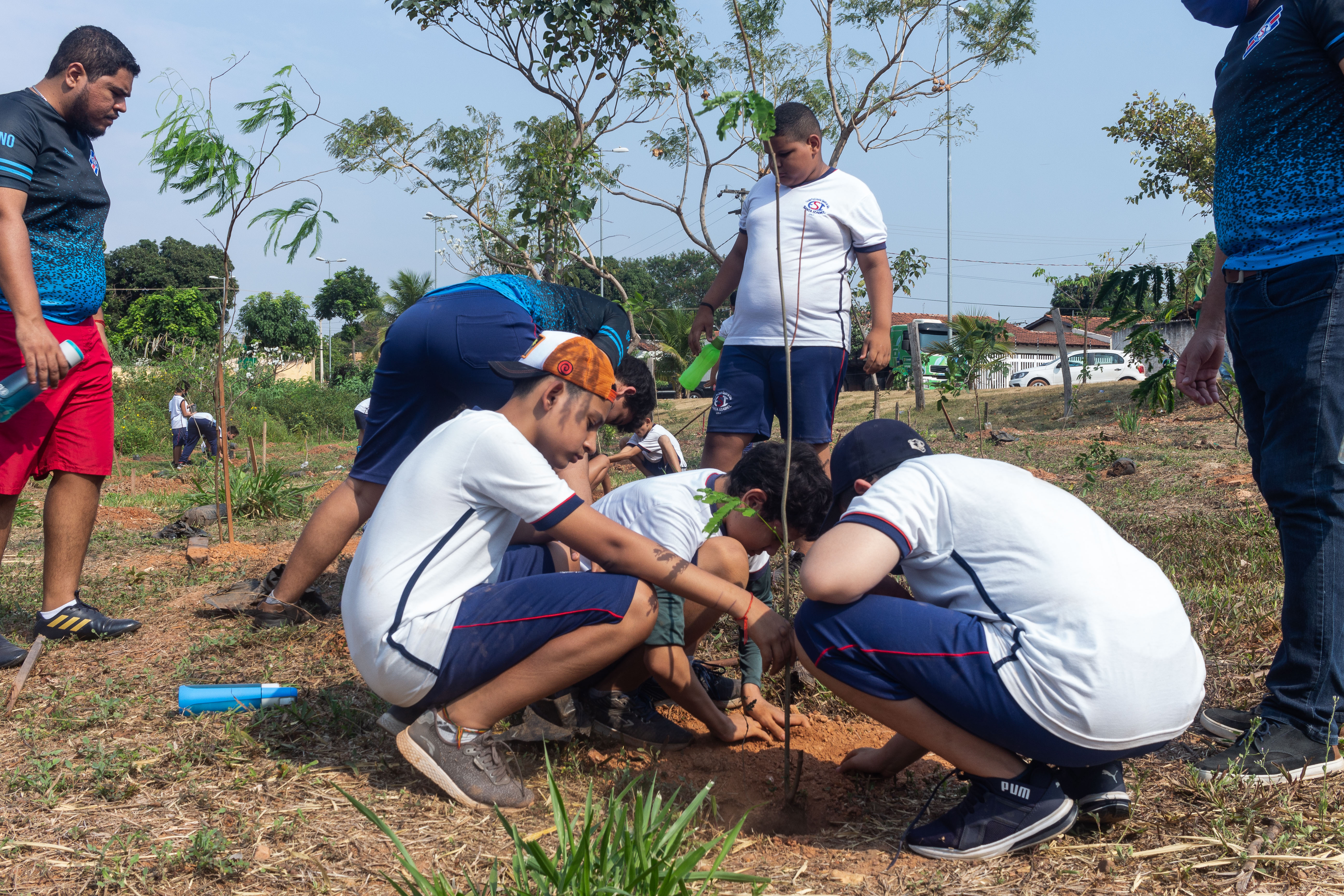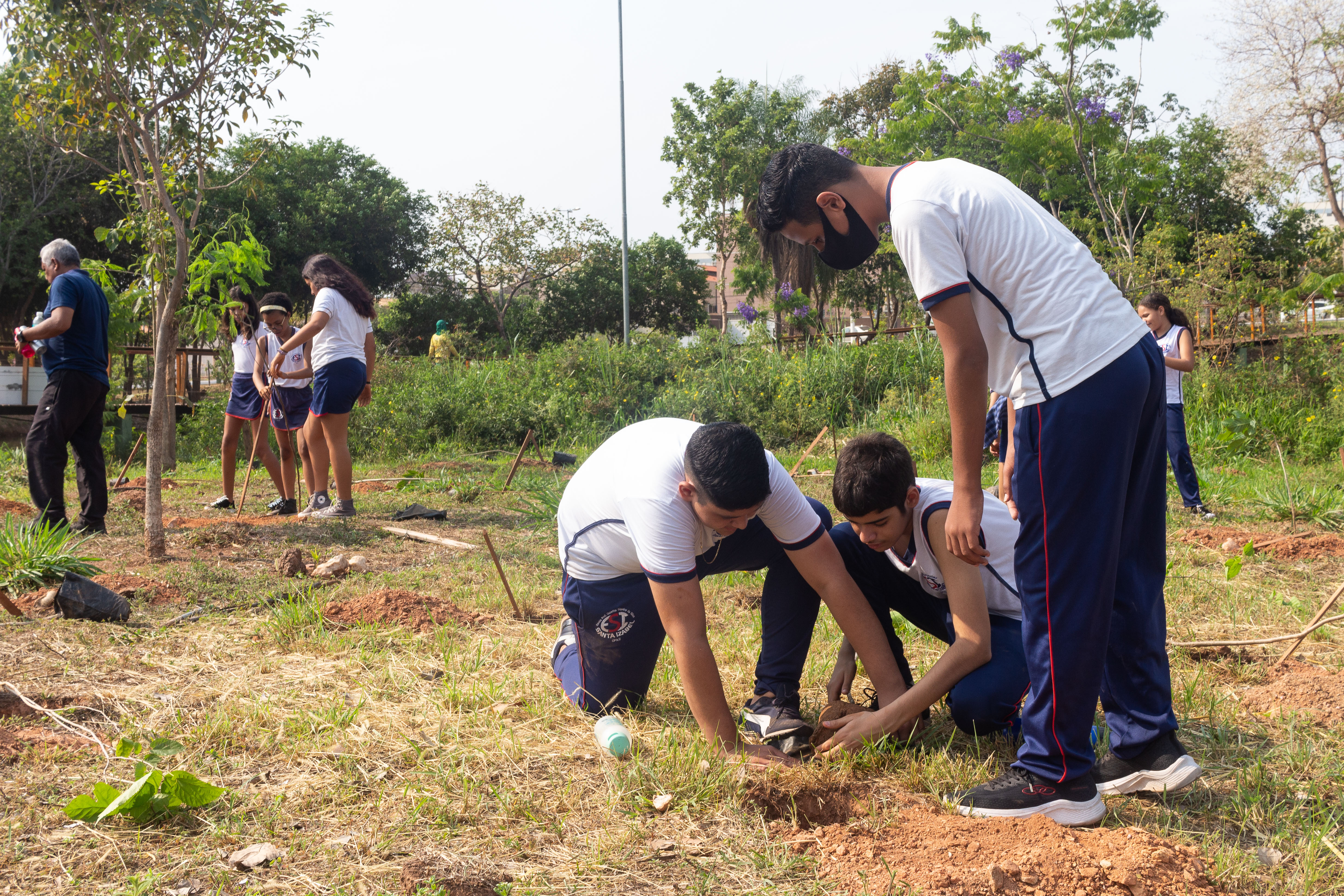Mais de 100 mudas de árvores foram plantadas nesta quarta-feira (21) no Parque da Nascente – Yone de Azevedo Campos, localizado no bairro Morada do Ouro. A ação foi realizada pela Empresa Cuiabana de Zeladoria e Serviços Urbanos (Limpurb) em alusão ao Dia da Árvore, celebrado neste 21 de setembro. A iniciativa contou ainda com a participação de cerca de 50 alunos, do 5º ao 9º ano, da Escola Santa Izabel (ESI).