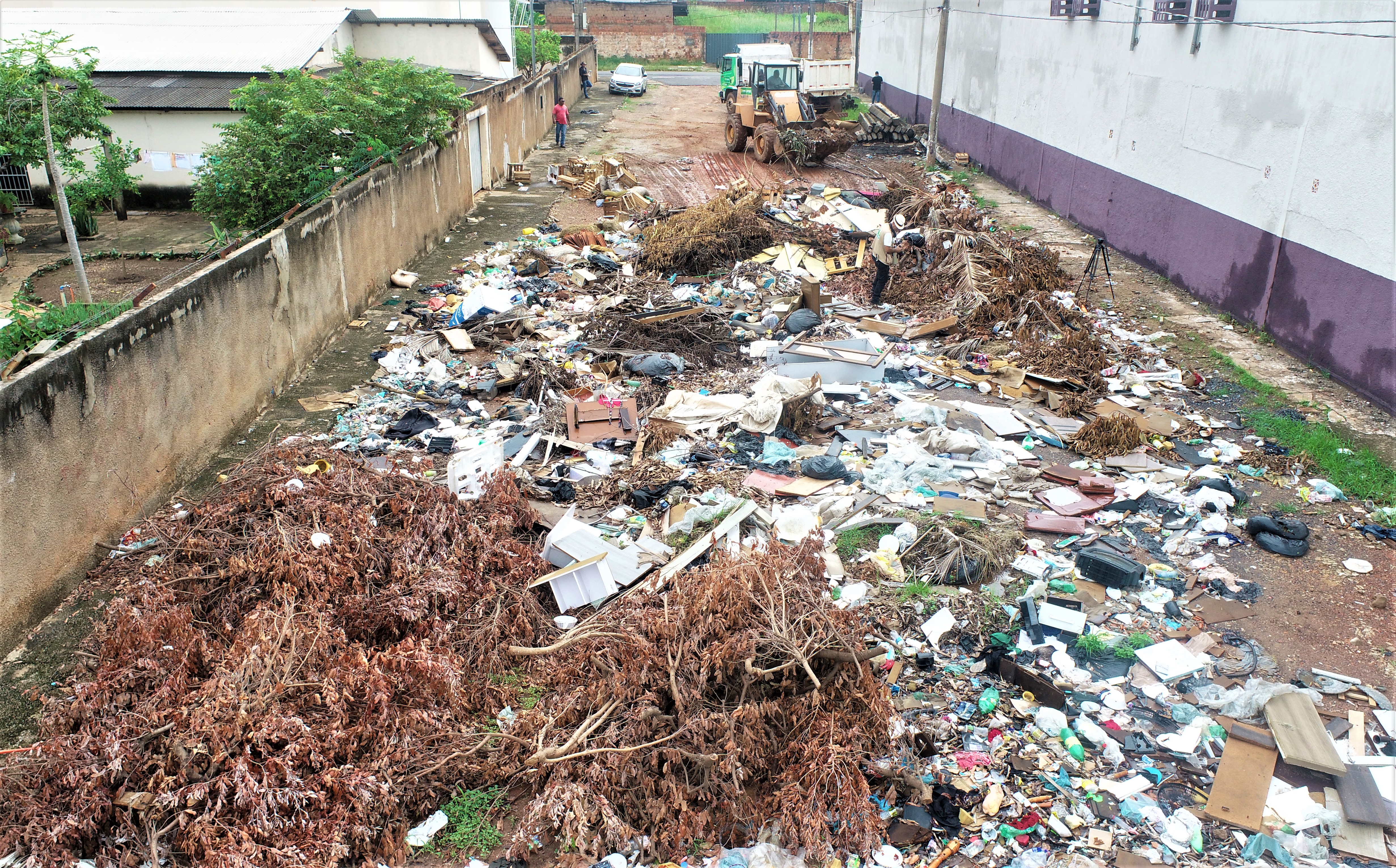 Foi iniciado na manhã desta sexta-feira (14) o trabalho de eliminação de mais um bolsão de lixo, em Cuiabá. A ação é realizada na Rua Prof.ª Tereza Lobo, no bairro Consil, por meio da Empresa Cuiabana de Zeladoria e Serviços Urbanos (Limpurb). A previsão é de que sejam recolhidos pelo menos dez caminhões de lixo.