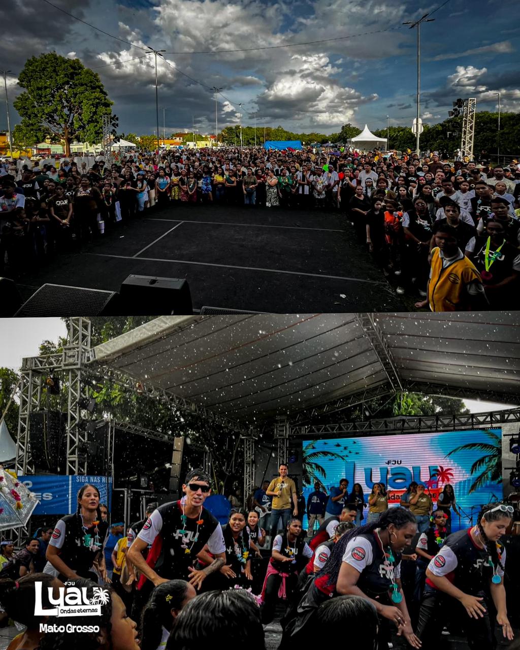 O evento, promovido pelo grupo FJU (Força Jovem Universal), contou com o apoio da Prefeitura de Cuiabá, que cedeu o espaço do Complexo Biocultural do Porto para a realização de uma celebração marcada por música, mensagens de paz, esperança e integração comunitária. O palco montado ao lado do Museu do Rio tornou-se ponto de encontro para um público diverso, que ocupou toda a orla e aproveitou a programação mesmo após cerca de uma hora de chuva forte.