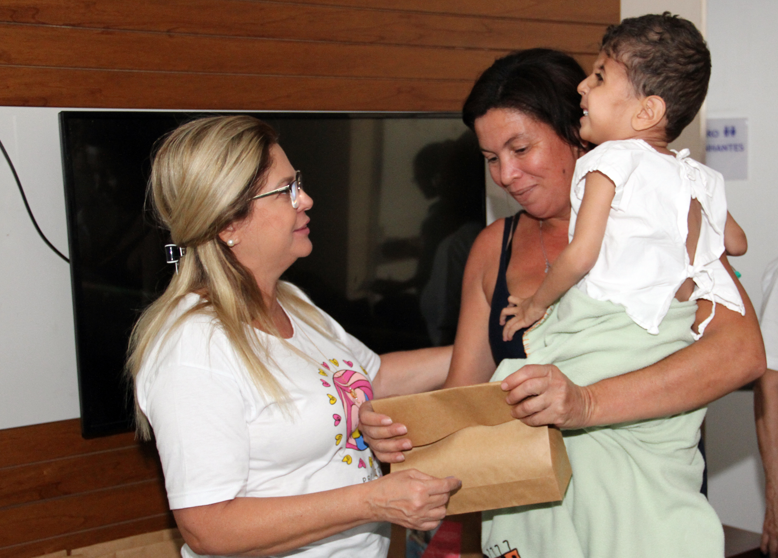 As mães das 50 crianças que estão internadas na ala pediátrica do PS ganharam kits com uma nécessaire contendo escova de dente, pasta e sabonete. Os kits foram feitos no ateliê do programa Siminina, por meio de um trabalho desenvolvido com as artesãs do programa. “Decidimos dar algo que tivesse alguma utilidade para as mães. Esses kits de higiene pessoal podem ser carregados dentro da bolsa e são coisas que sempre estamos usando”, explicou Clausi.