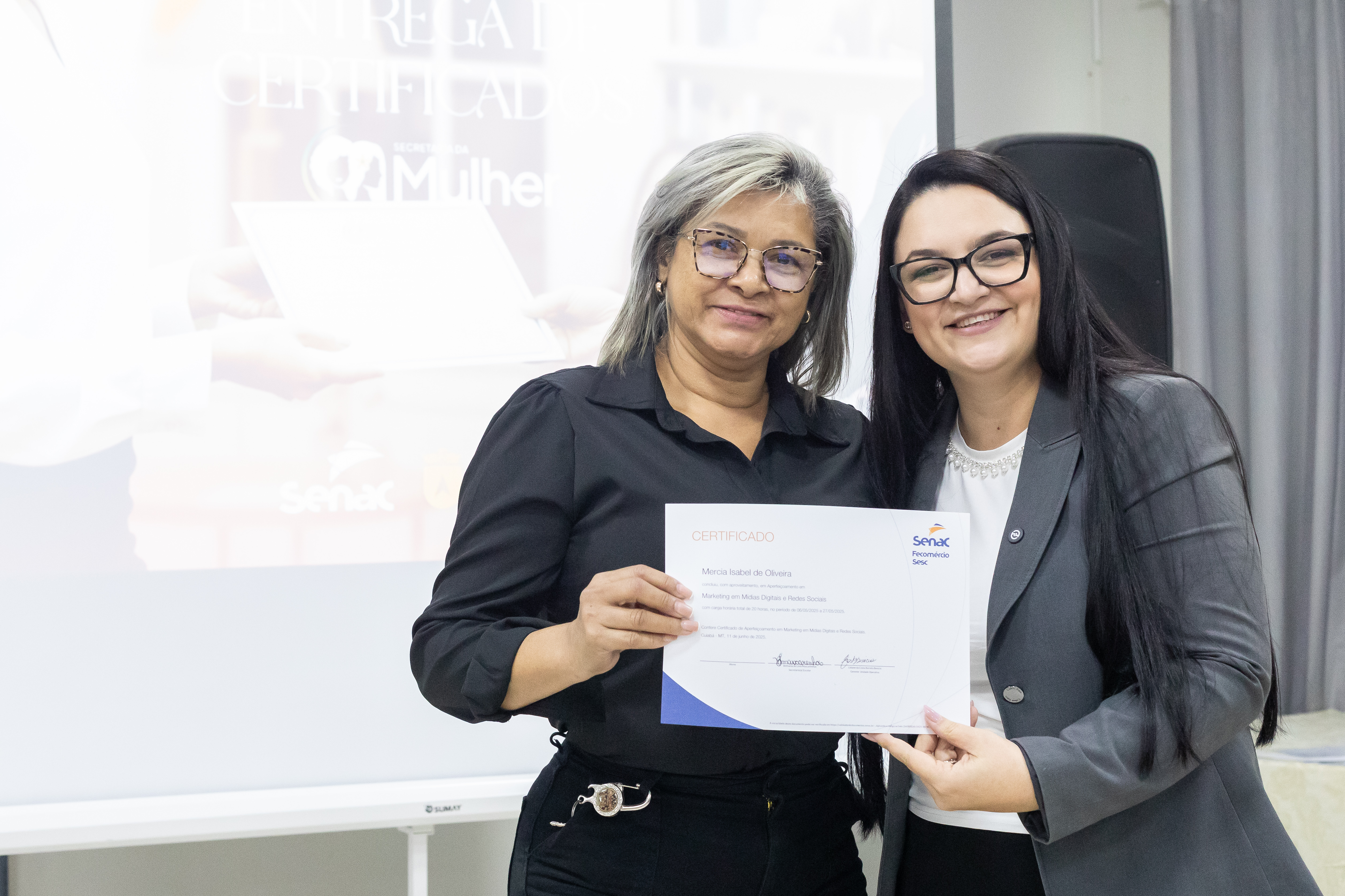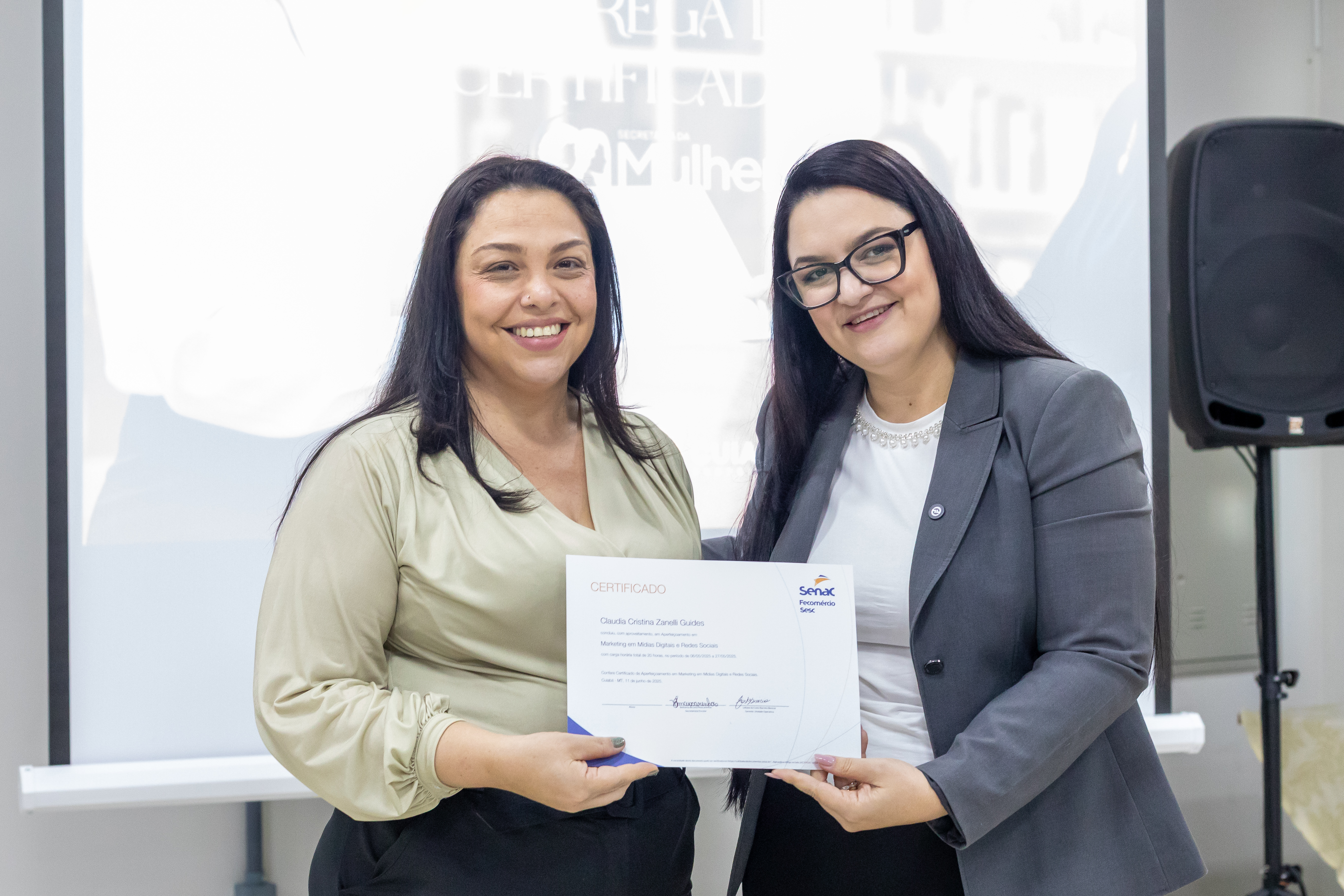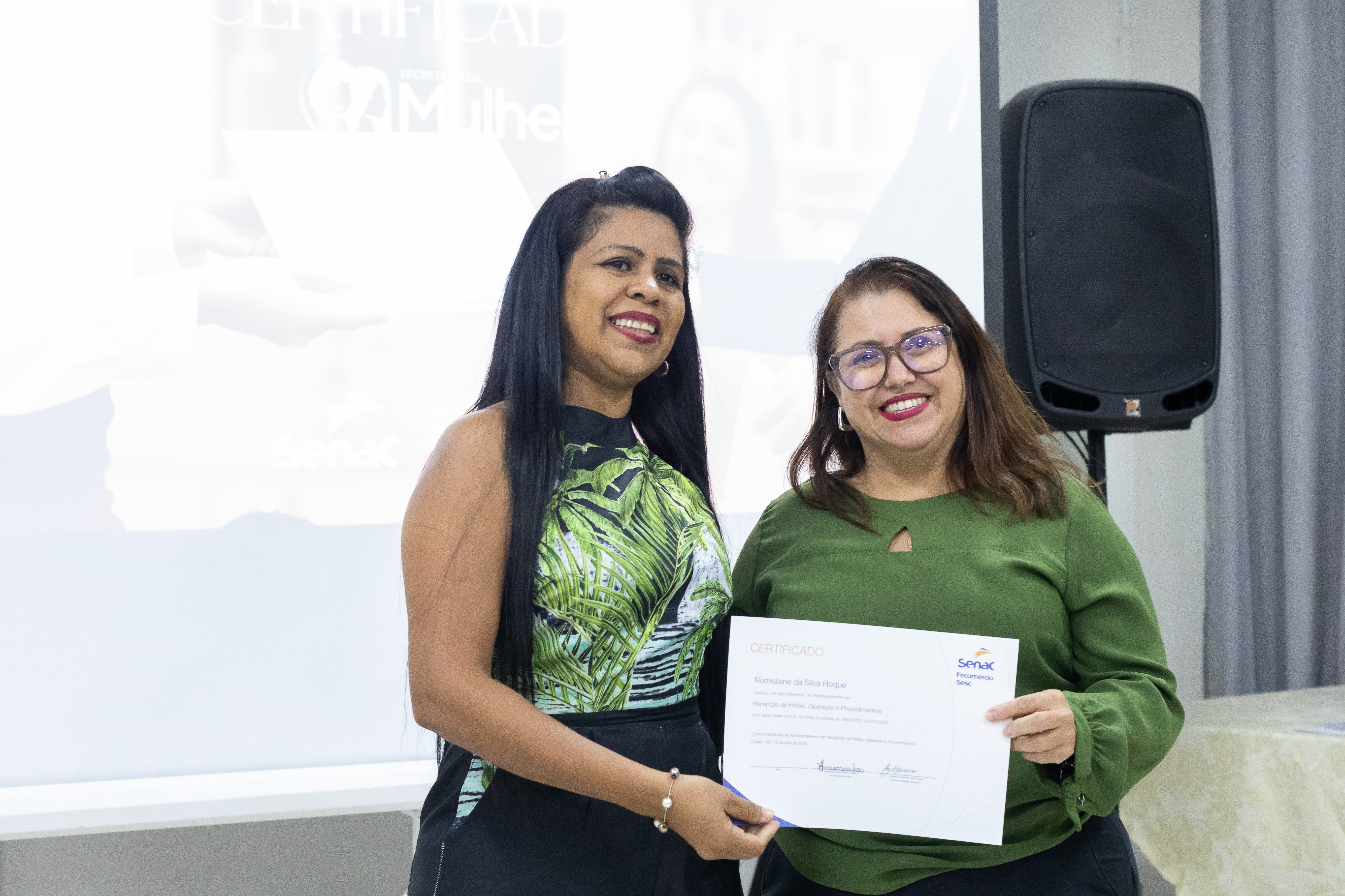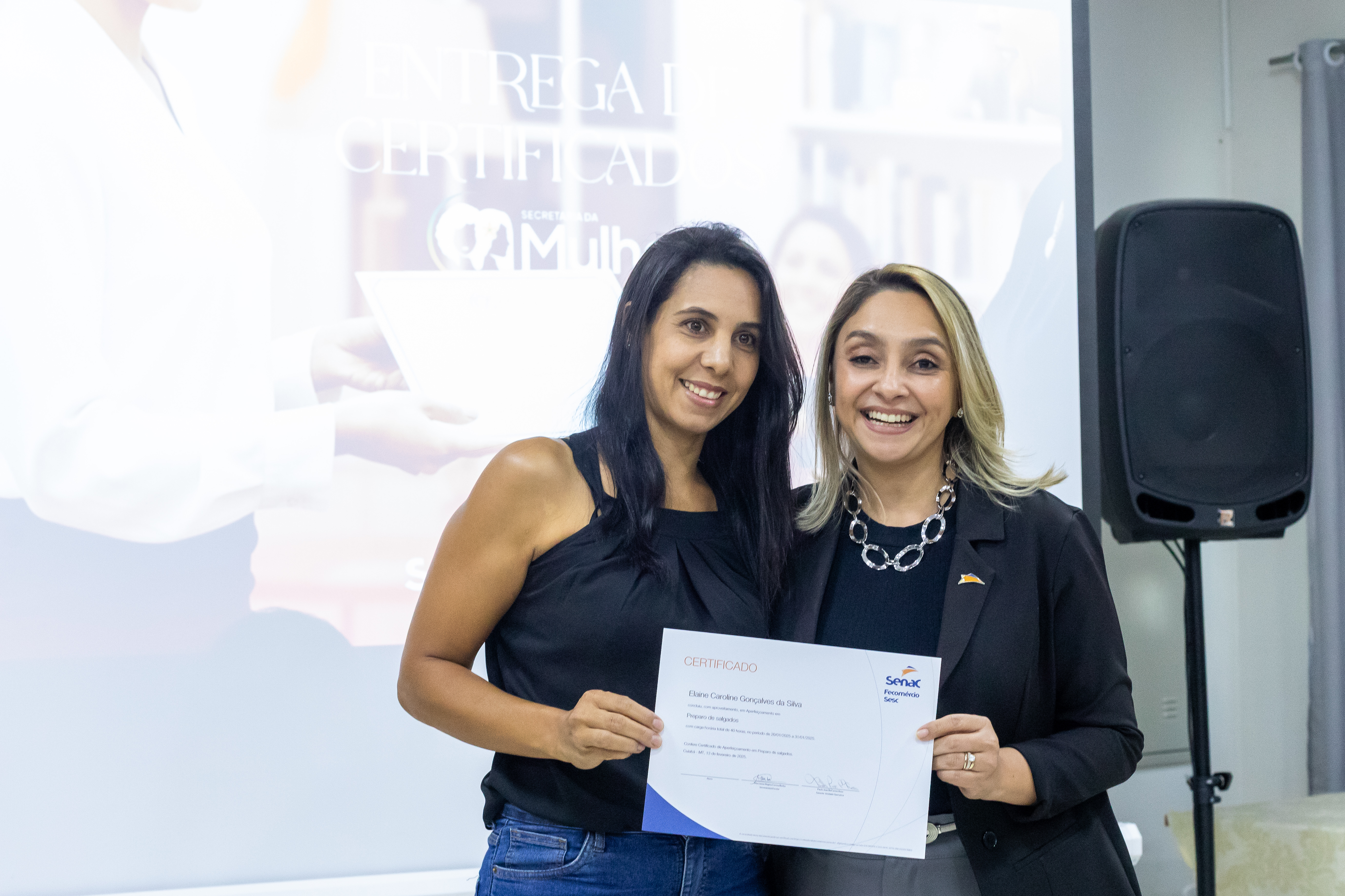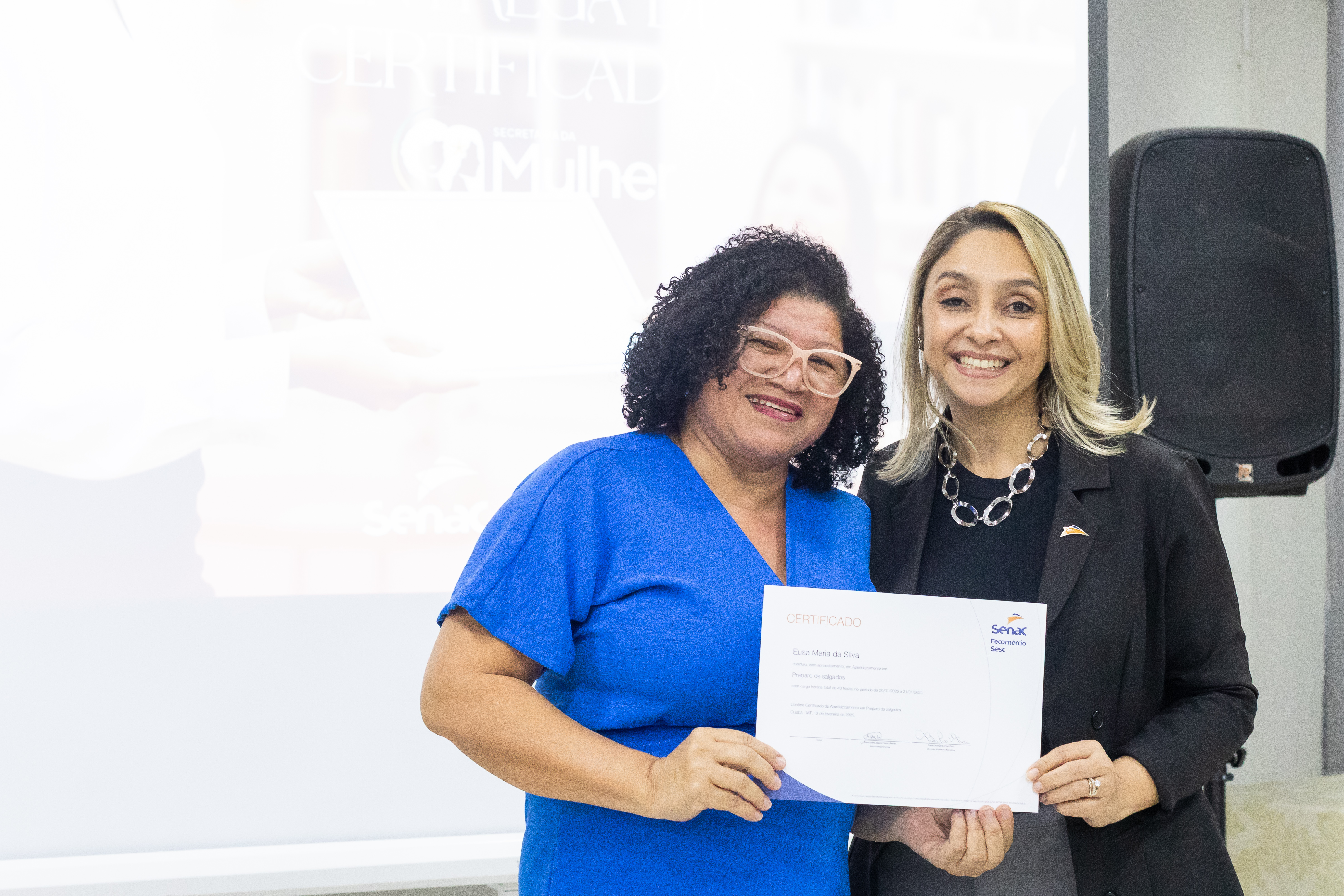 A Prefeitura de Cuiabá, por meio da Secretaria Municipal da Mulher, entregou 108 certificados de mulheres que concluíram cursos profissionalizantes, em parceria com o Serviço Nacional de Aprendizagem Comercial (Senac). A cerimônia foi realizada nesta quarta-feira (25), no Centro de Formação da Escola Cuiabana, com a presença de lideranças municipais, instrutores e alunas.