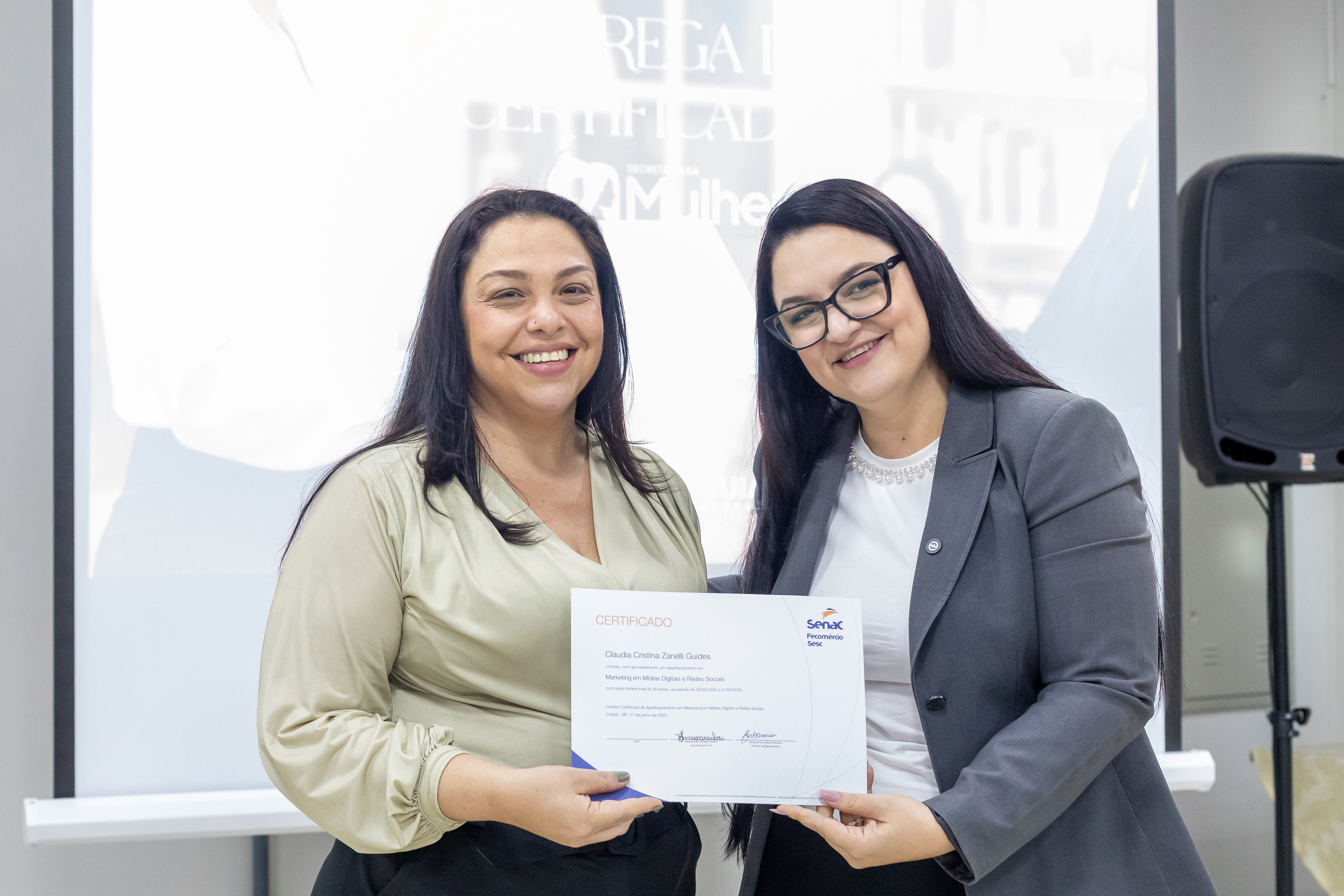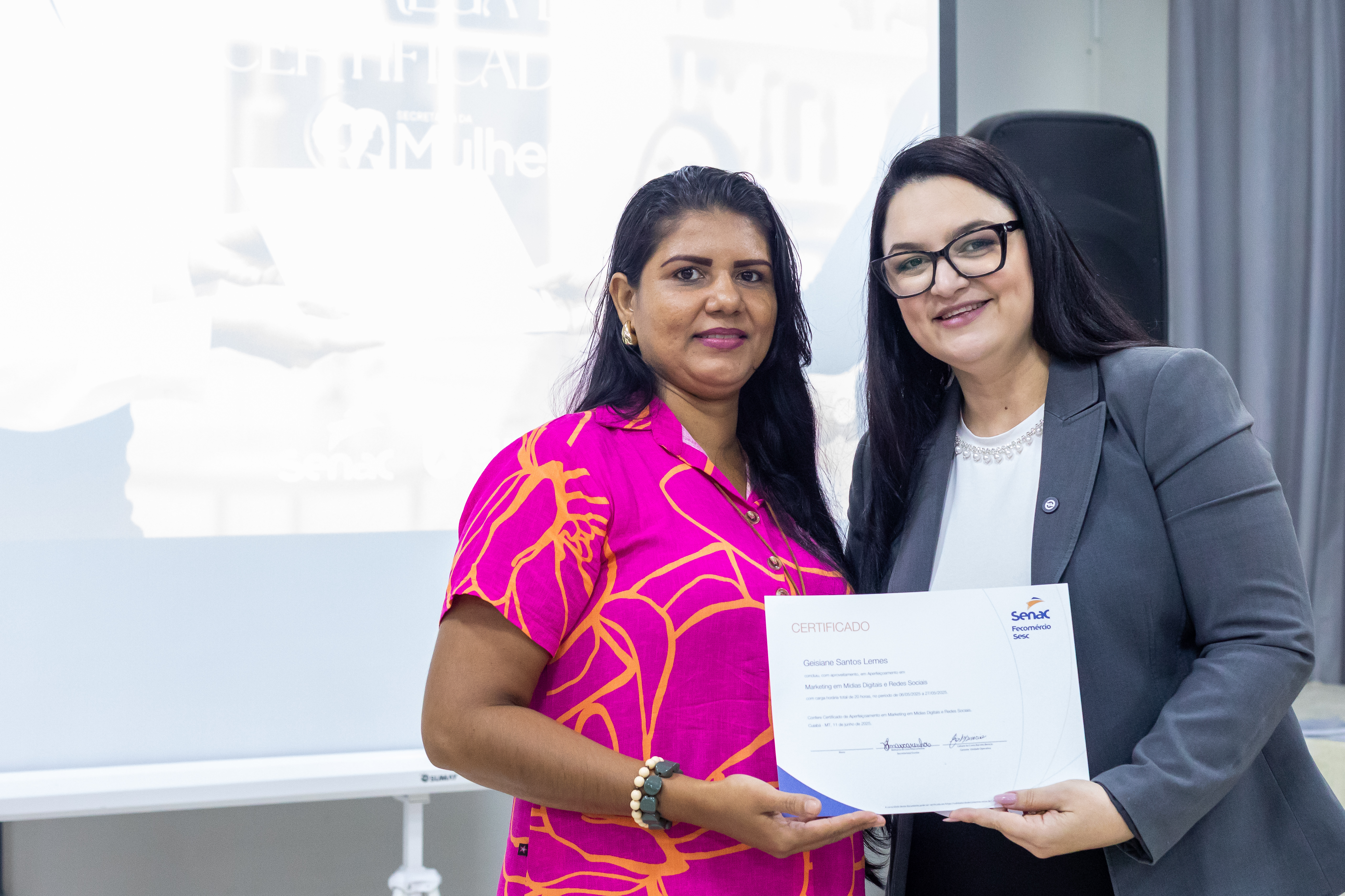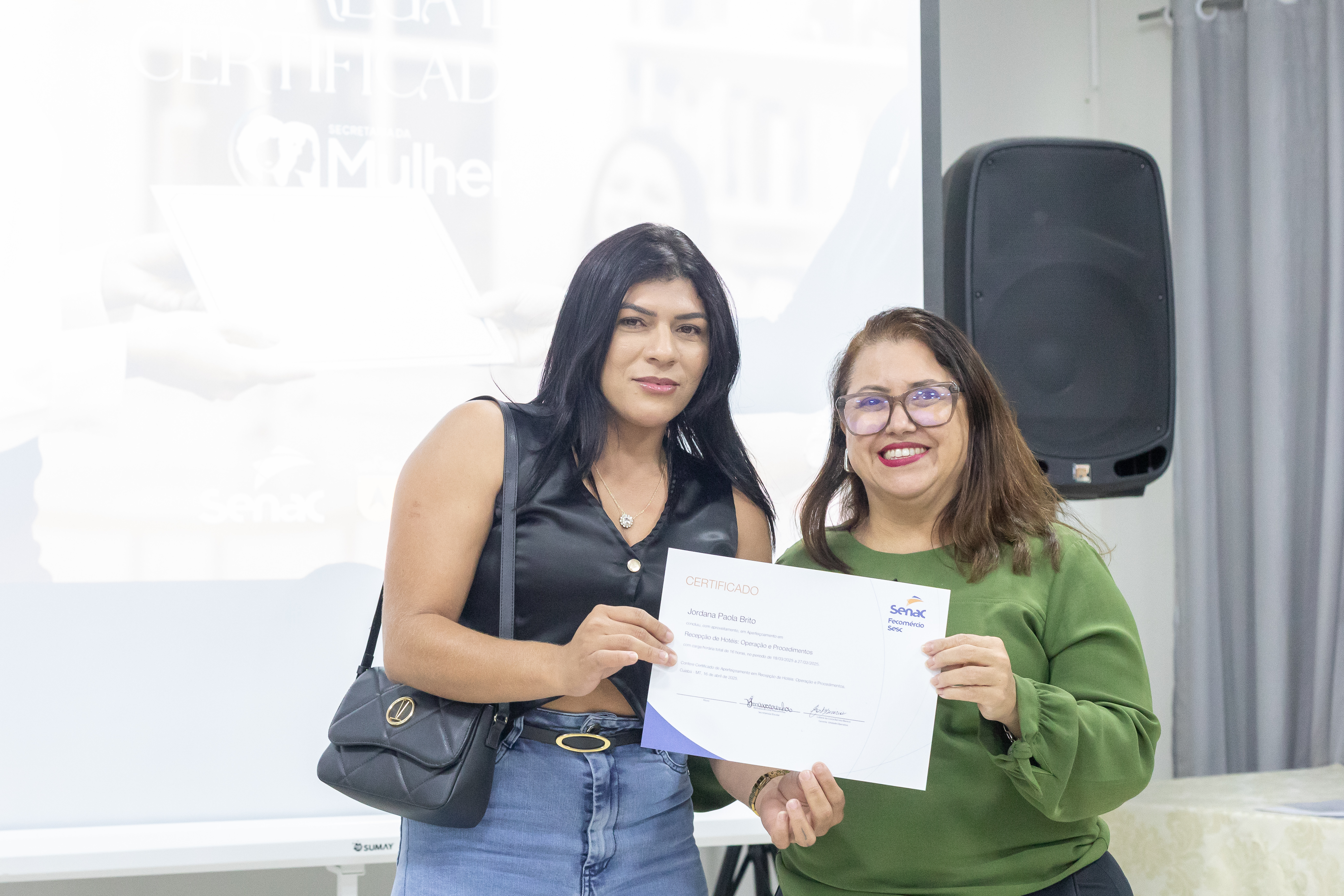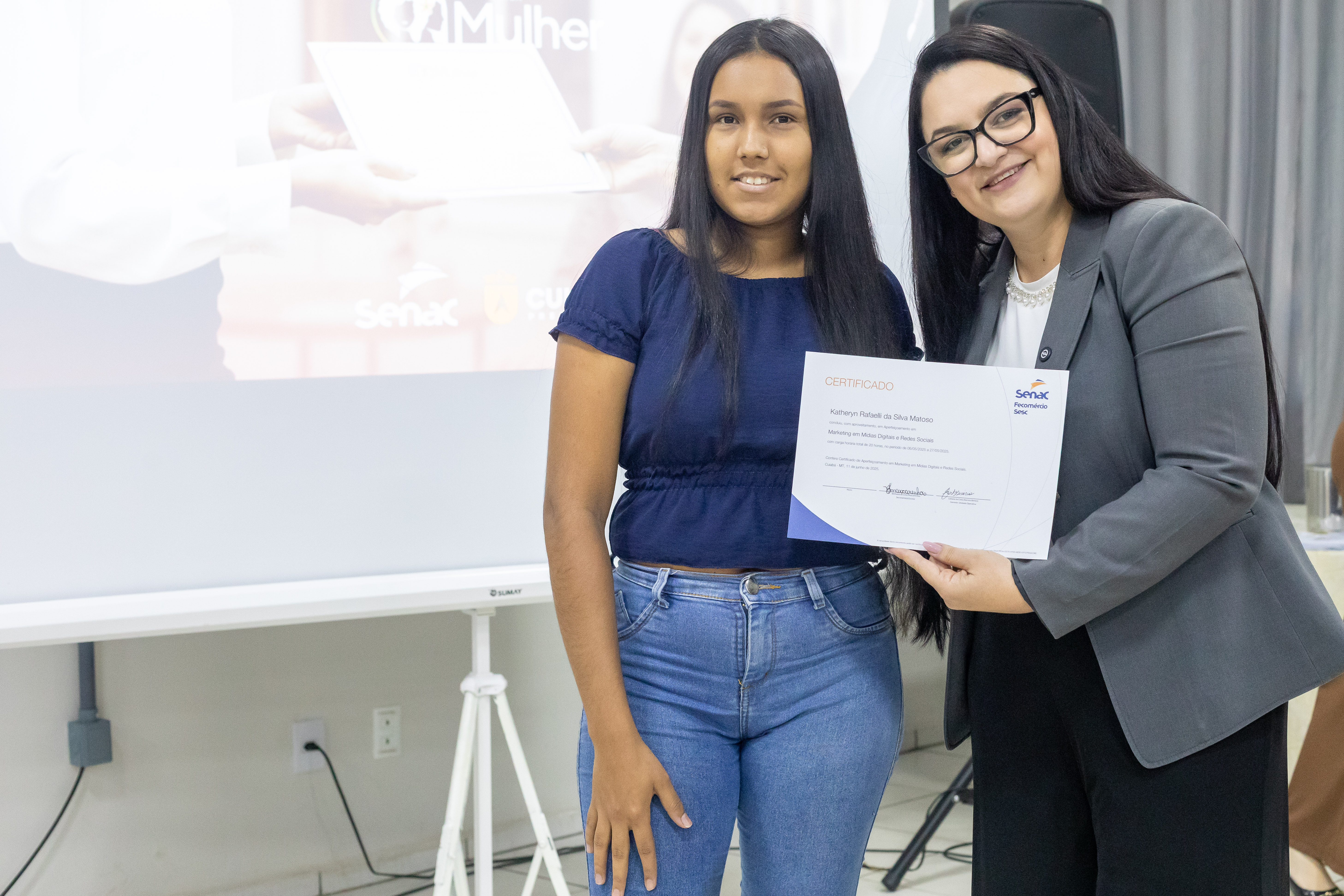 A Prefeitura de Cuiabá, por meio da Secretaria Municipal da Mulher, entregou 108 certificados de mulheres que concluíram cursos profissionalizantes, em parceria com o Serviço Nacional de Aprendizagem Comercial (Senac). A cerimônia foi realizada nesta quarta-feira (25), no Centro de Formação da Escola Cuiabana, com a presença de lideranças municipais, instrutores e alunas.