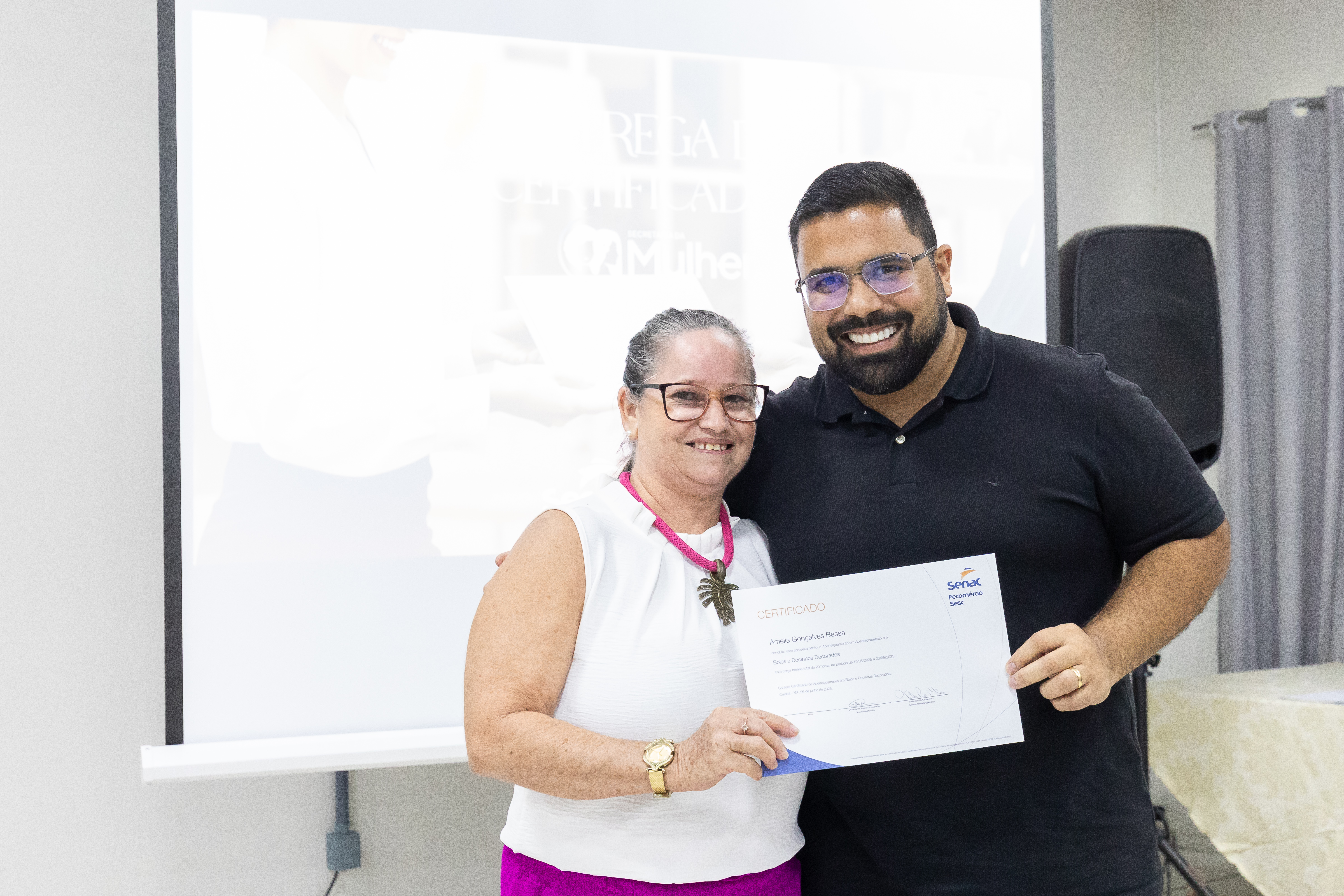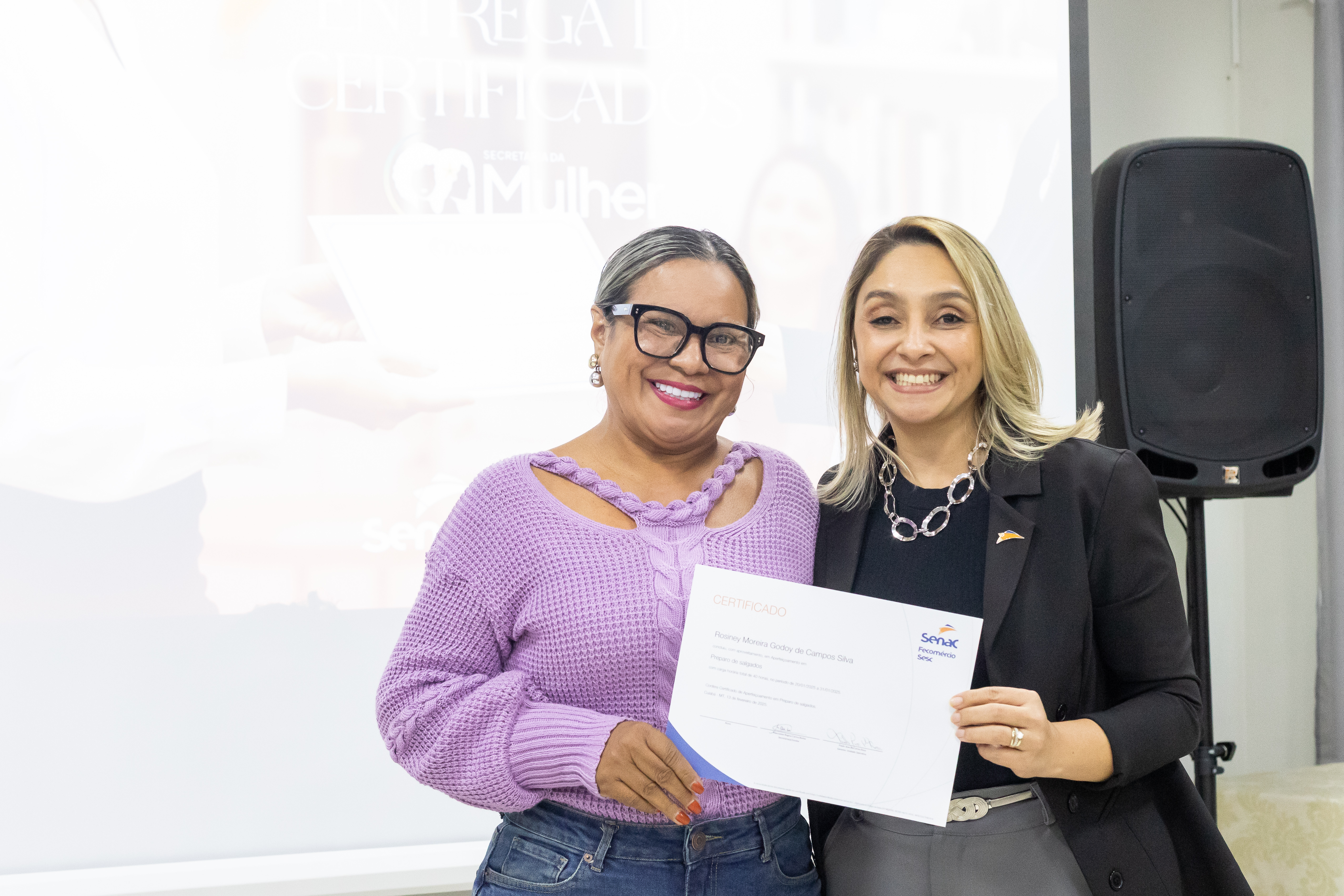 Durante a entrega, a secretária da Mulher, tenente-coronel Hadassah Suzannah, destacou o compromisso da atual gestão com o fortalecimento das políticas públicas voltadas às mulheres. “Me sinto honrada por estar à frente da Secretaria da Mulher, que tem entregado resultados concretos. A gestão do prefeito Abilio vem demonstrando que acredita na força e no empreendedorismo feminino. Esses cursos são mais que uma qualificação: são portas abertas para a autonomia financeira e a transformação de vidas”, ressaltou.