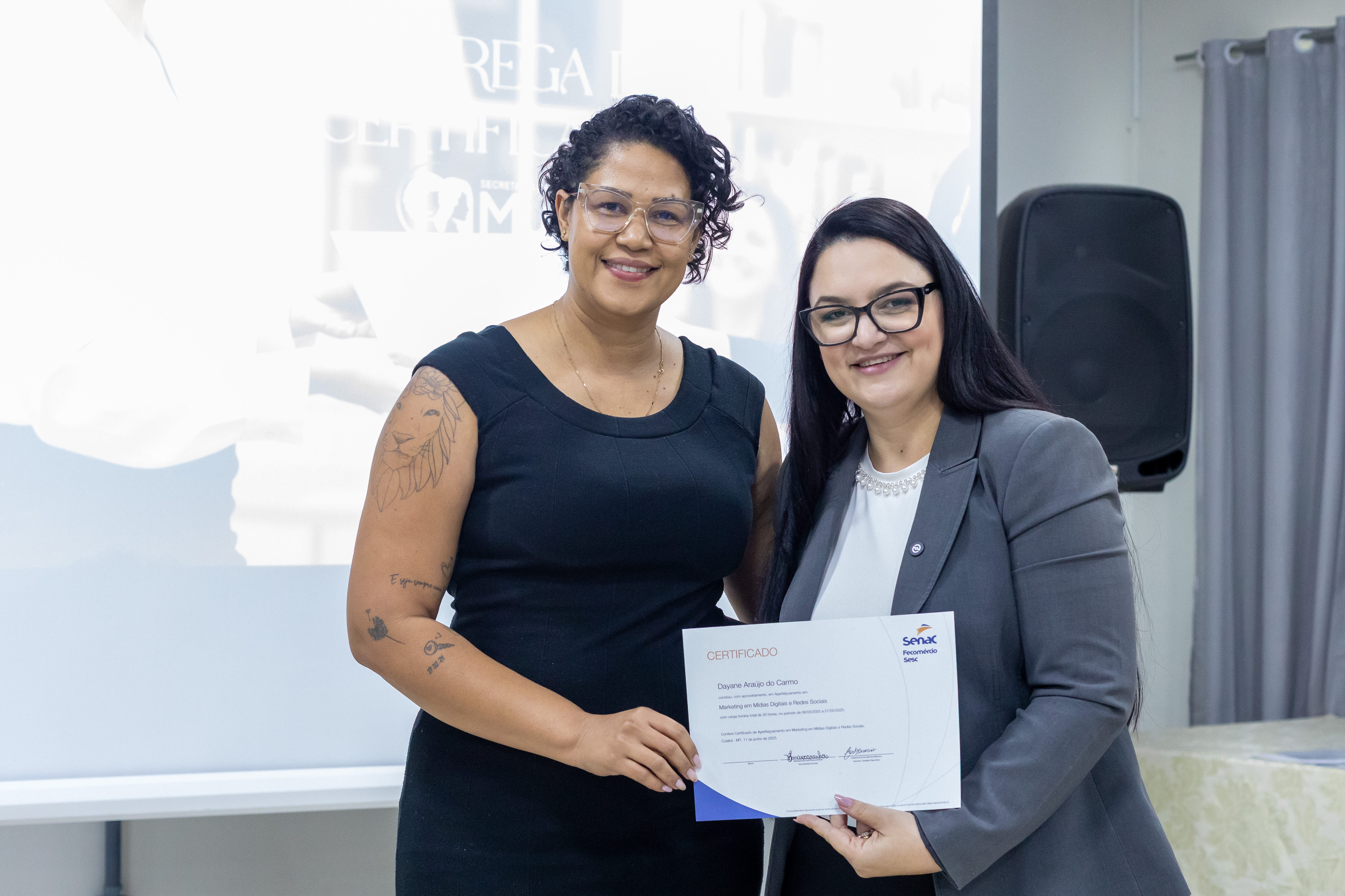 A primeira-dama, Samantha Iris reforçou o poder da educação para mudar destinos. “Vocês estão recebendo muito mais que um certificado: estão apostando em si mesmas. Aproveitem essas oportunidades para descobrir talentos, se reinventar e empreender. Cada curso é uma chance de transformação”.