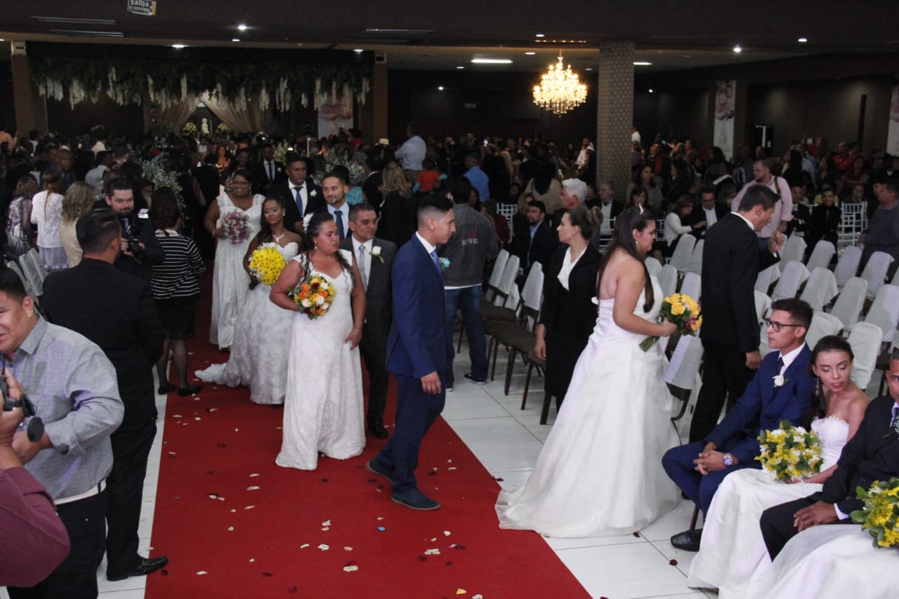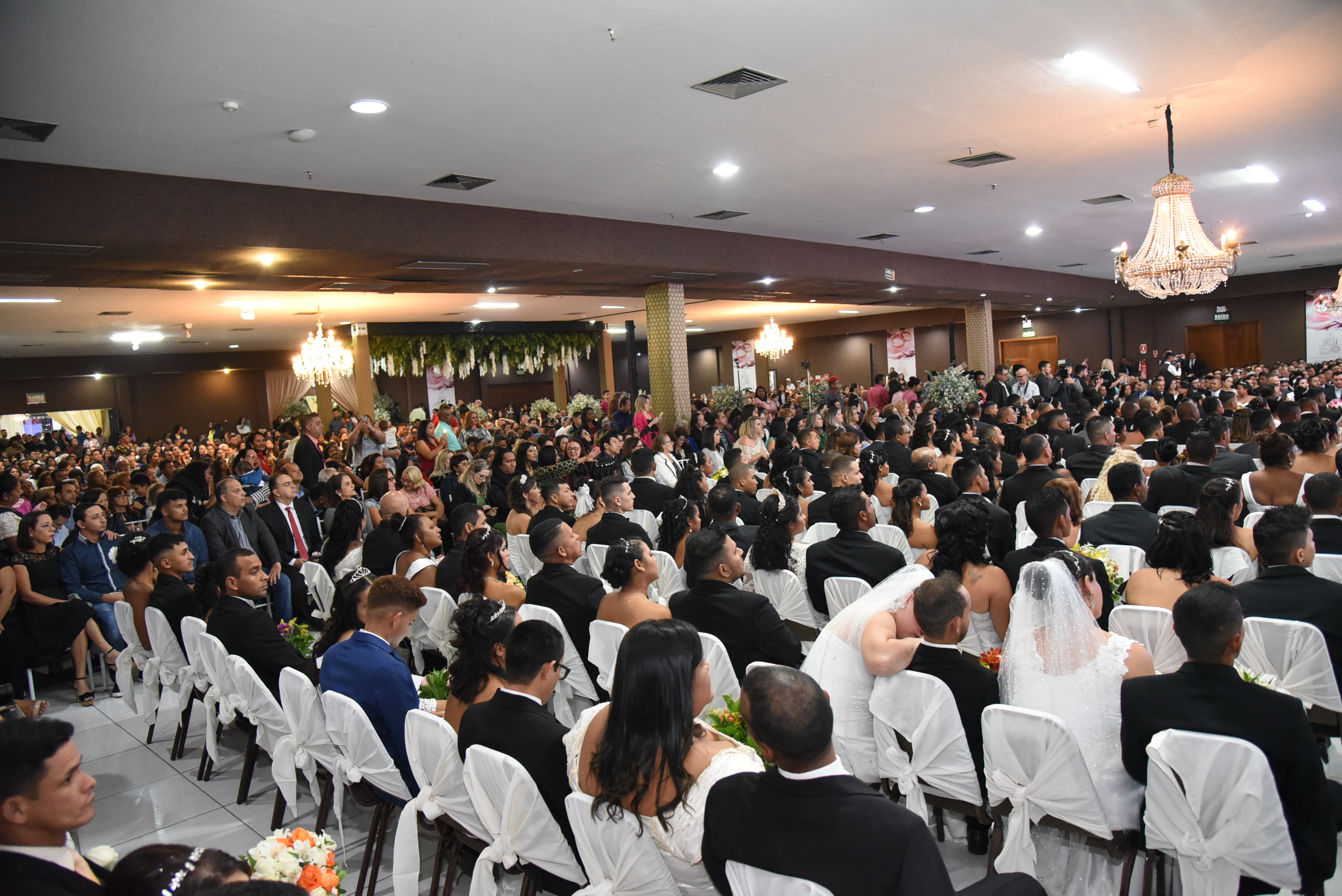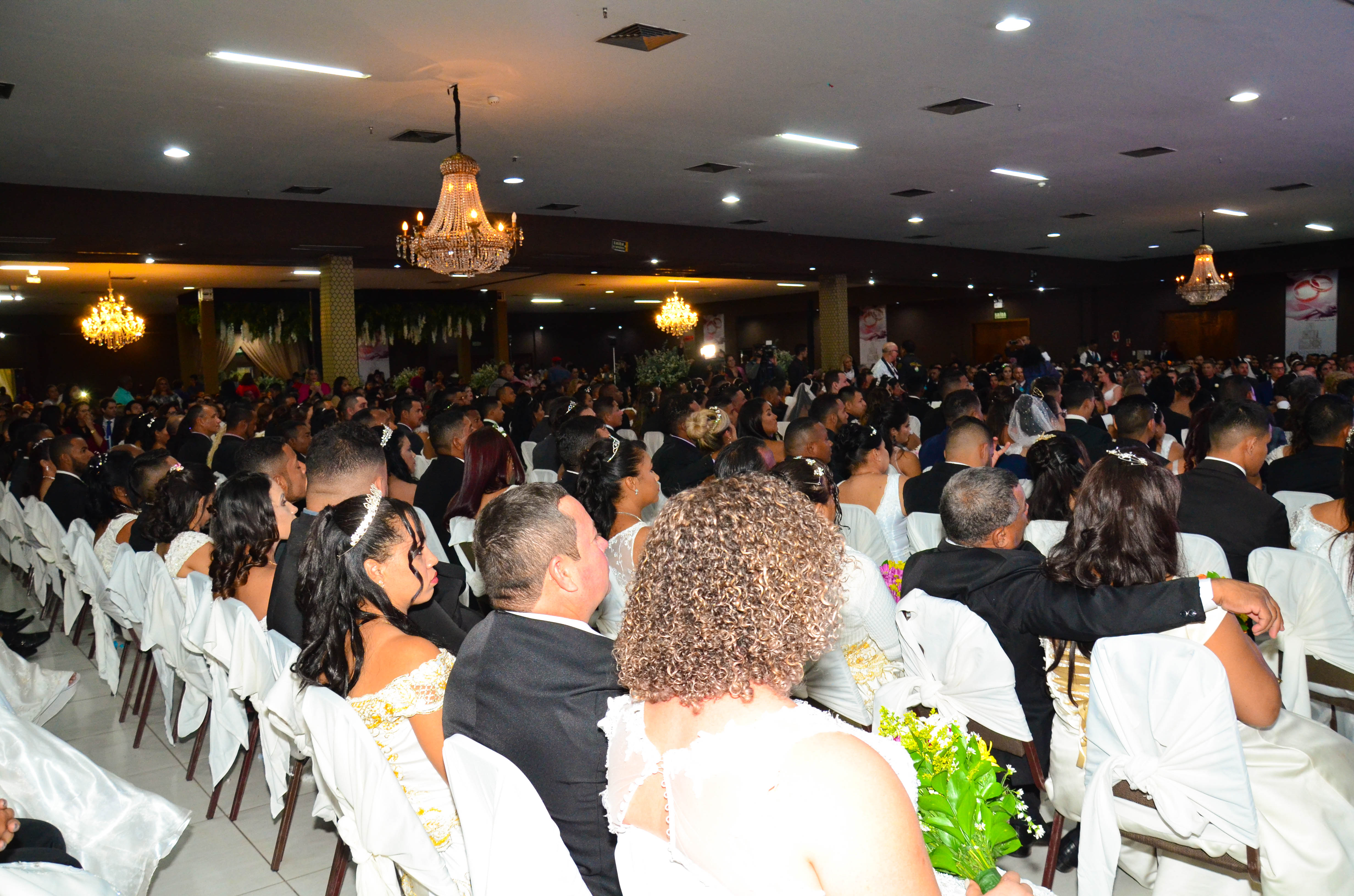 Mais de 2,5 mil pessoas participaram da cerimônia do Casamento Social – Cuiabá 300 Anos, promovido pela Prefeitura de Cuiabá neste sábado (03), no Hotel Fazenda Mato Grosso. Ao todo, 300 casais oficializaram a união.