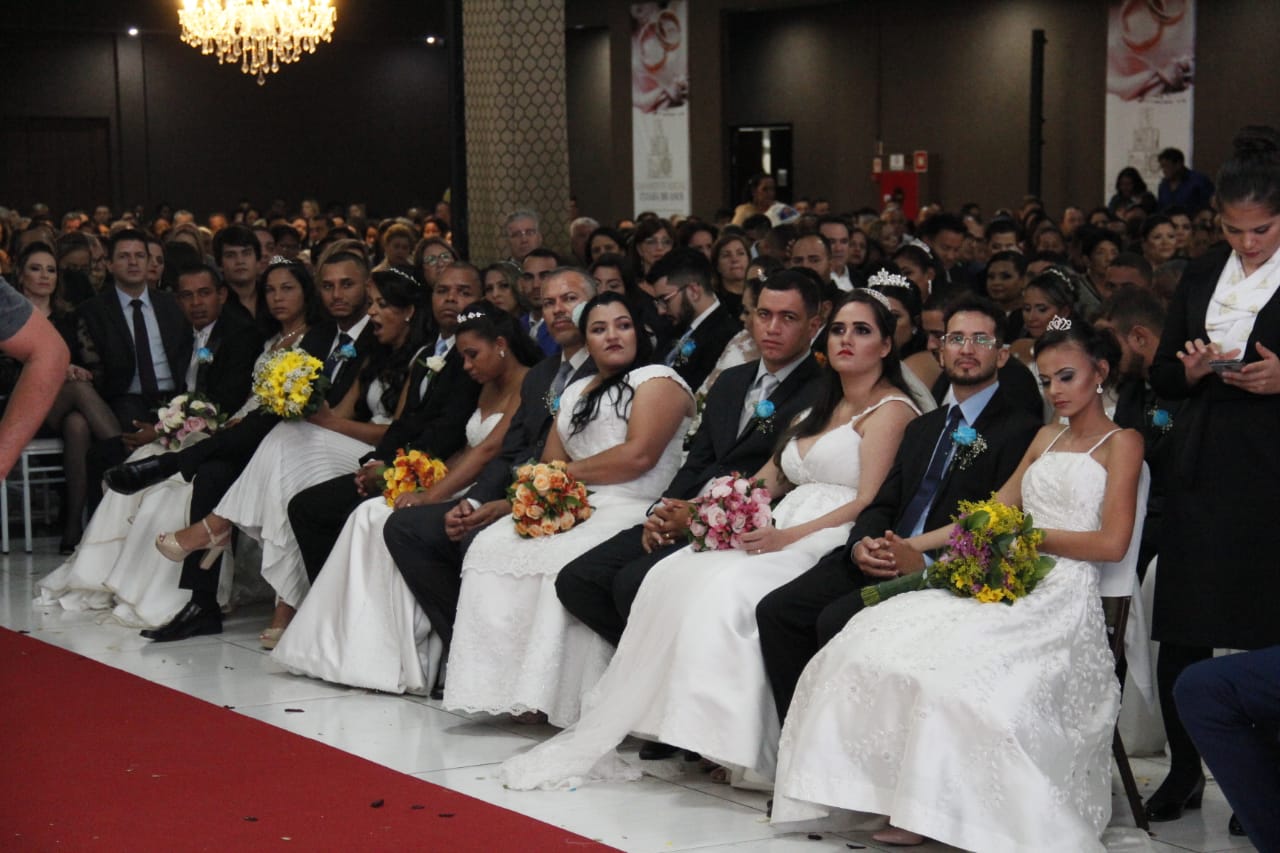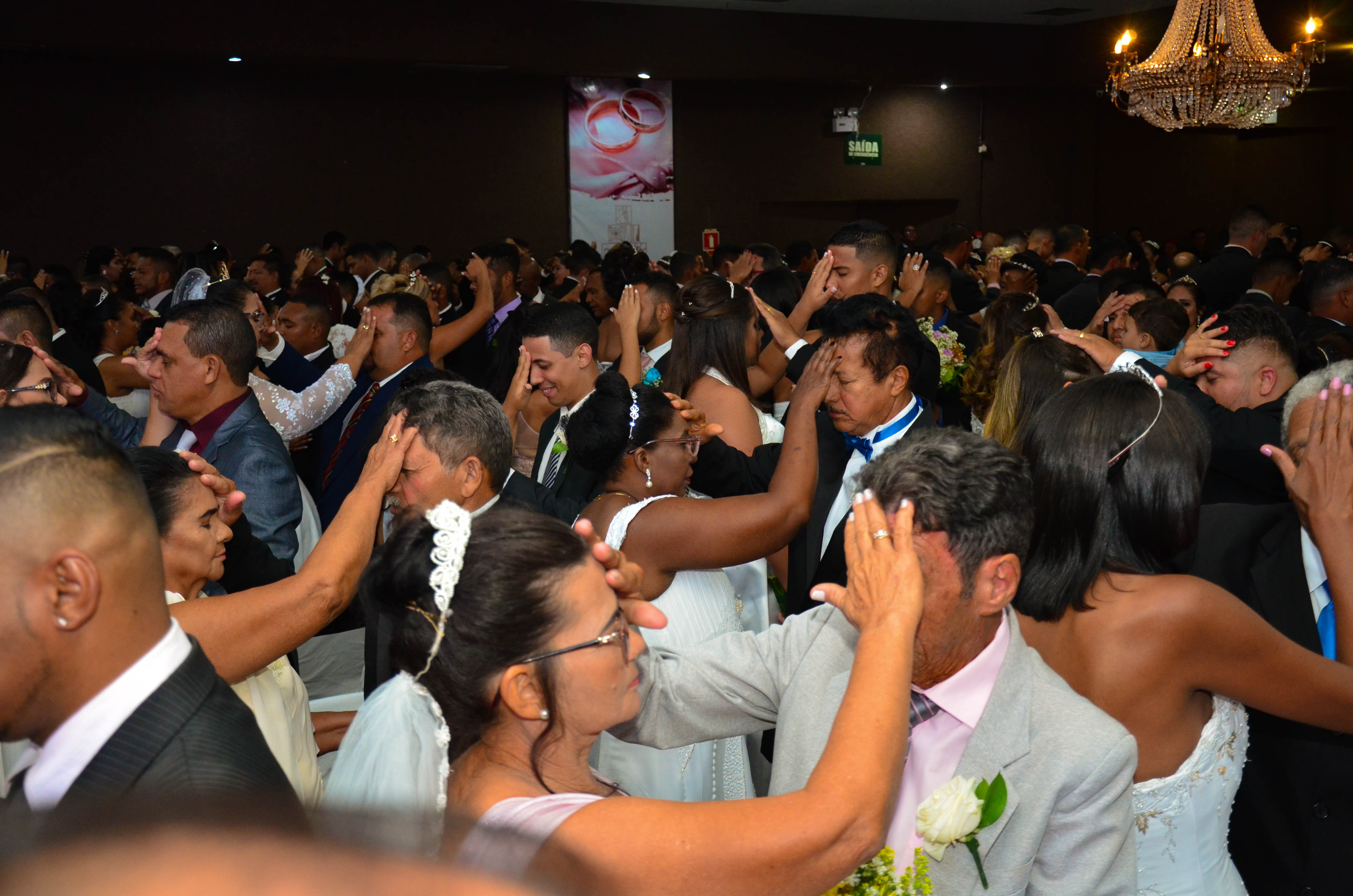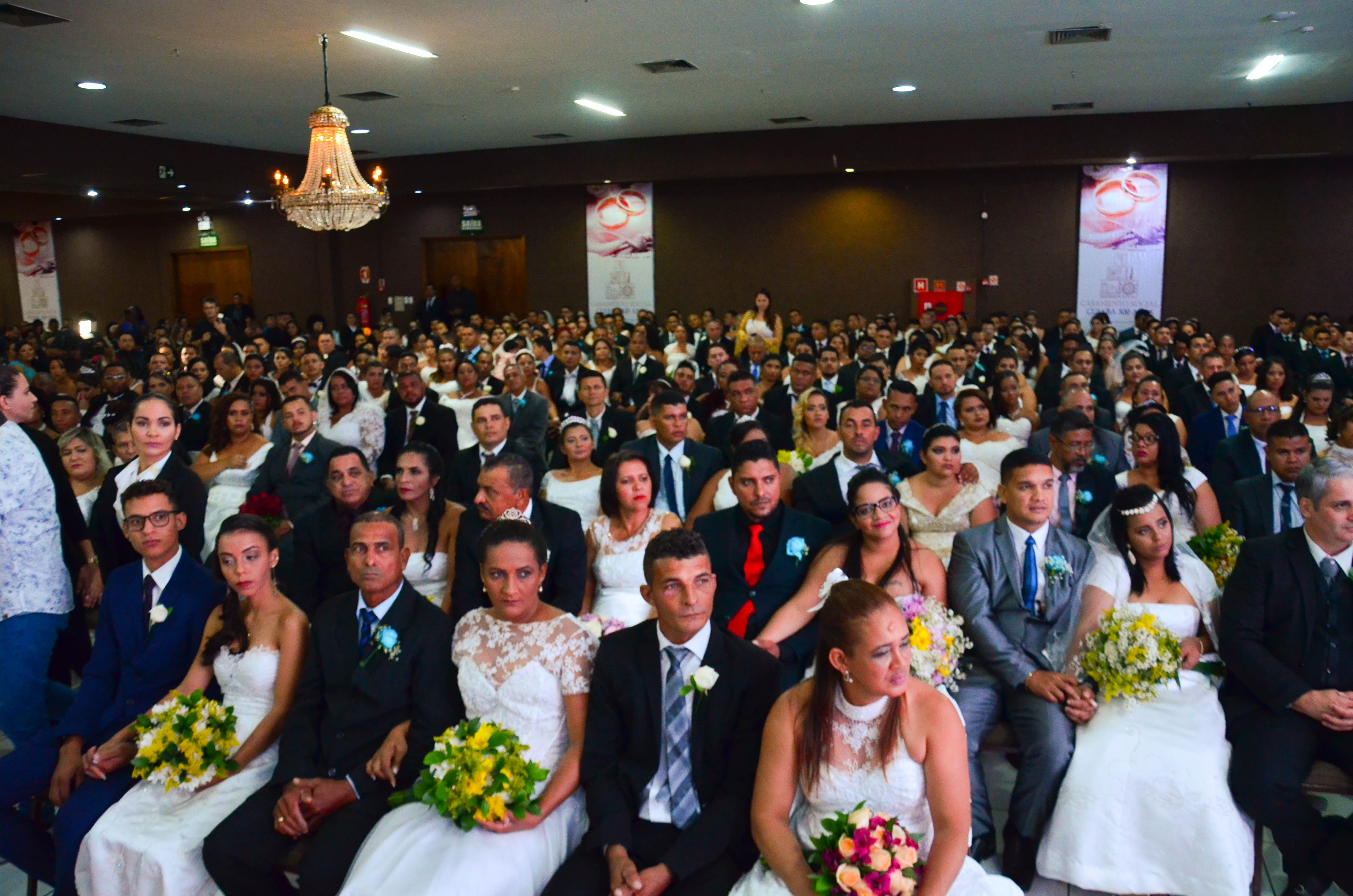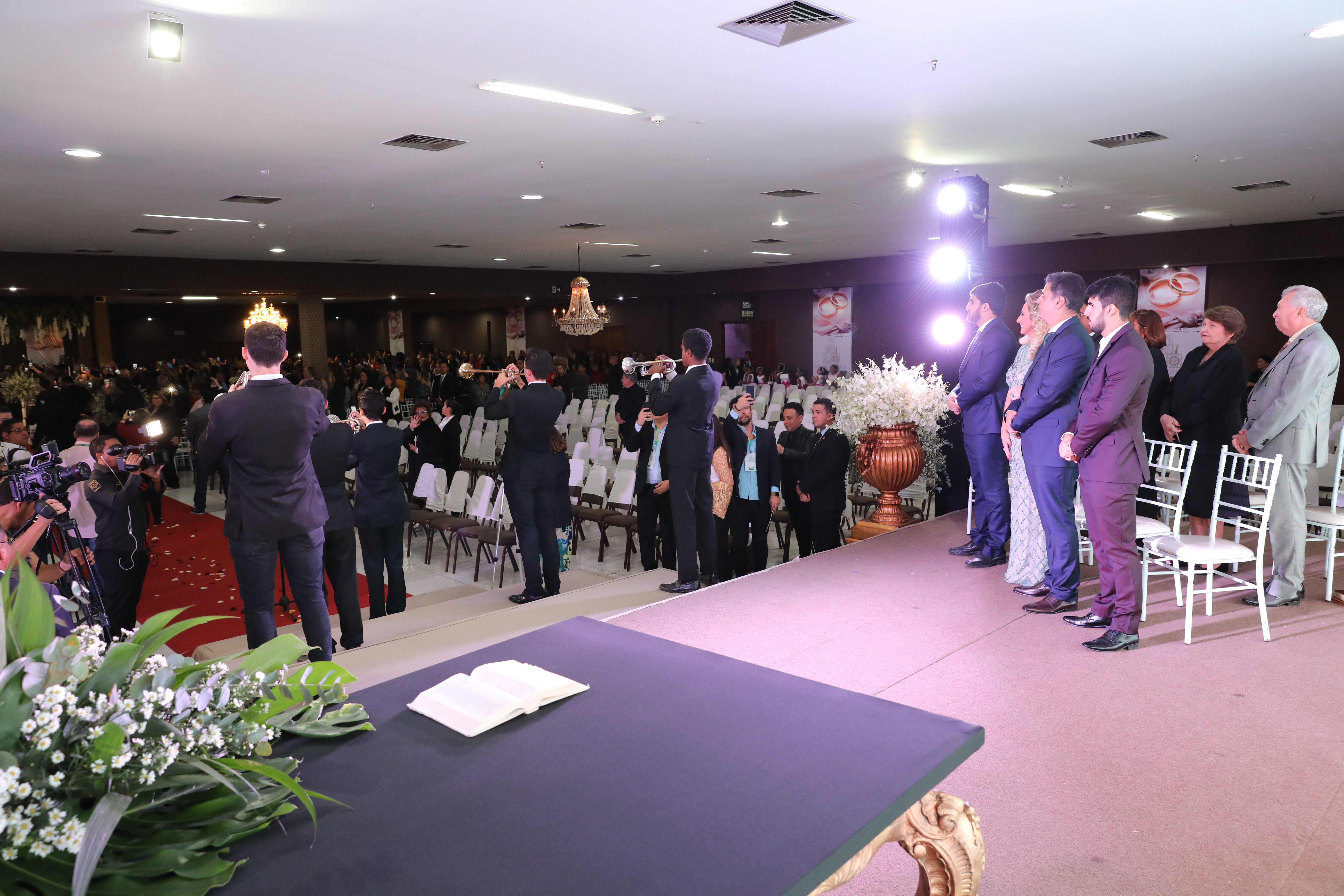 Mais de 2,5 mil pessoas participaram da cerimônia do Casamento Social – Cuiabá 300 Anos, promovido pela Prefeitura de Cuiabá neste sábado (03), no Hotel Fazenda Mato Grosso. Ao todo, 300 casais oficializaram a união.
