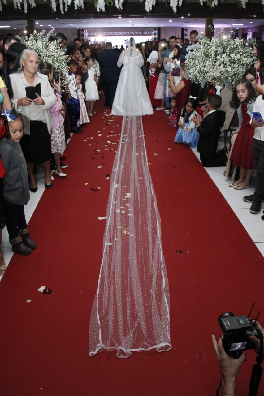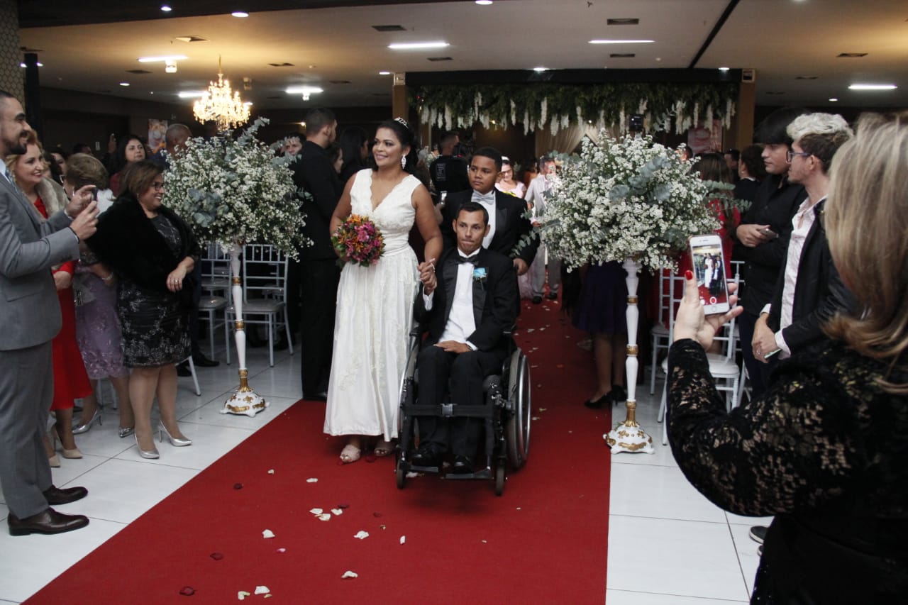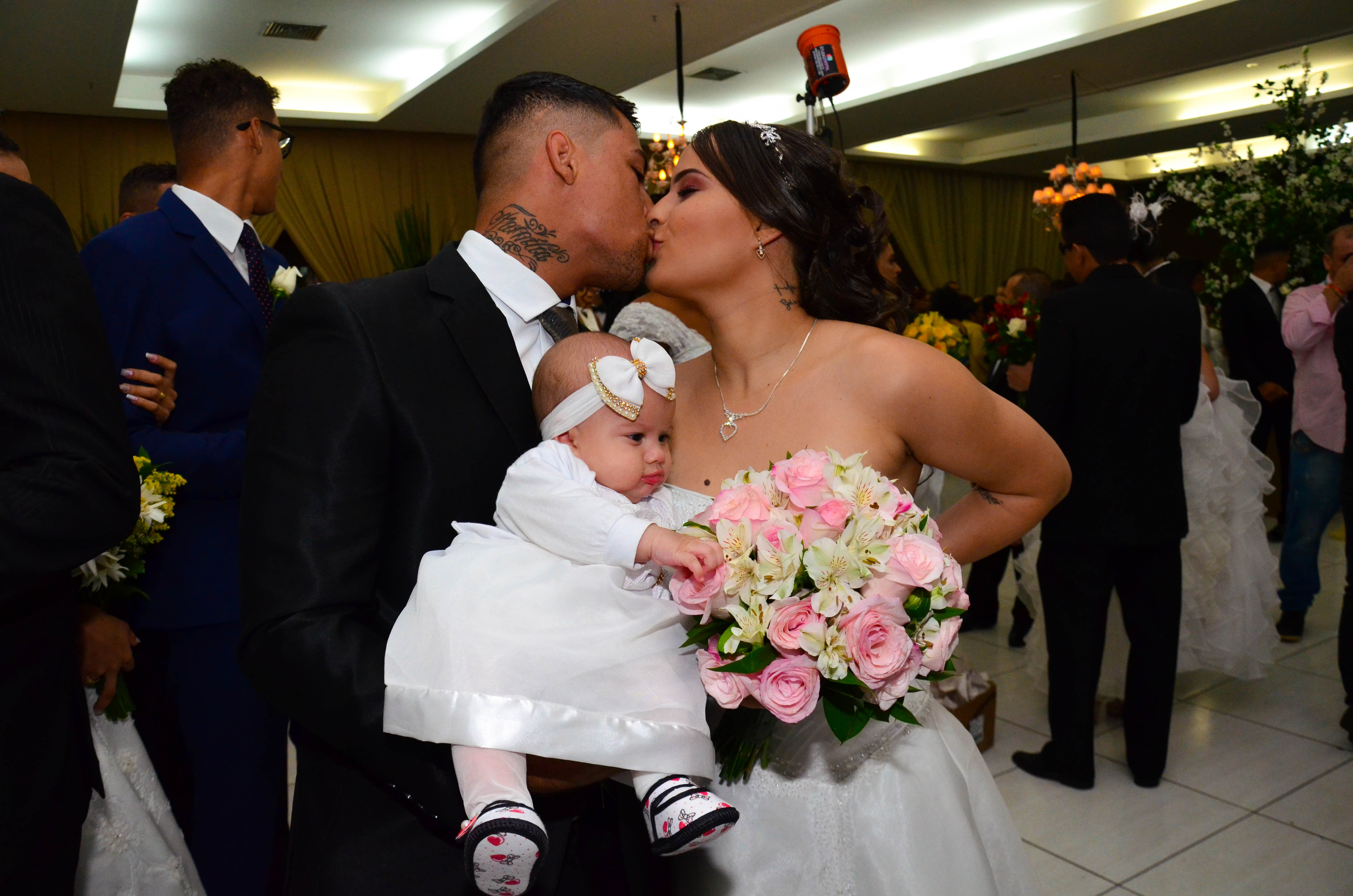"Gratidão", essa foi a palavra resumida pelo casal Jessilene e Edilson, juntos há três anos. "Hoje temos a certeza de que Deus faz tudo certo e na hora certa. Nada acontece por acaso. Hoje estamos casando numa cerimônia vista apenas nos filmes de romance", comentaram.