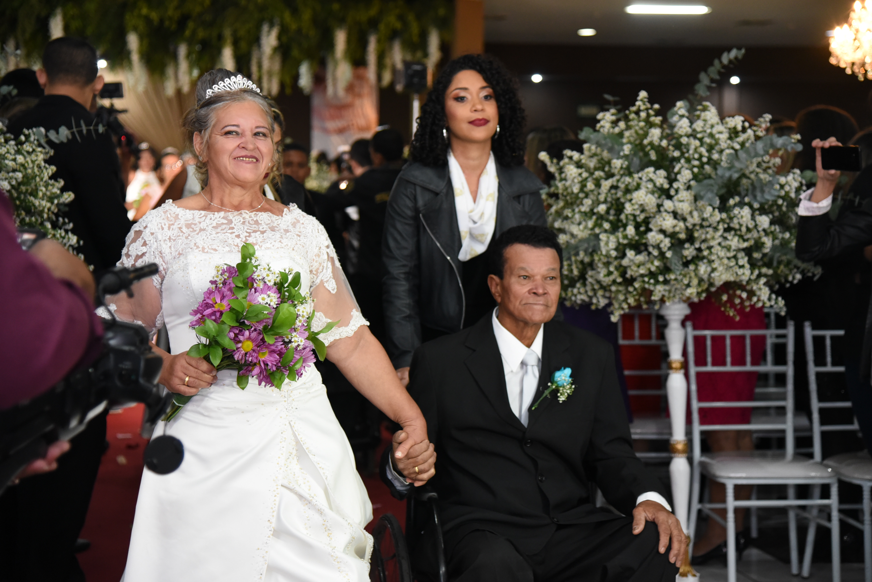 Em um ambiente todo decorado e devidamente apropriado para a cerimônia do Casamento Social, os noivos tiveram a oportunidade de oficializar a união esperada há 10, 20 ou até 30 anos.