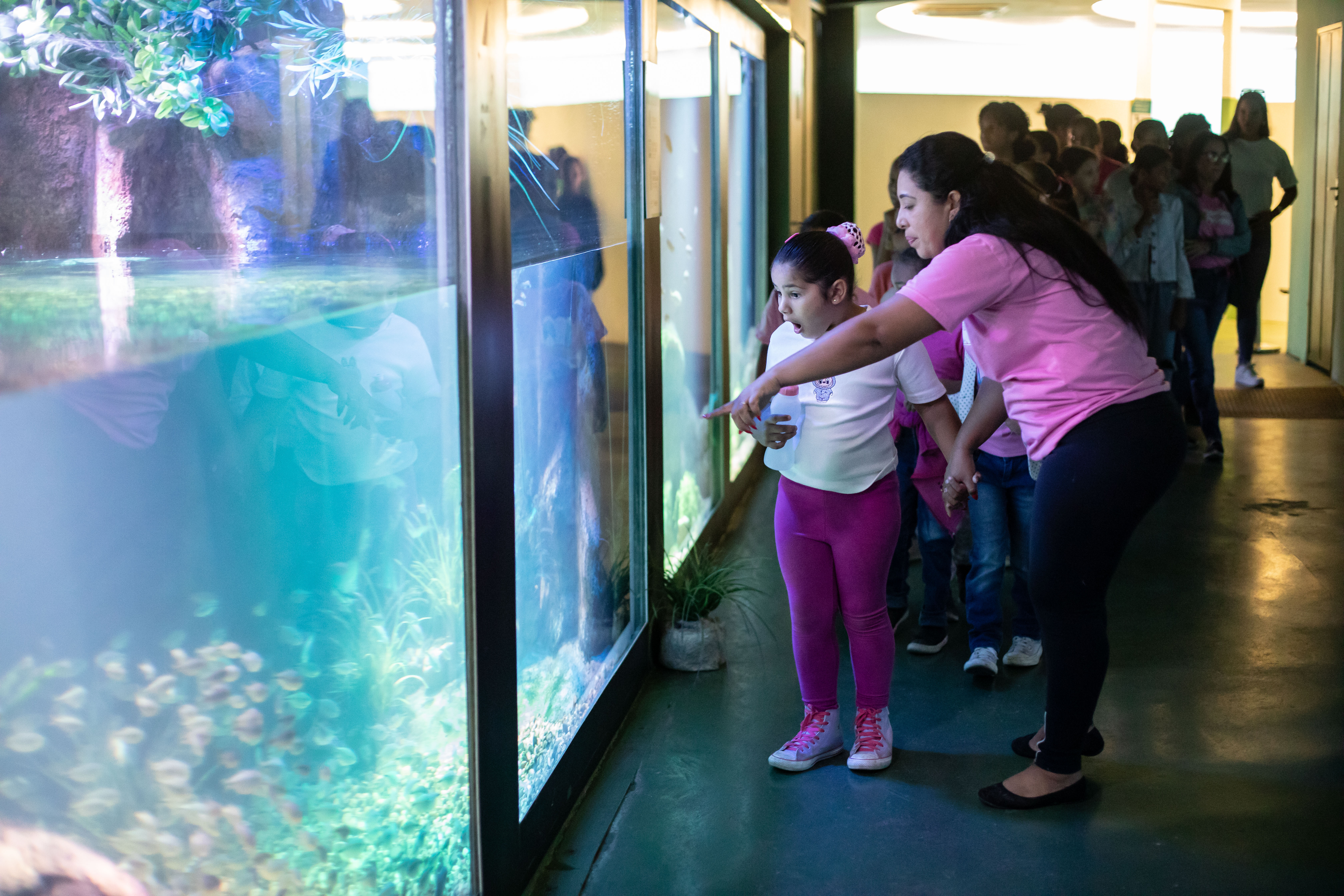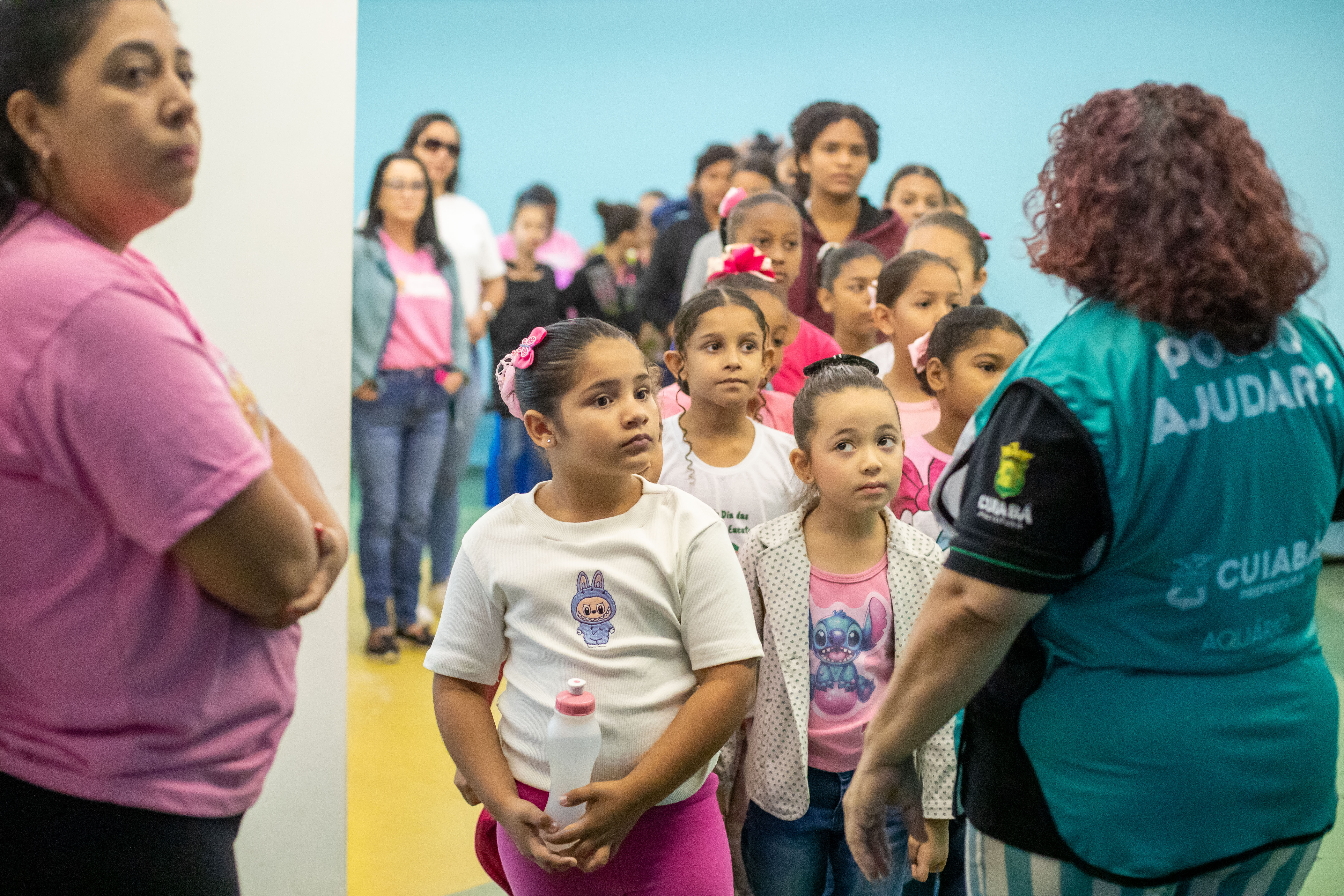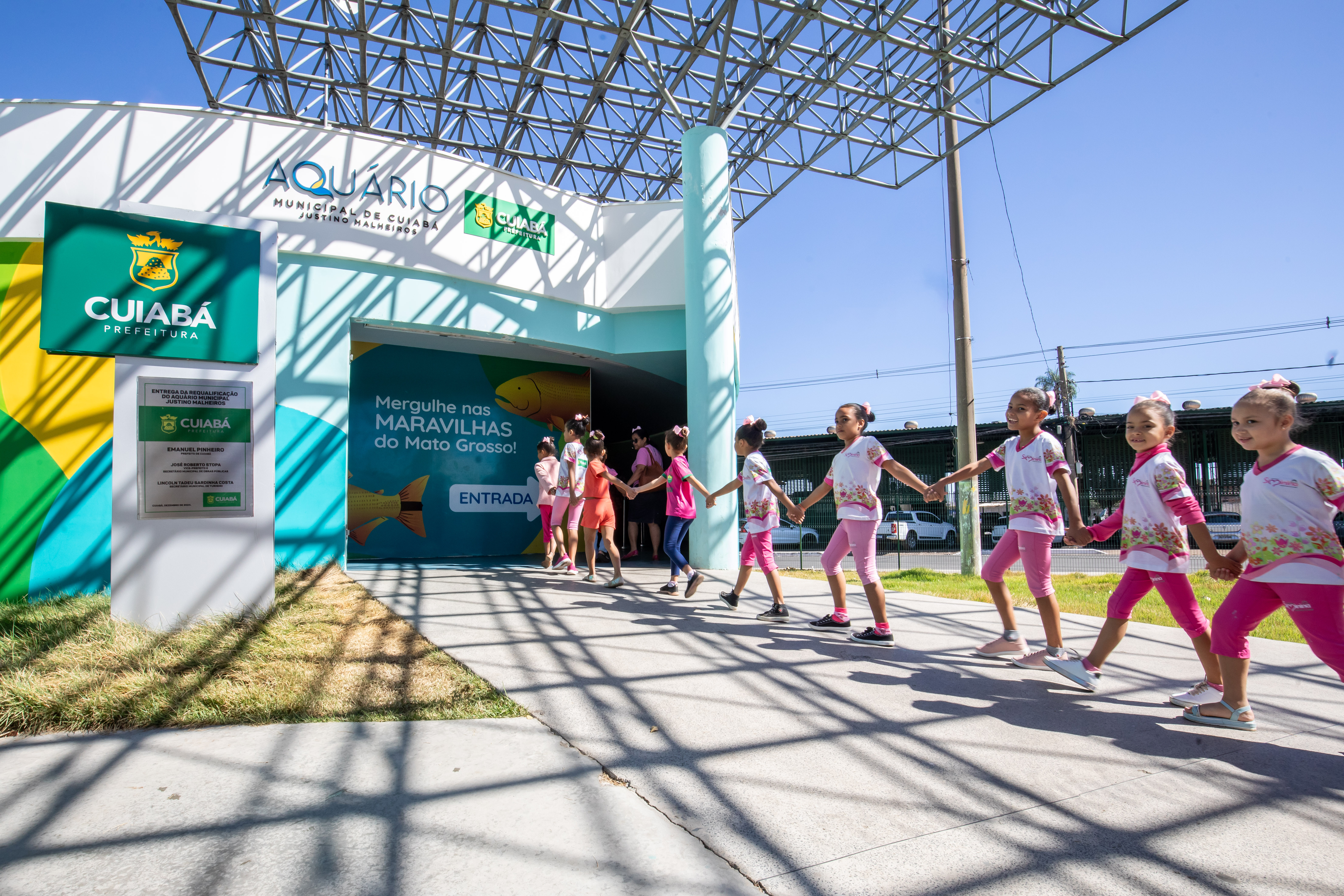 Mais de 200 meninas atendidas pelas unidades do Programa Siminina dos bairros Carumbé e Primeiro de Março, em Cuiabá, participaram, nesta quarta-feira (13), nos períodos matutino e vespertino, de uma visita especial ao Aquário Municipal Justino Malheiros. O espaço disponibiliza aos visitantes mais de 600 peixes, distribuídos em aproximadamente 22 espécies, organizadas em três biomas: Amazônia, Pantanal e Cerrado.