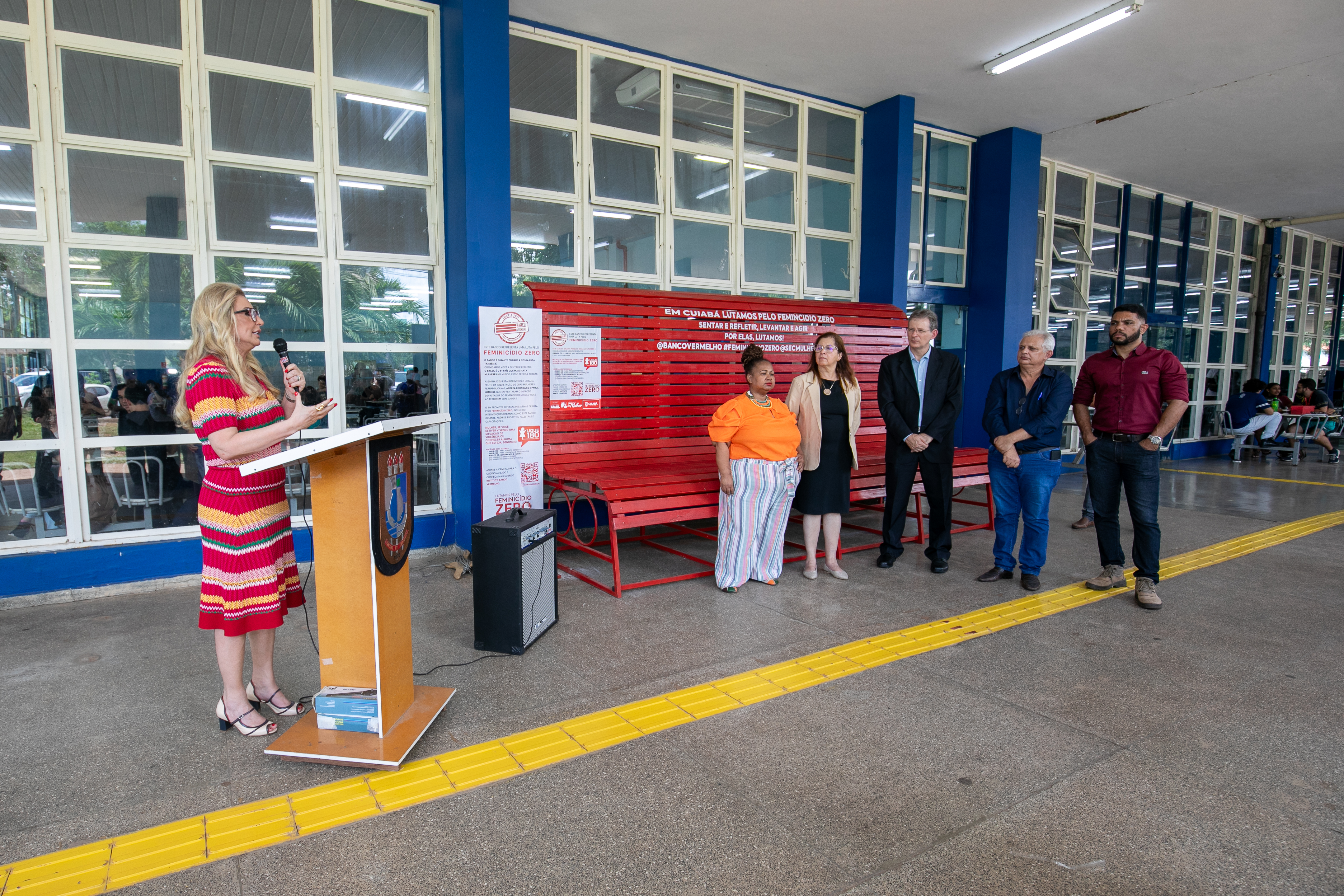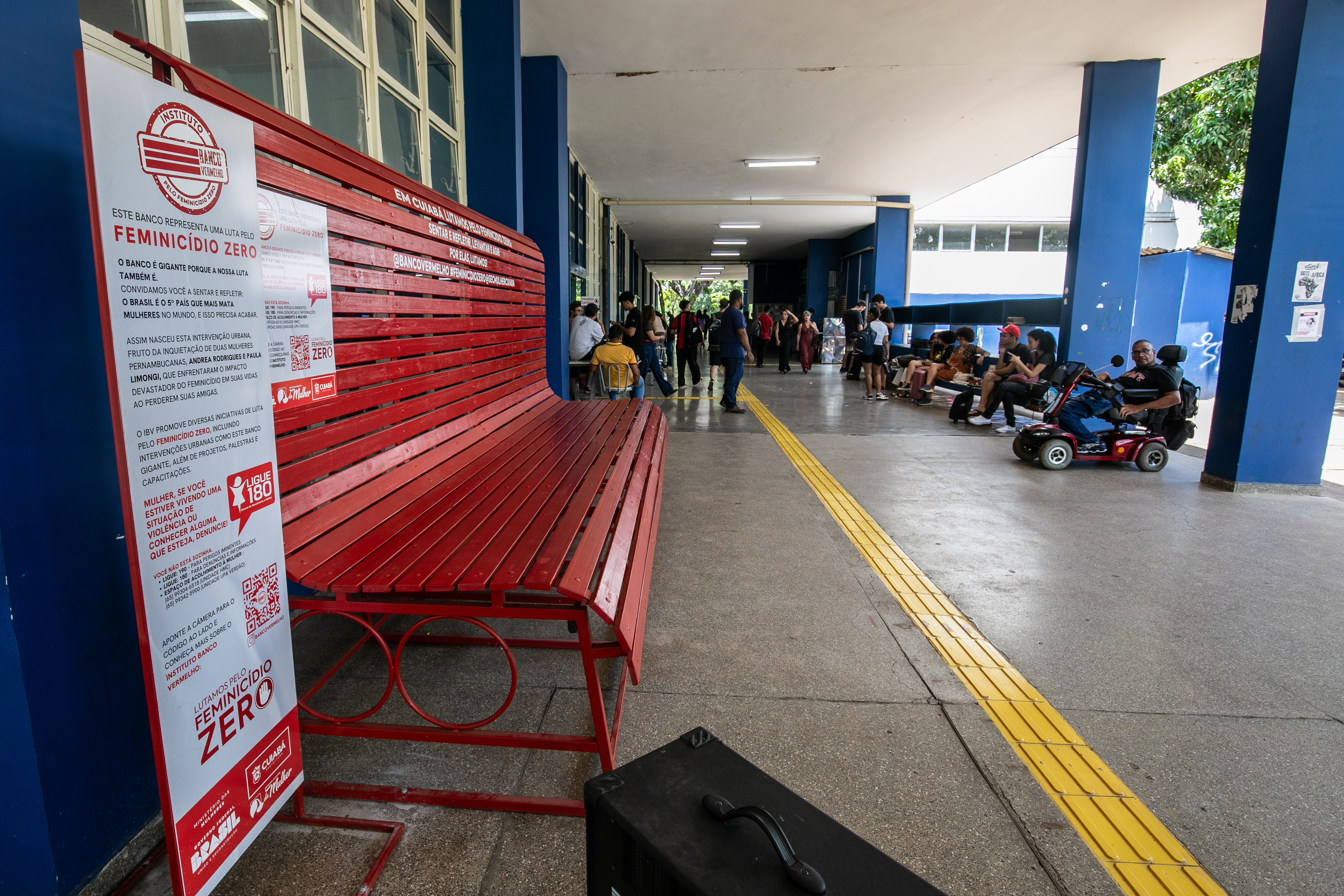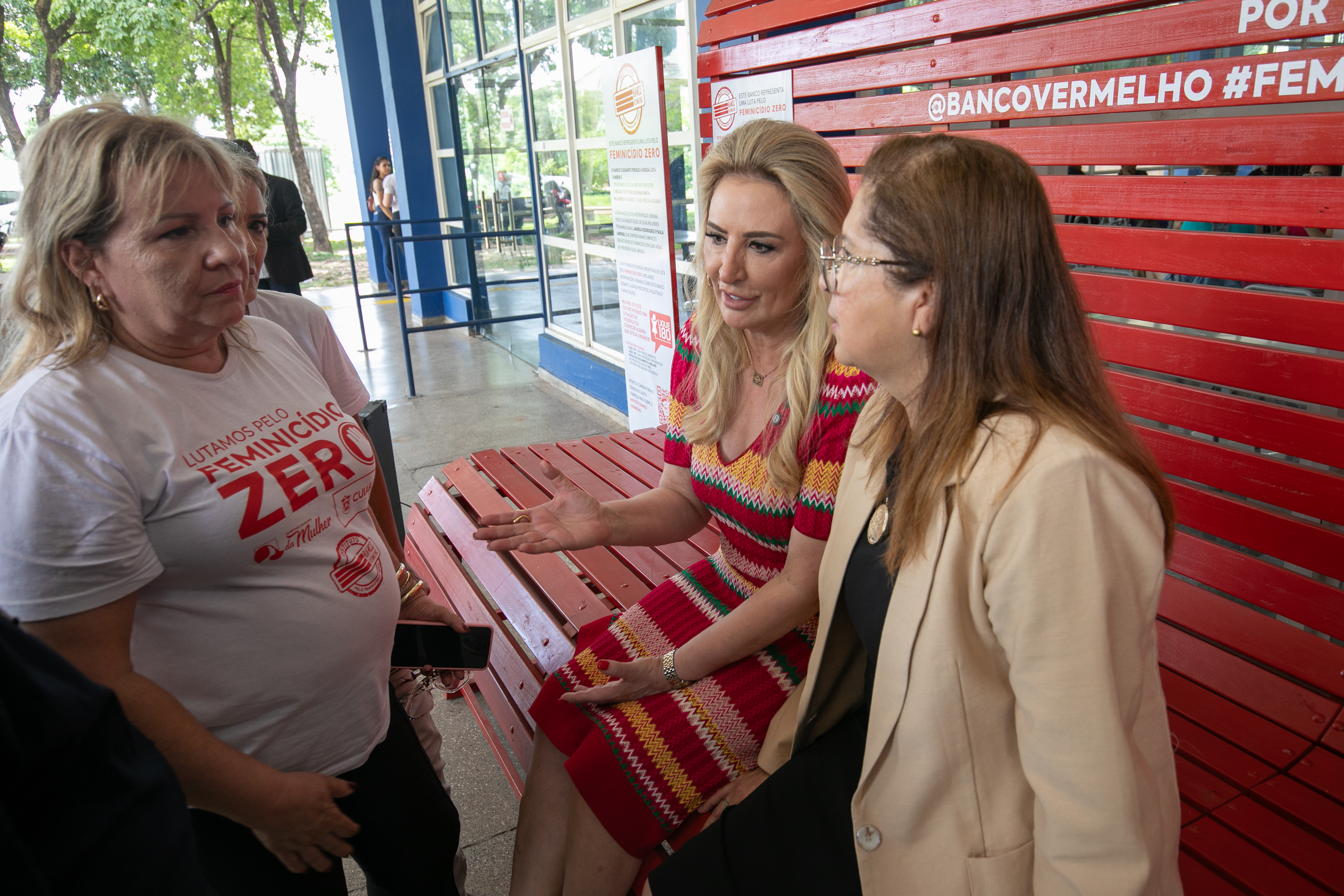 Além da instalação dos bancos, 30 placas de sinalização, também na cor vermelha, foram fixadas em pontos estratégicos da capital. Essas placas trazem o sinal de “Pare”, simbolizando a urgência de interromper a violência contra as mulheres.