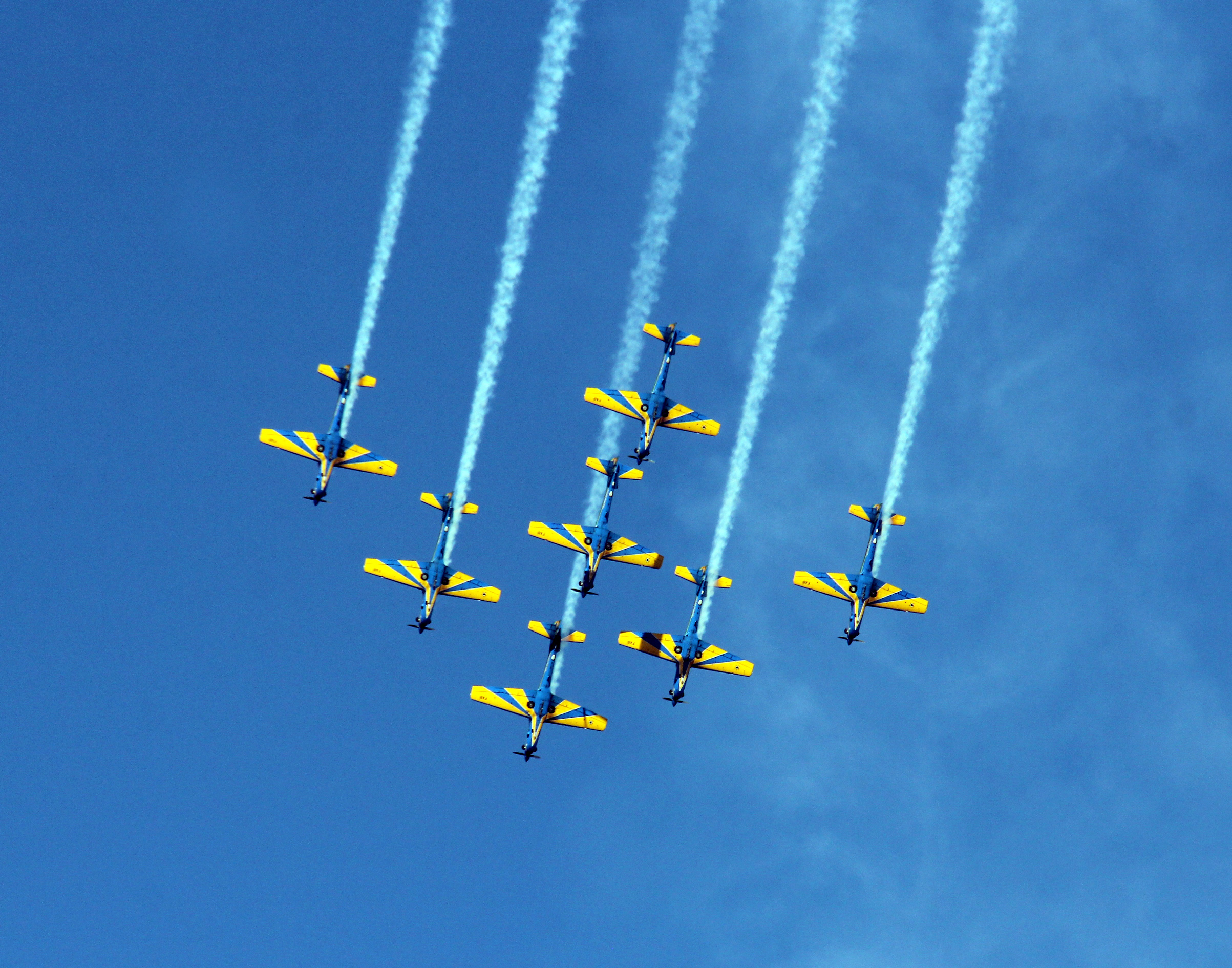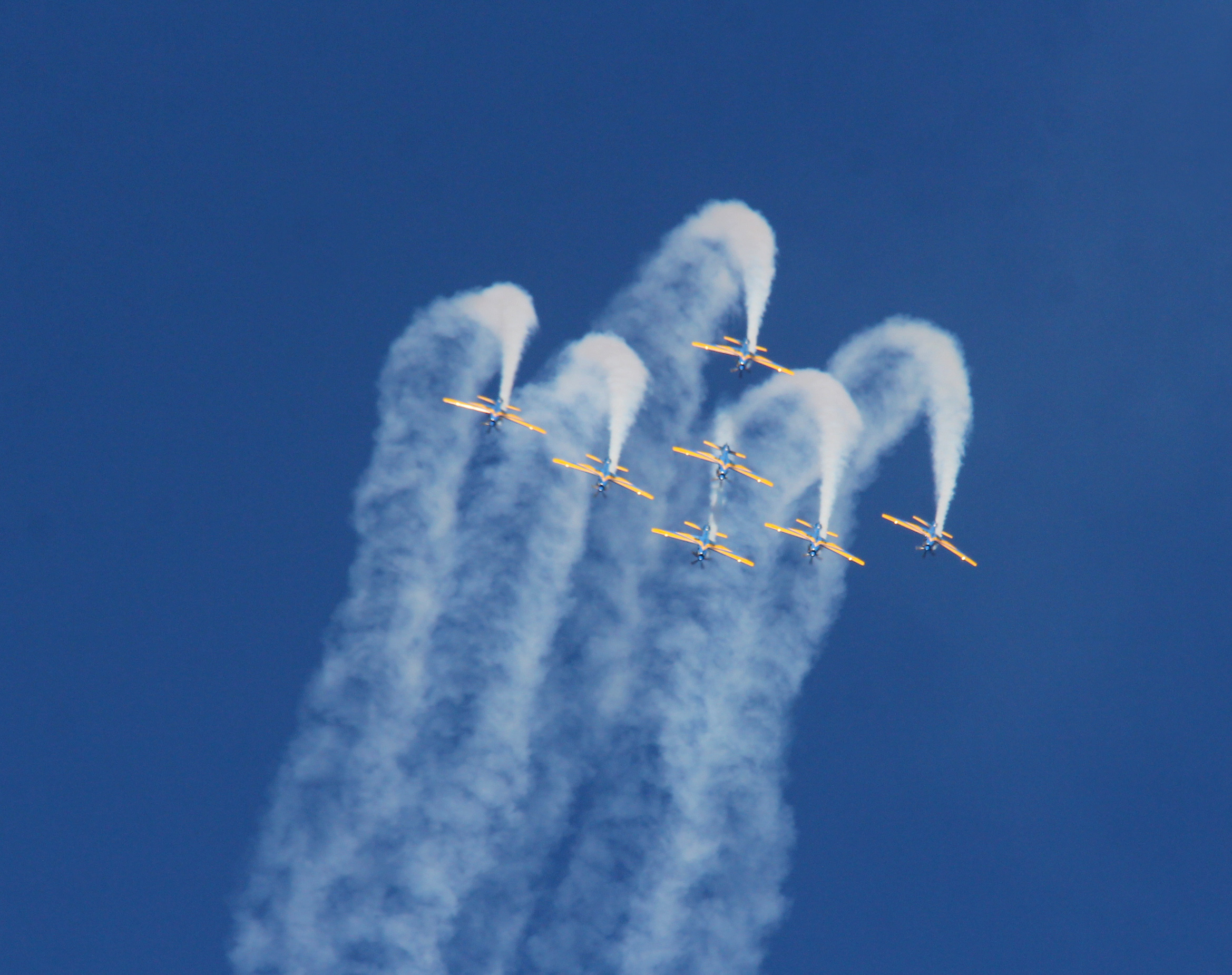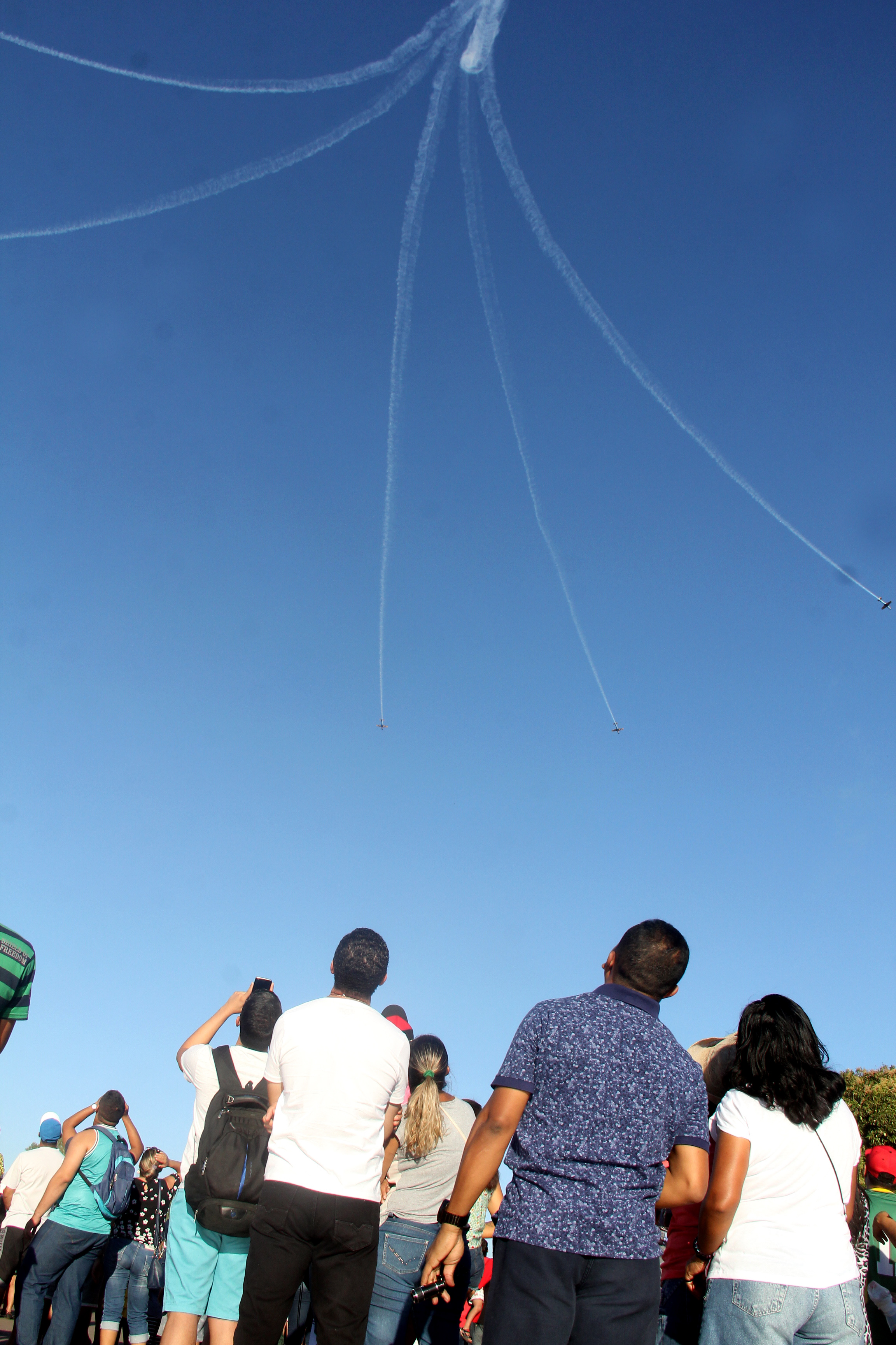 Manobras aéreas como parafuso, loup, além de cruzamentos de várias aeronaves em pleno voo. Ainda teve a arriscada manobra apelidada de brak e muitos split de quatro aeronaves juntas. A manobra mais aplaudida por todos era quando os tucanos faziam os chamados parafusos, que é a subida da aeronave a dois mil metros e no pico diminuia a potência do motor, e flutuava no ar dando a impressão de estar caindo. “Foi emocionante o parafuso do avião a gente tinha a impressão de ele estar caindo sobre nós”, contou a manicure Terezinha Alves.