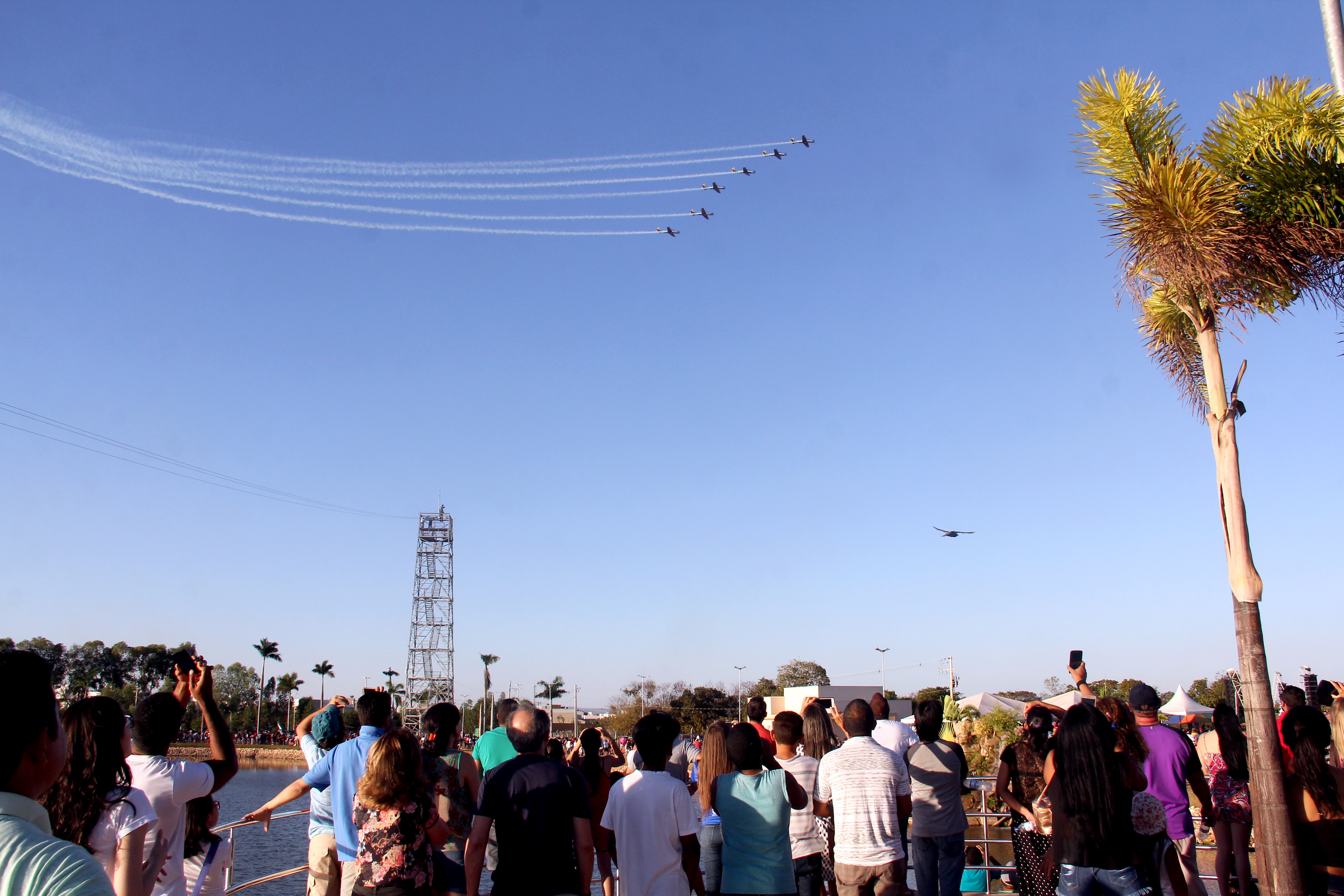 “Por isso, tivemos um extraordinário público de mais de 40 mil pessoas aqui”, completou o secretário. O show da Esquadrilha da Fumaça no Parque Tia Nair durou aproximadamente 50 minutos, com apresentações de várias manobras . A bordo de aviões tucanos de tecnologia inteiramente brasileira, no ar, a esquadrilha estava sob comando do major Marcelo, já em terra comandava tudo o capitão Capuchinho, auxiliados por mecânicos, corpo de cerimonial, além de pilotos que atuam em terra, todos militares da FAB.