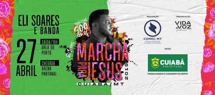 Em celebração aos 300 anos de Cuiabá – comemorados no dia 8 de abril -, o tradicional evento cristão “Marcha para Jesus”, acontece neste sábado (27). A expectativa do Conselho de Ministros Evangélicos Cristãos de Mato Grosso (COMEC/MT), que organiza o evento, é manter o público dos últimos anos e reunir 40 mil pessoas. Com apoio da Prefeitura de Cuiabá, a 25ª edição terá o show nacional do cantor Eli Soares e sua banda e demais atrações regionais.
