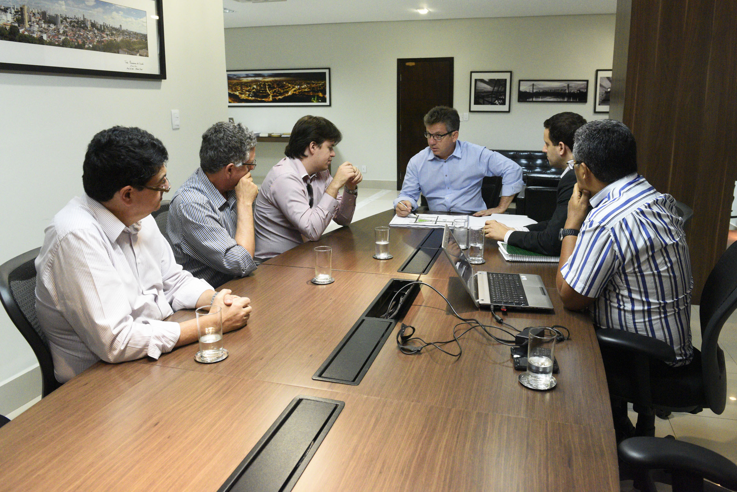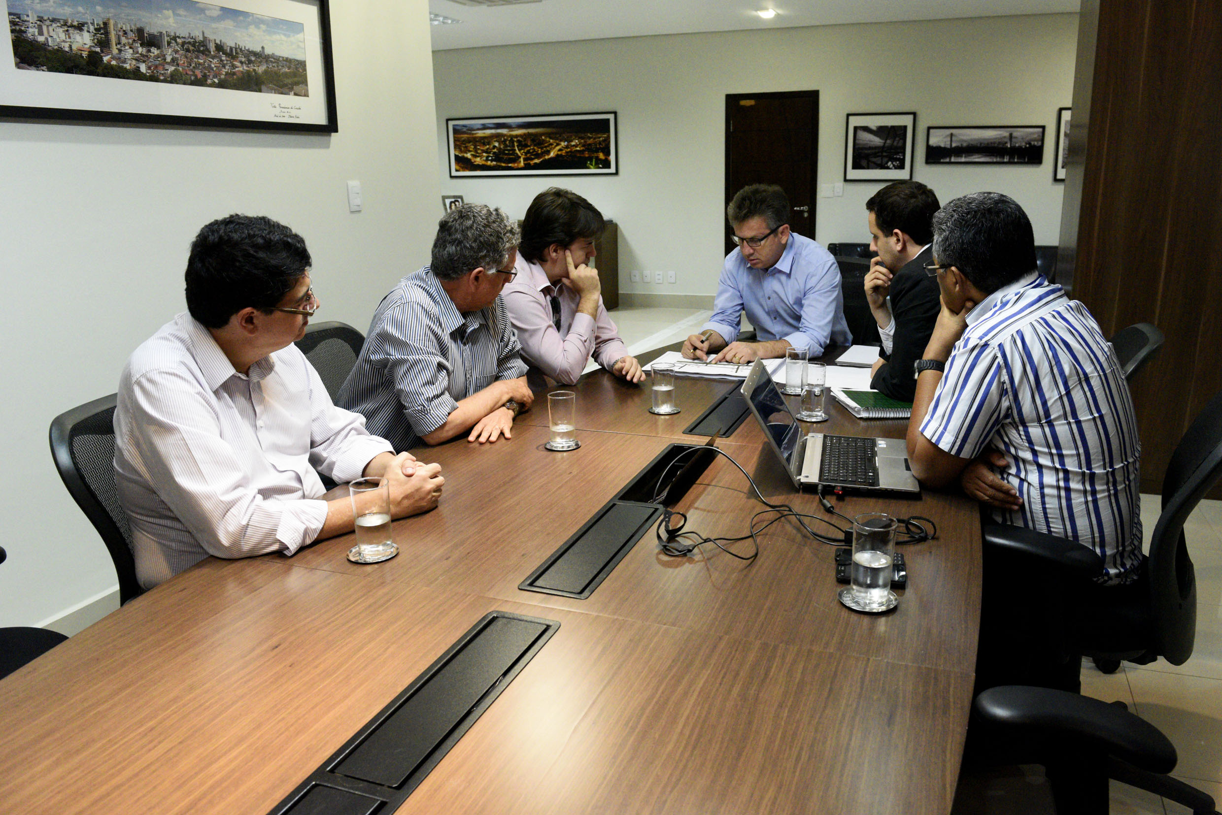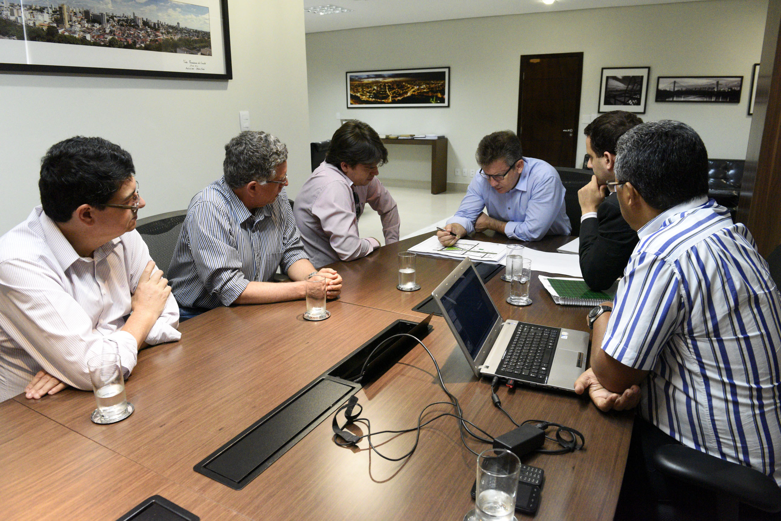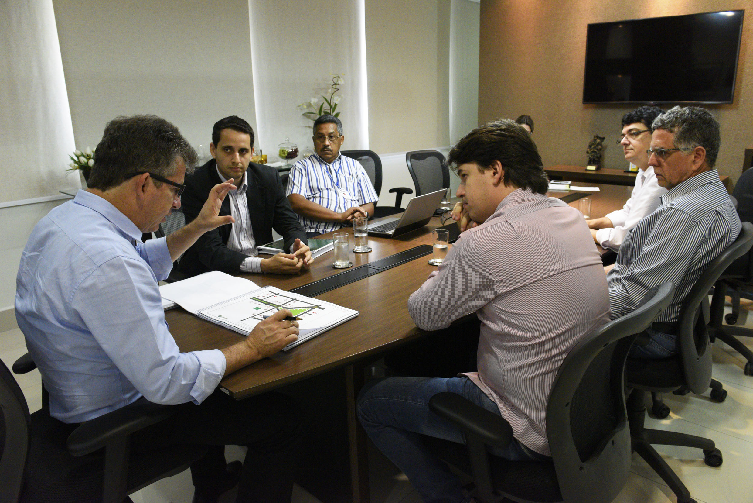 O prefeito Mauro Mendes recebeu na tarde desta sexta-feira (03) representantes do Goiabeiras Shopping e o secretário municipal de Mobilidade Urbana, Thiago França, para conhecer o projeto de adequação da sinalização viária da Avenida Lava Pés.