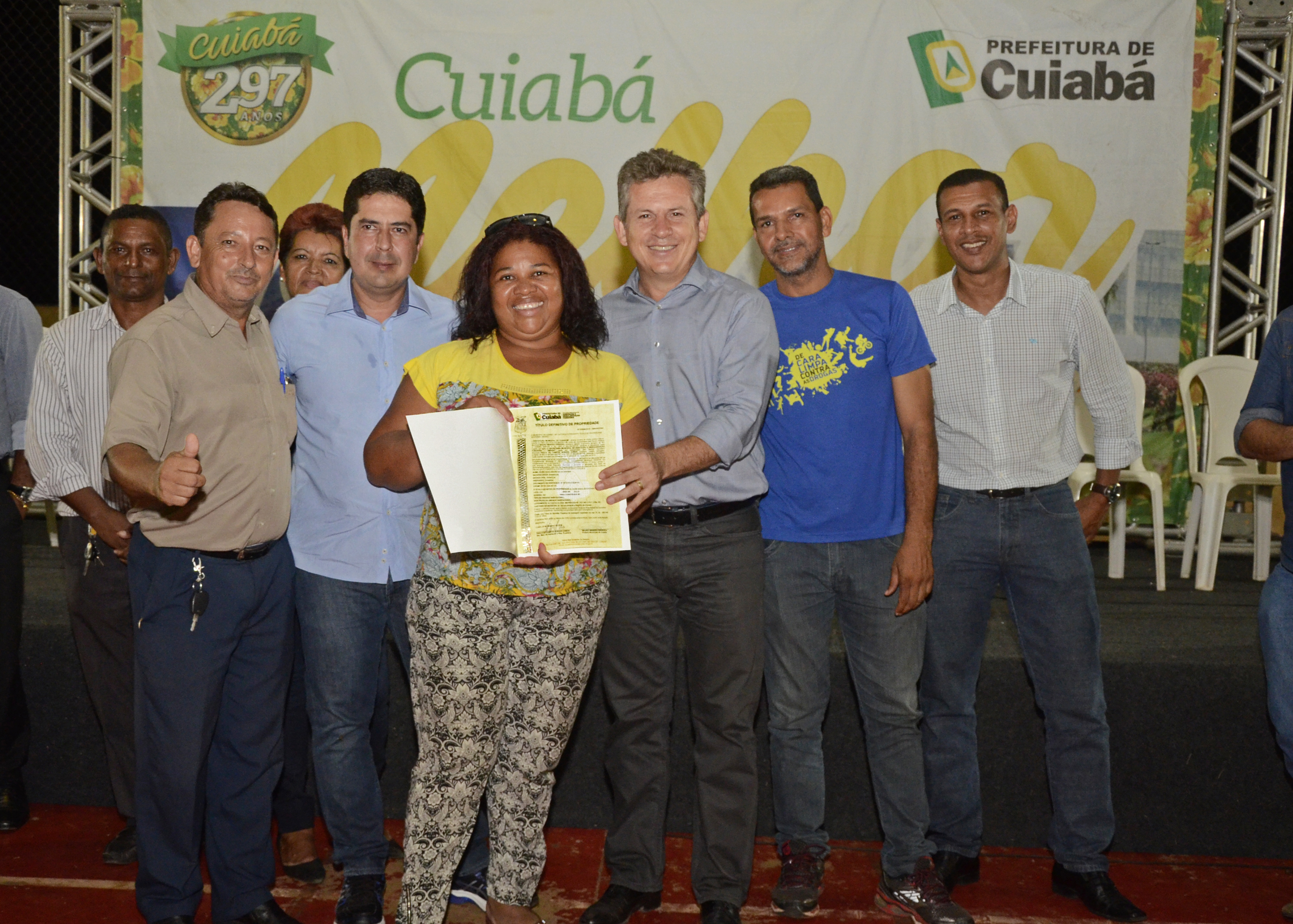 O prefeito Mauro Mendes entregou na noite de terça-feira (08) 585 títulos de propriedade definitiva para moradores dos bairros Jardim Umuarama I e II, Altos da Glória e Jardim Aroeira. A entrega foi na Escola Estadual Hugueney de Silveira Bastos, no bairro Jardim Aroeira.