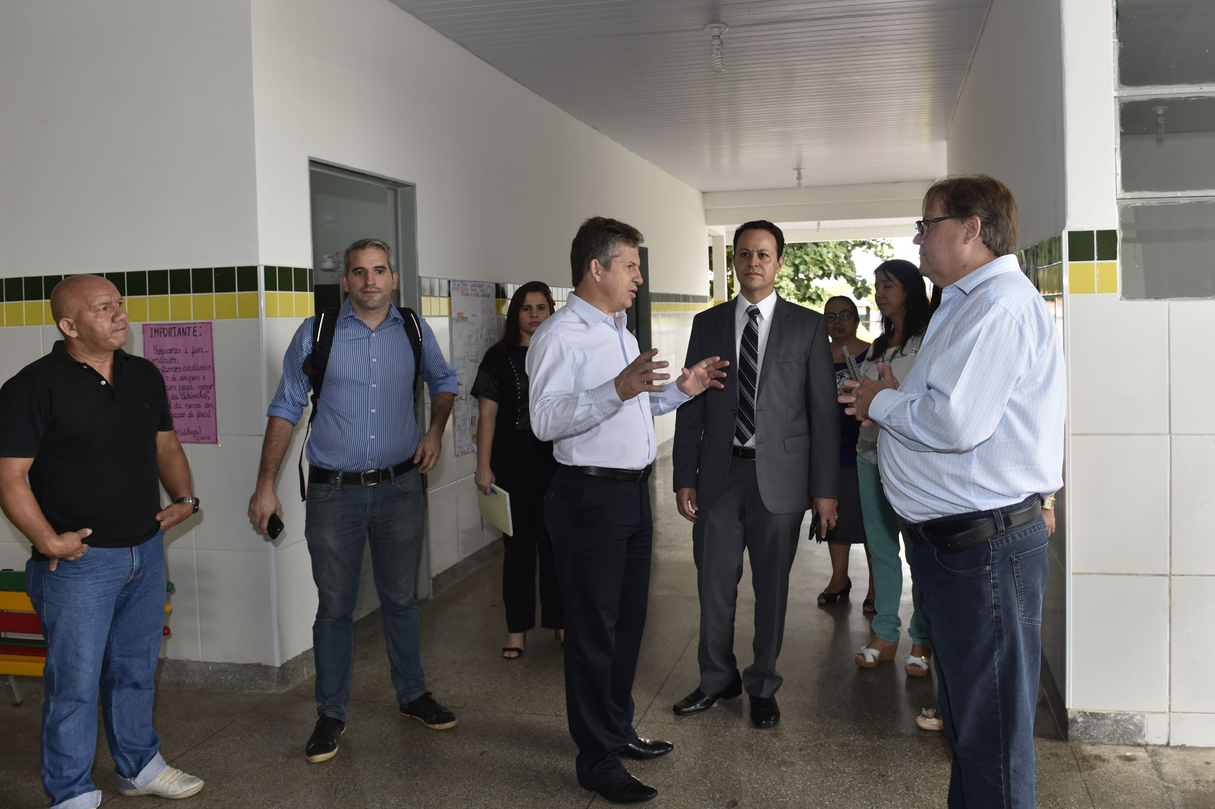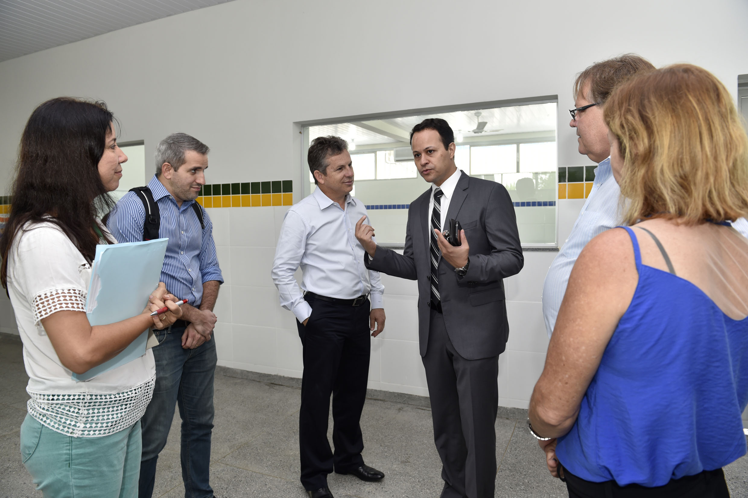 Mauro Mendes mostra qualidade de obras em unidades de ensino a promotor