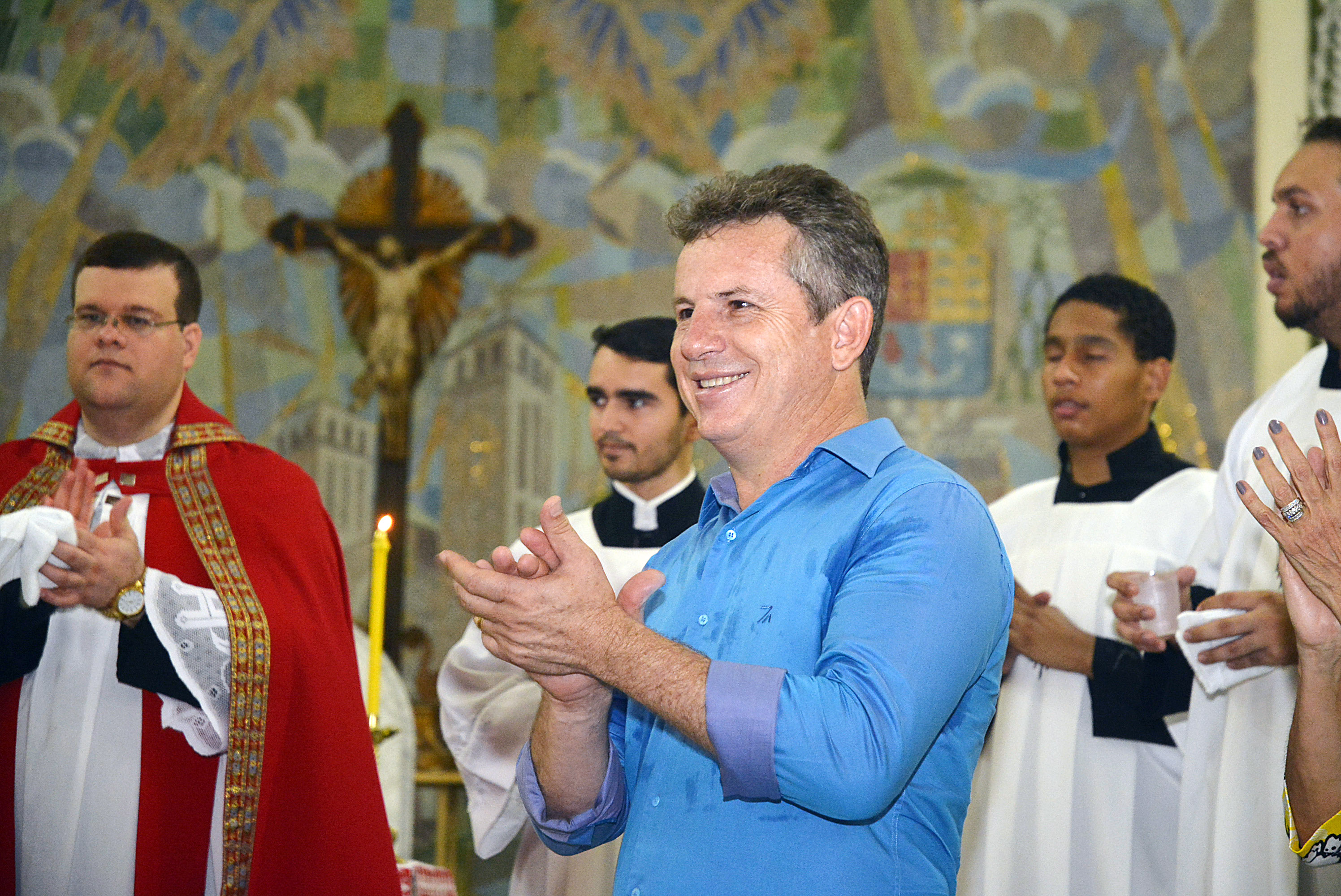O prefeito Mauro Mendes participou na tarde de domingo (27) da santa missa e da procissão que marca o encerramento dos festejos do Senhor Bom Jesus de Cuiabá. As festividades aconteceram na Catedral Metropolitana Basílica do Senhor Bom Jesus.