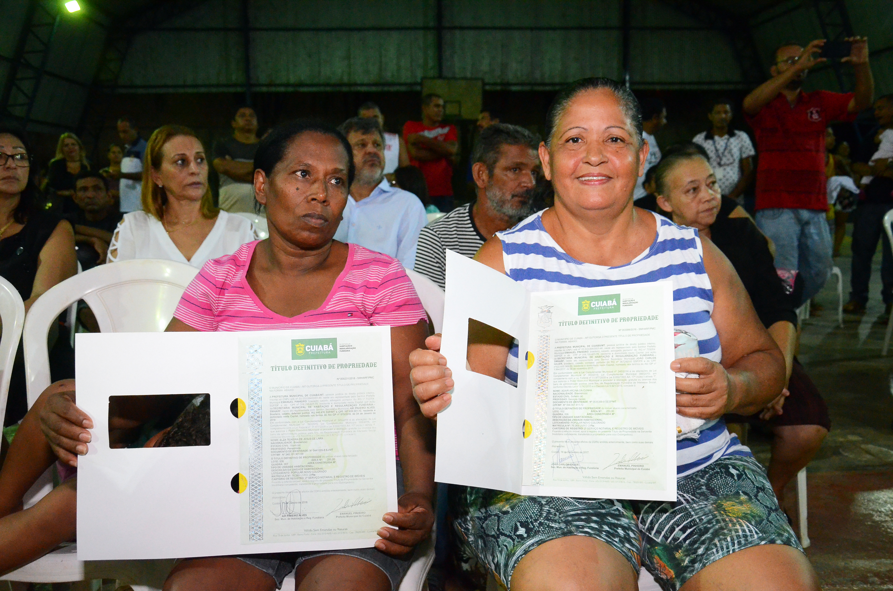 Organizar a Capital, que foi se formando a partir de invasões, onde isso representa aproximadamente mais 40% da cidade, promovendo a inclusão, dignificando a vida da população e levando a ela o acesso a segurança jurídica e social. Com essa visão, o prefeito Emanuel Pinheiro entregou mais 53 títulos de posse definitiva de propriedade, na noite desta quinta-feira (12), contemplando os moradores dos bairros Novo Colorado e Ribeirão do Lipa, situados na região Oeste da Capital.