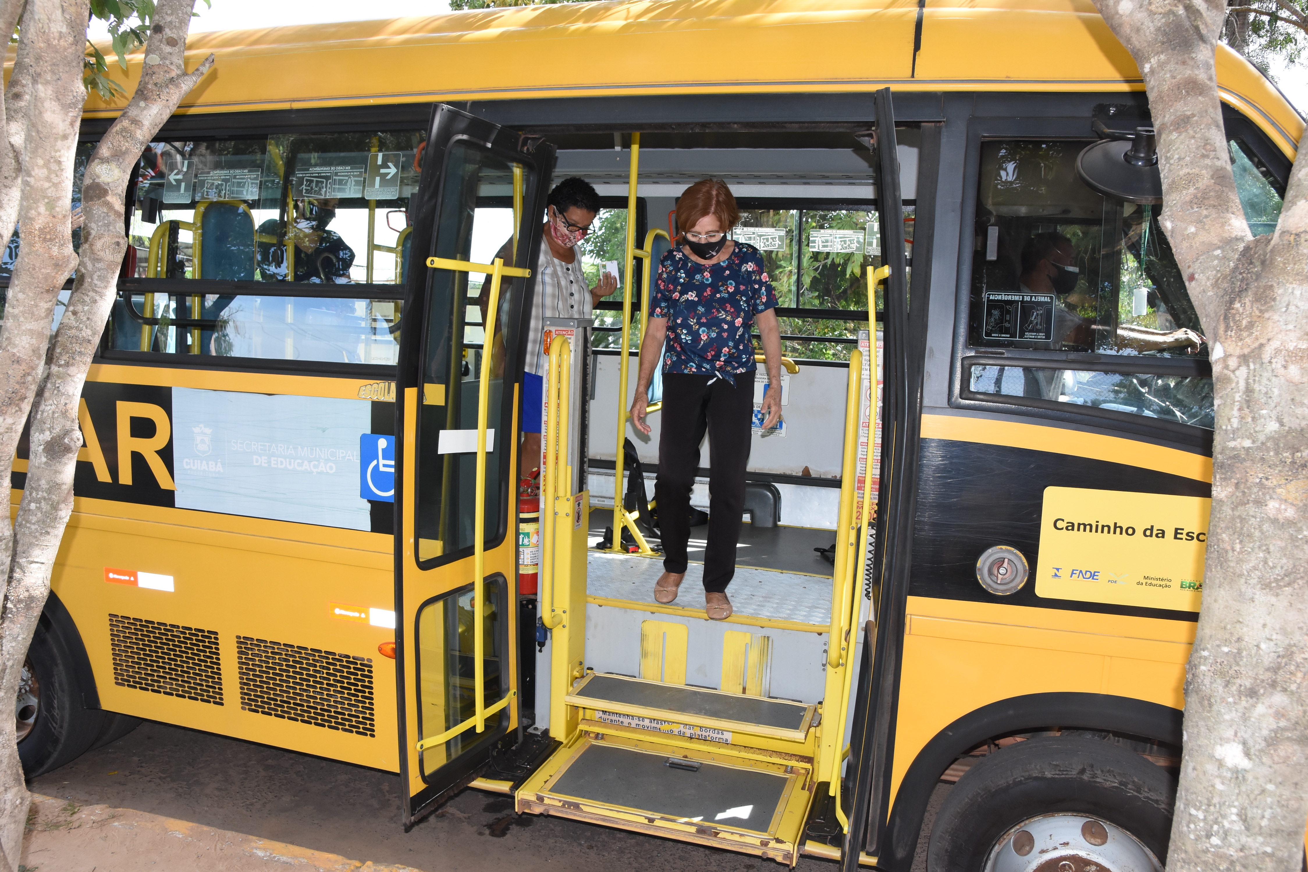 Dois micro-ônibus utilizados no transporte escolar estão dando suporte na vacinação de idosos no Sesc Balneário, no bairro São João D’Rey, na Grande Coxipó. A parceria entre as Secretarias de Saúde e de Educação está facilitando o transporte de idosos que não possuem carro, para vacinação contra a Covid-19.