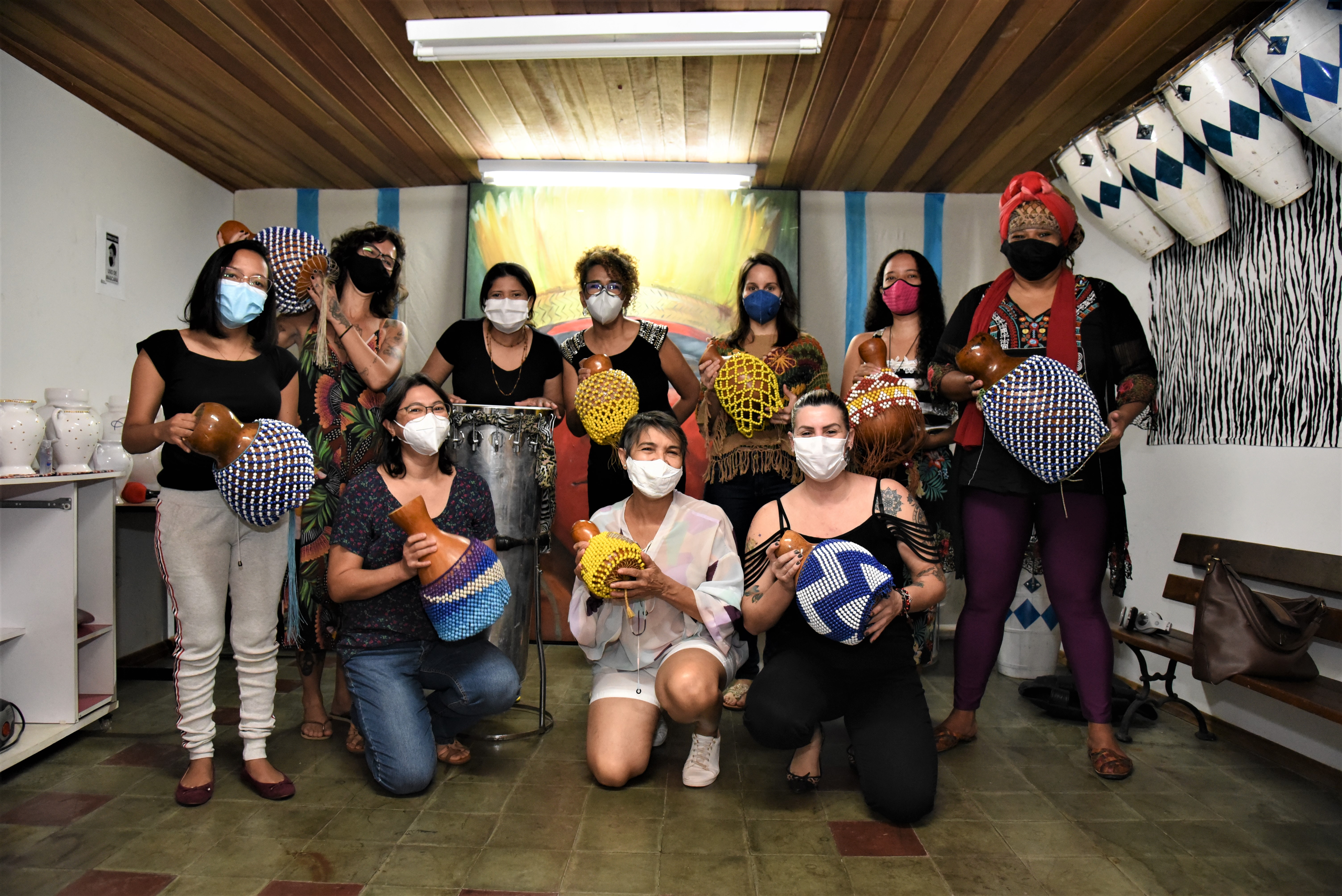Nesta quinta-feira (05), a diretora musical, maestrina de blocos de carnaval, educadora musical, percussionista e produtora Thaís Bezerra participa via Google Meet de uma conversa com as alunas do curso de xequerê sobre a ocupação de espaços por mulheres no ramo da música, como musicistas de instrumentos até mesmo vistos como masculinos, além de contar um pouco do caminho das mulheres na percussão e a inserção do xequerê como instrumento integrante de grandes escolas de samba.