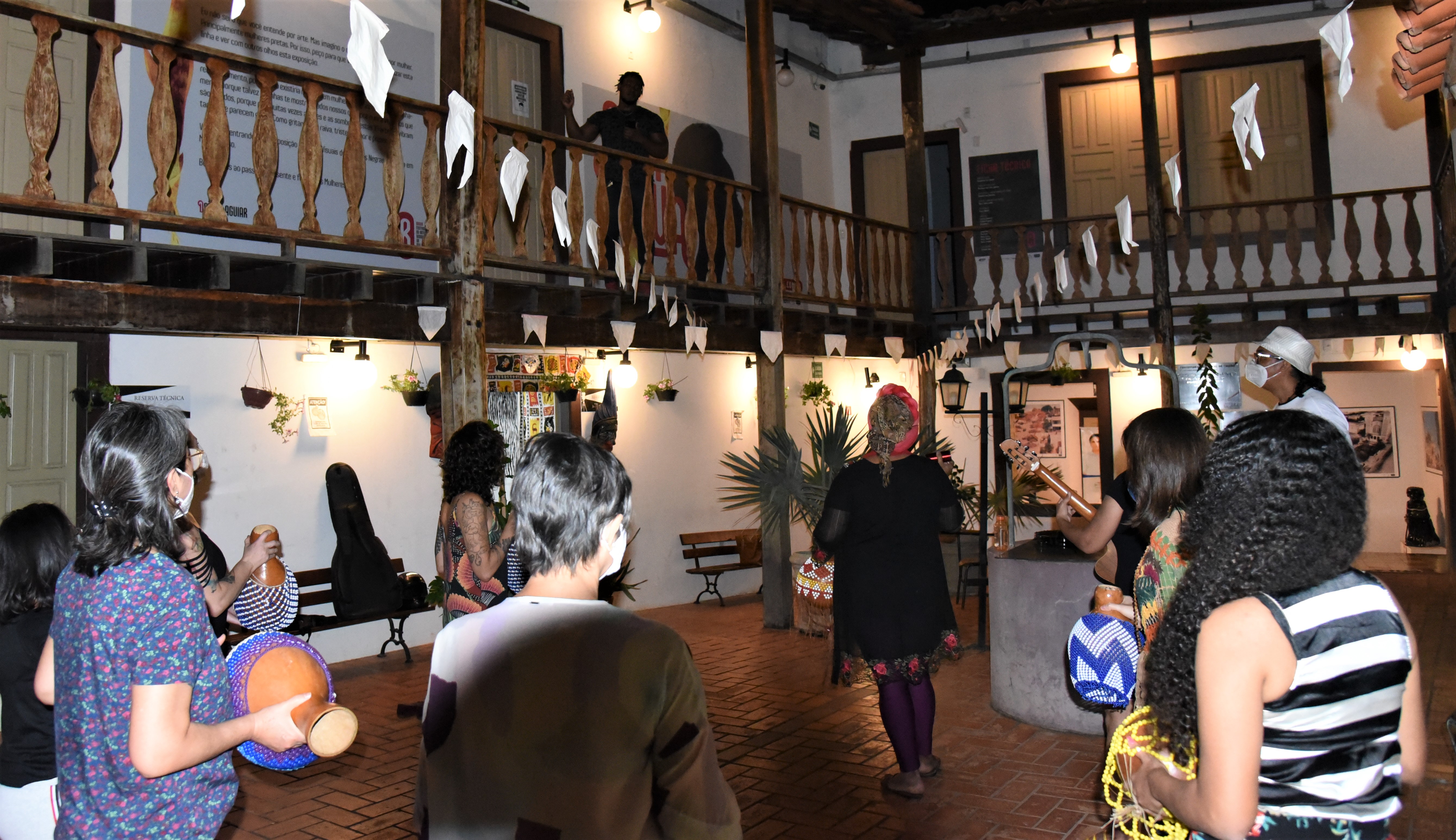 De dentro do cômodo térreo do casarão do Misc, se escutava o balançar do xequerê: xiquexique xiquexieque xiquexique. Ao perceber o som percorrendo o pátio, as mãos do percussionista Pierre alcançaram o tambor que soou: Tundundundun dundundun. Cristovão Luiz, coordenador do Museu chegou para acompanhar e marcar o compasso dos dois instrumentos com o tilintar do agogô e o som ficou mais ou menos assim: Tundundundun xique dundun xique tundun dundundun xiquexique tundundundun. Ou quase isso.