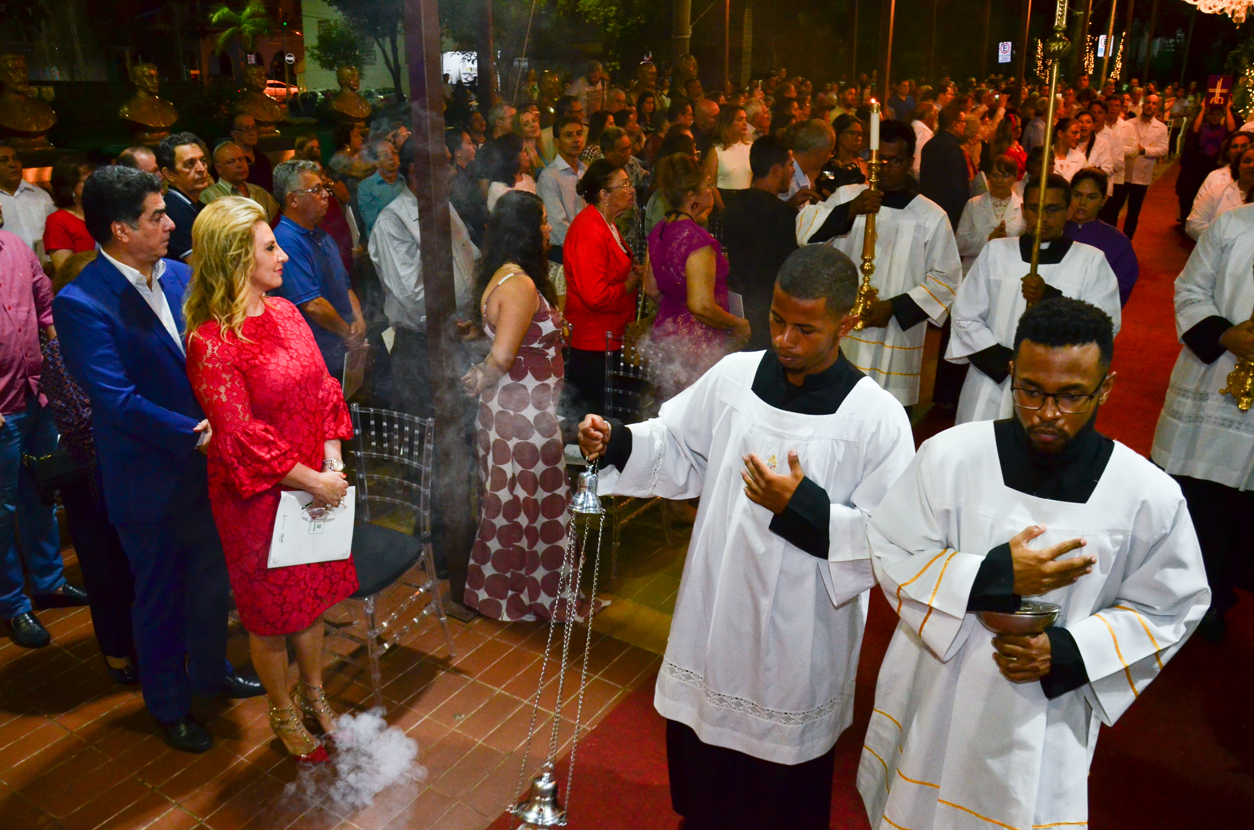 O prefeito Emanuel Pinheiro e a primeira-dama Márcia Pinheiro participaram nesse domingo (22) da terceira Missa Campal. A cerimônia aconteceu na Praça Alencastro e reuniu milhares de fiéis em uma celebração de fé, amor e do nascimento de Jesus Cristo. Além disso, o evento foi promovido pela Prefeitura de Cuiabá como mais uma forma de homenagear famílias que ajudaram a construir a história da Capital.