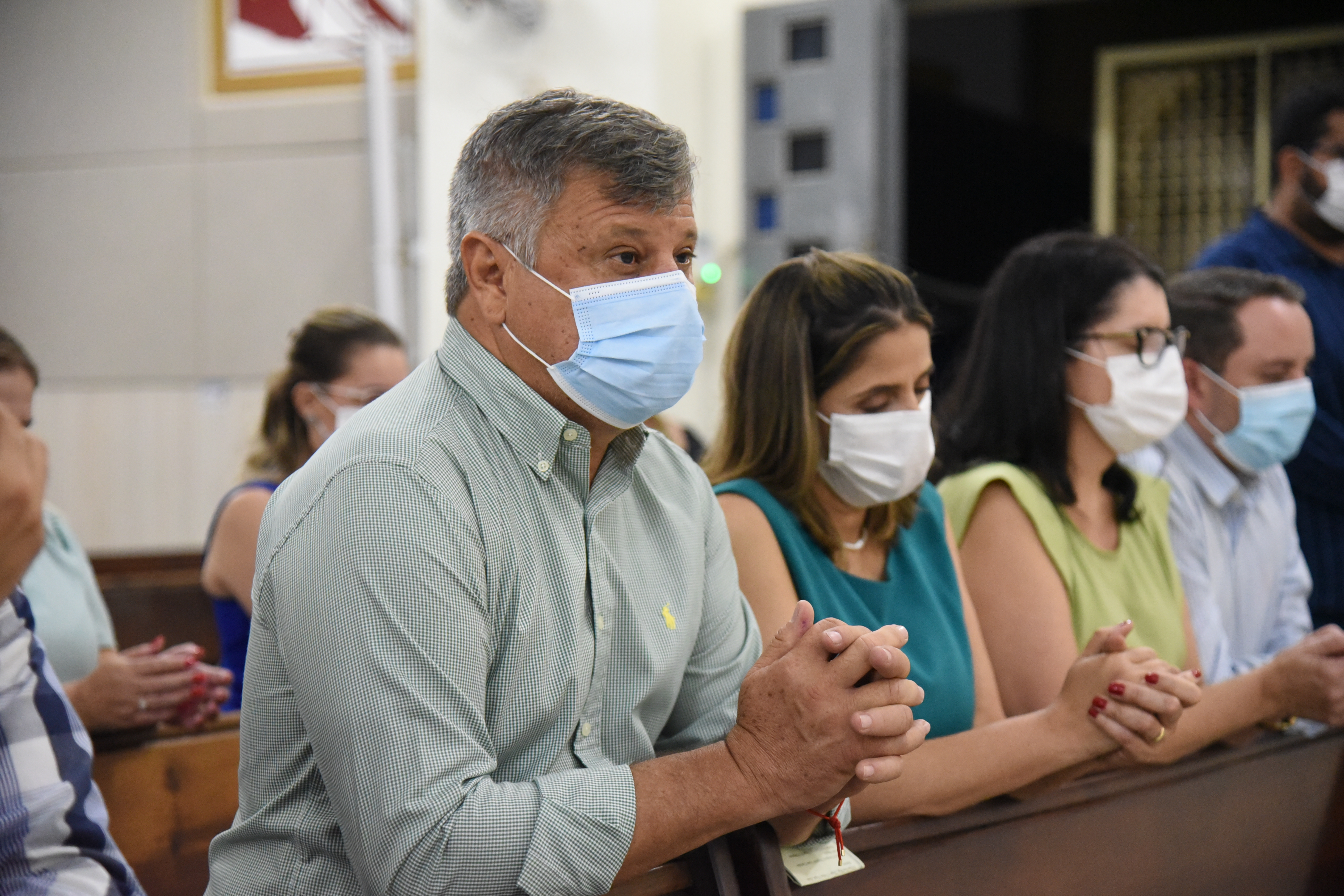 Servidores públicos, secretários municipais, o vice-prefeito José Roberto Stopa, acompanhado da esposa Marialice Mundim, participaram da tradicional Missa de Natal em ação de graça aos servidores municipais na noite desta quarta-feira (22), na catedral Basílica de Cuiabá.