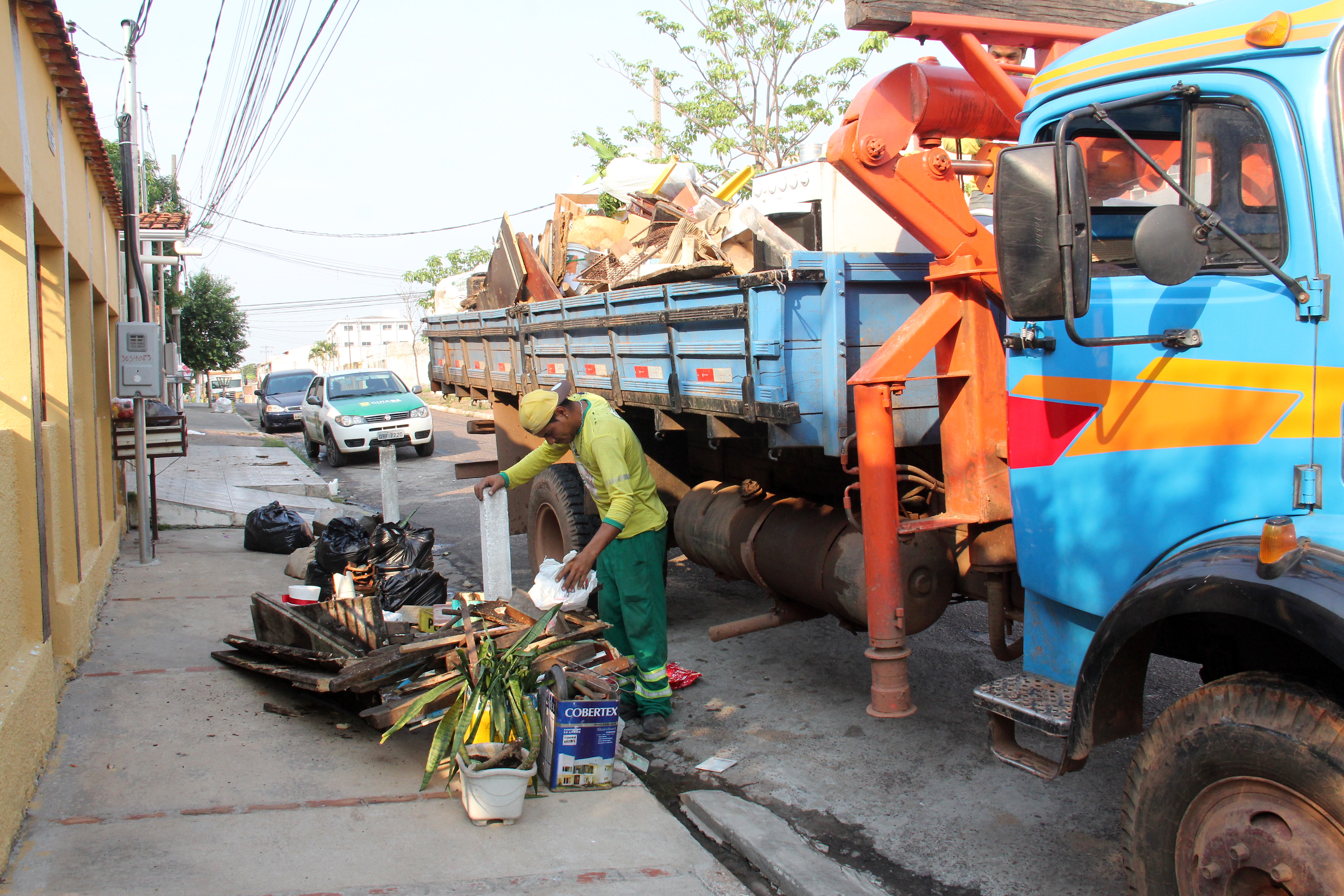 Também foi realizada a coleta dos materiais inservíveis, como sofás, fogões. Ao todo, entre lixo e entulhos, foram retirados 20 caminhões. Esses materiais passam por uma triagem, onde são separados e destinados para reciclagem e/ou depositados no Aterro Sanitário, quando classificados como não aproveitáveis.