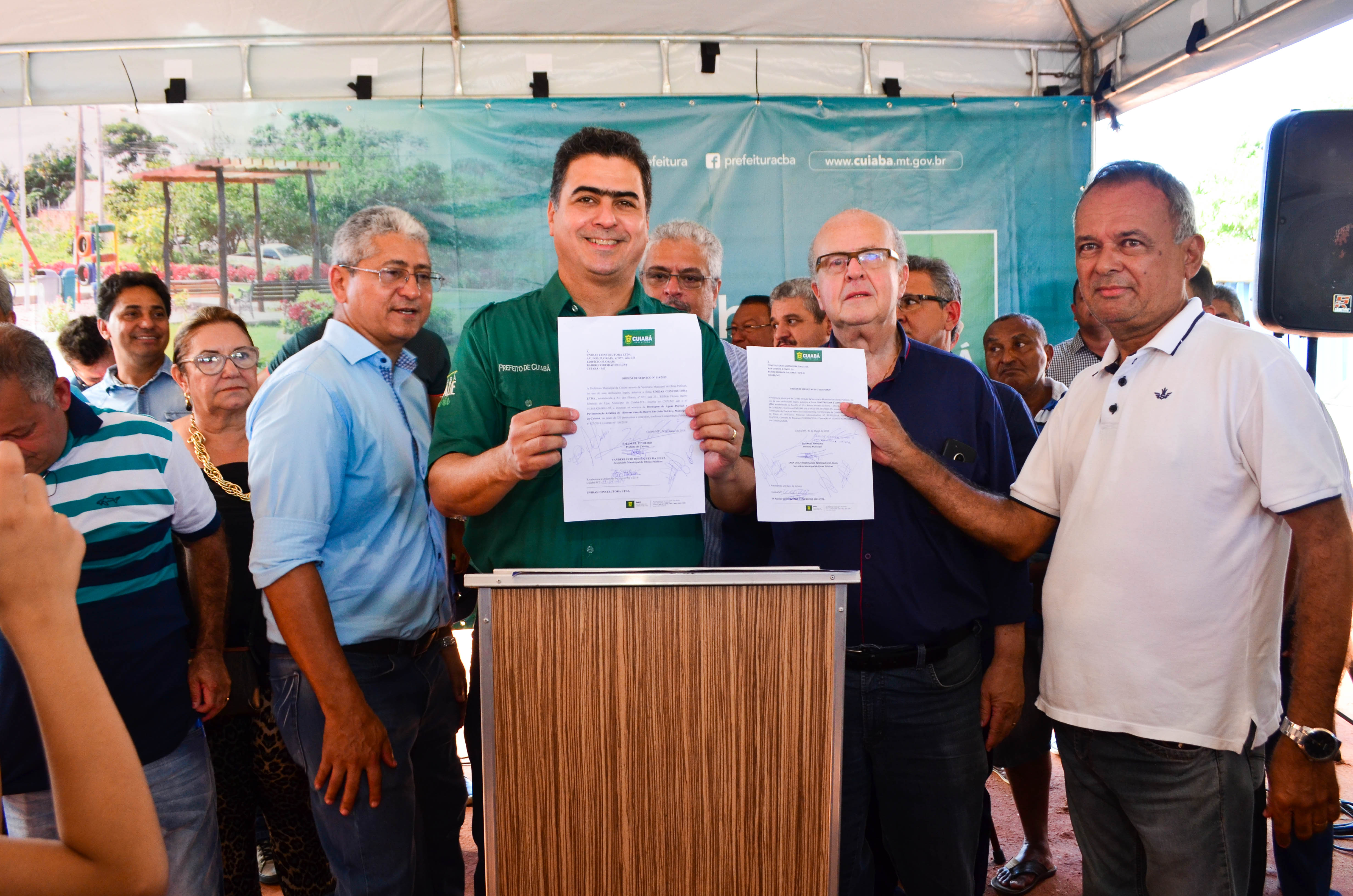 O prefeito de Cuiabá, Emanuel Pinheiro, assinou a ordem de serviço referente a segunda etapa das obras de pavimentação de mais 6,53 km de asfalto e drenagem, além da construção da área de lazer do bairro São João Del Rey.