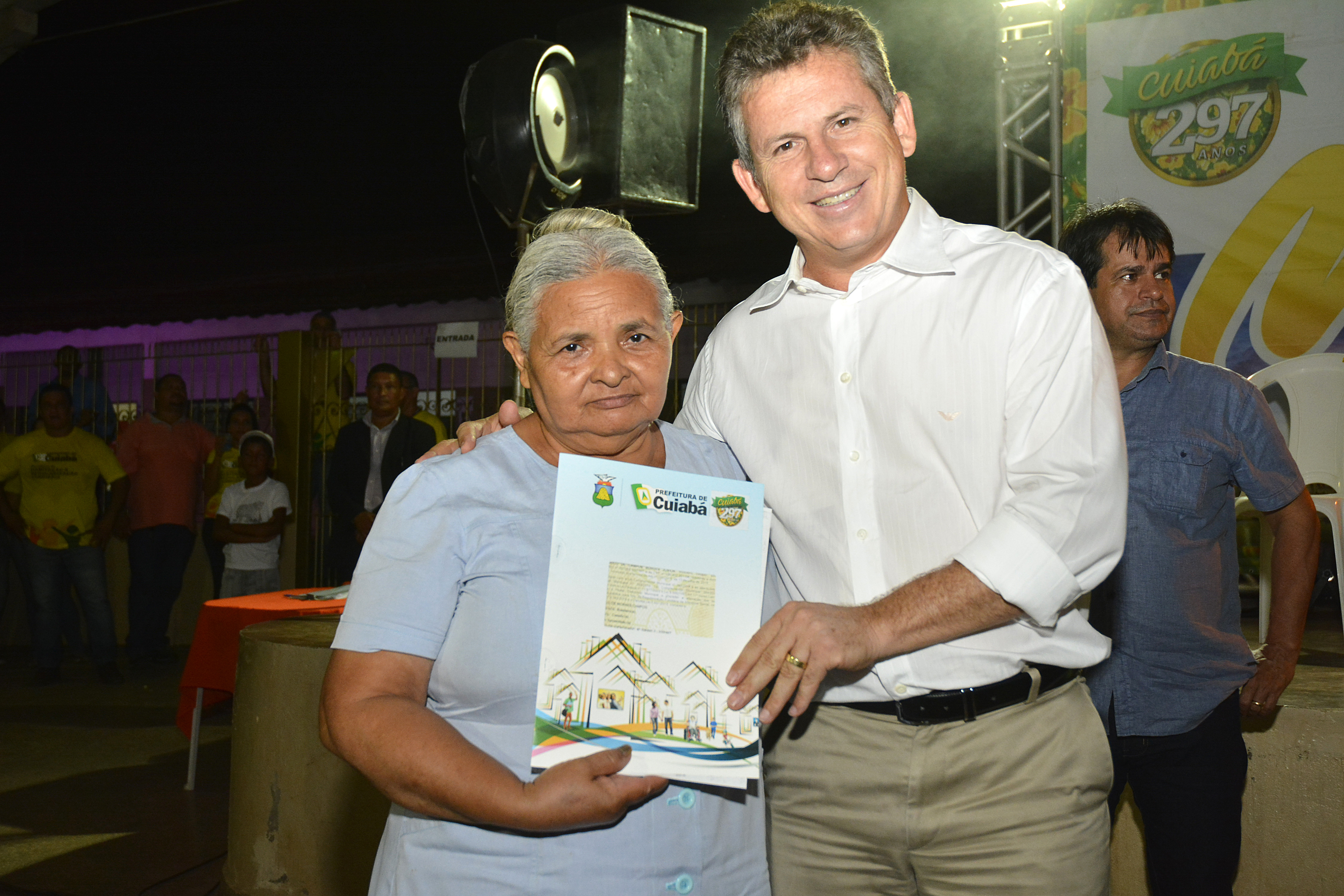 A noite desta quarta-feira (20), foi de comemoração para os moradores do bairro Três Barras, na região Norte da capital. Eles receberam das mãos do prefeito Mauro Mendes, o título definitivo de regularização de seus imóveis. A solenidade aconteceu na Escola Municipal Padre Firmo Rodrigues, e é a segunda de um total de cinco eventos, que acontecerão durante os próximos dias, beneficiando os munícipes de 24 bairros da capital, com a documentação de posse de área.