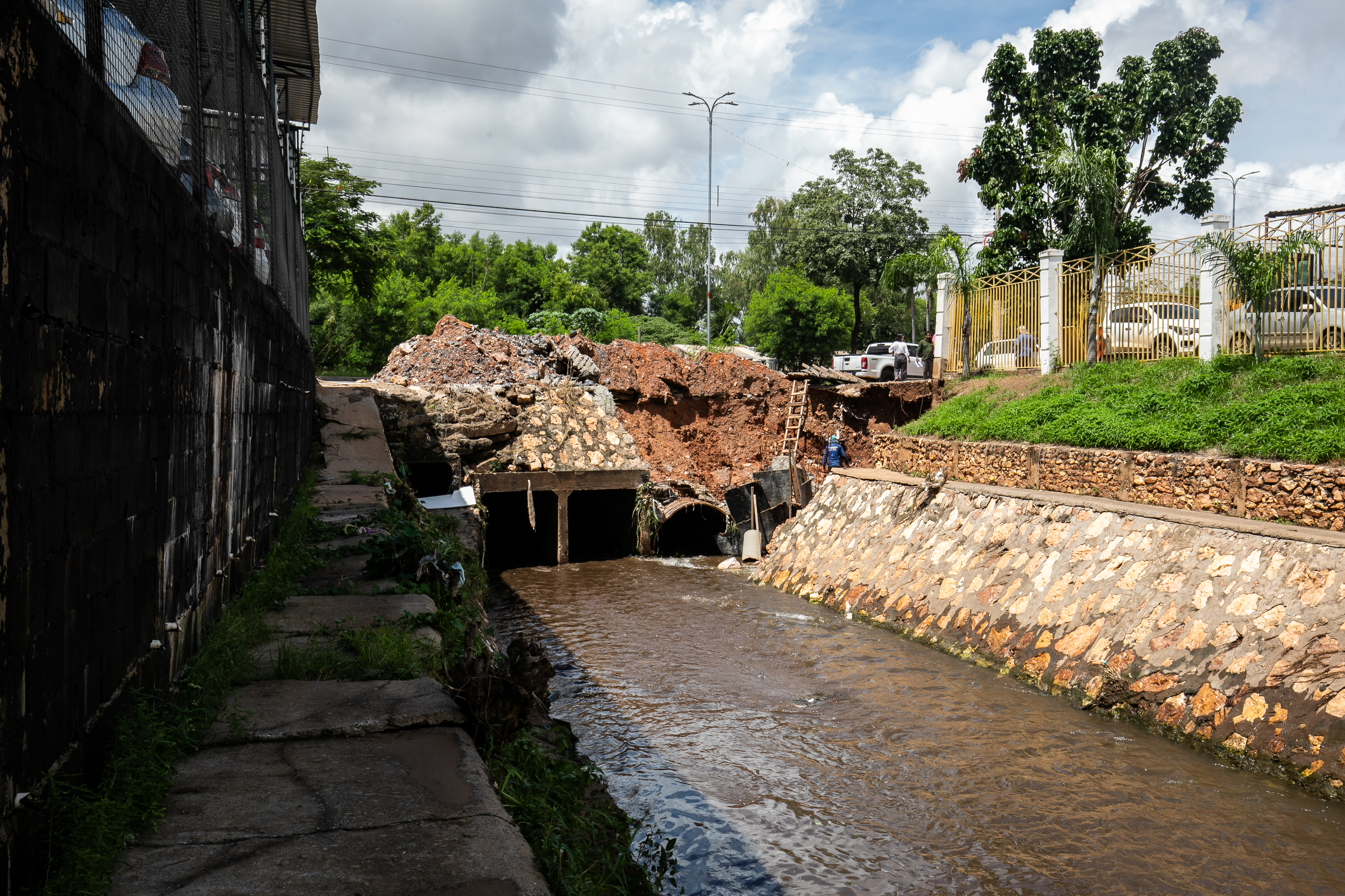 O túnel liner que estava bloqueado no Córrego do Gambá, na Avenida Beira Rio também já foi liberado para passagem da água e a ação continua para confecção da estrutura do muro de arrimo.