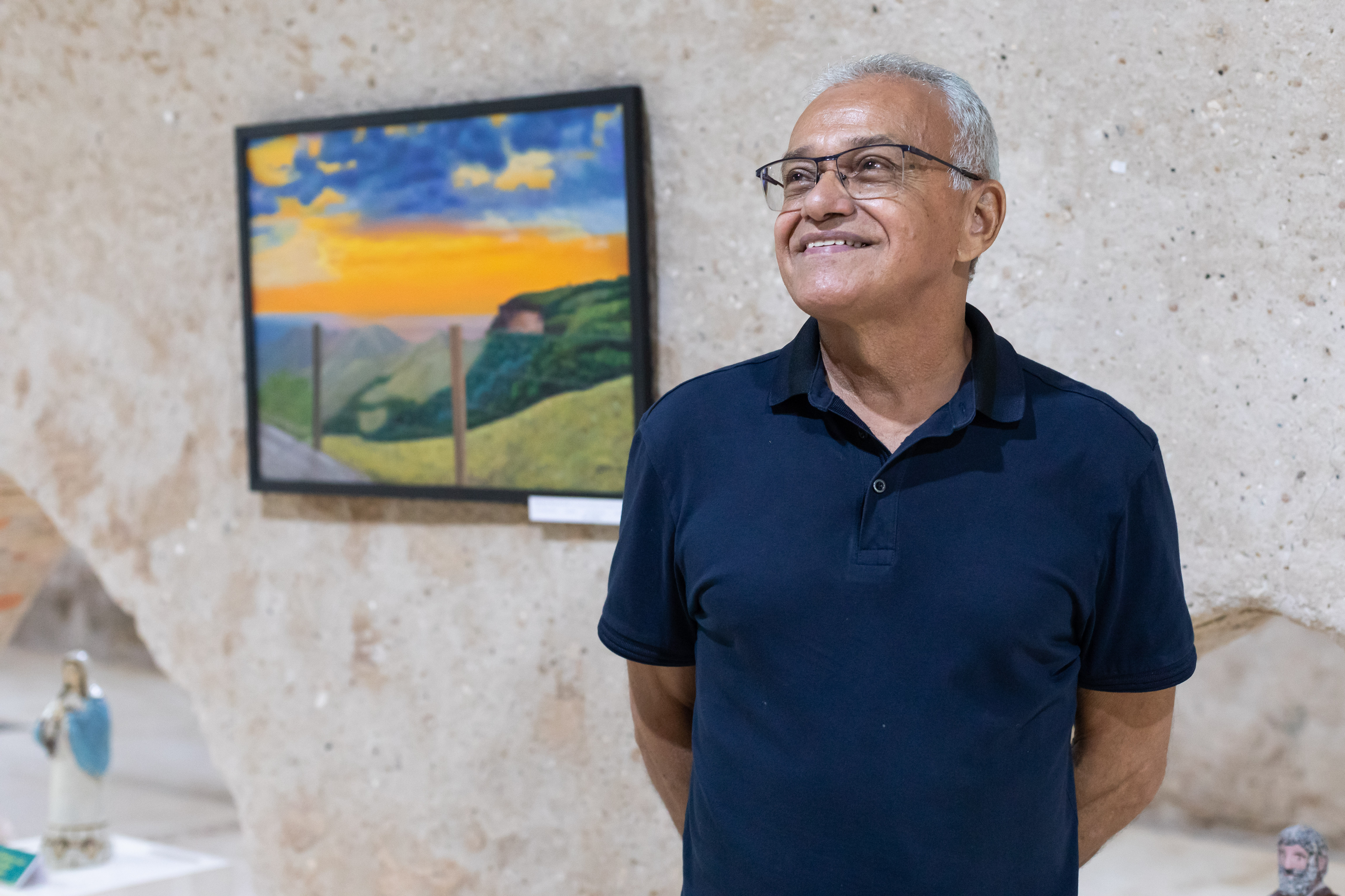 Vieira sempre teve ligação com as artes, mas conciliou a vocação com o trabalho em comunicação visual e letreiros artesanais. A dedicação exclusiva à pintura começou apenas três anos atrás, após a aposentadoria. “Gosto do realismo. A minha pintura ainda não chega a ser totalmente realista, mas caminha nessa vertente, mais acadêmica. Essa é a minha identidade”, explica.