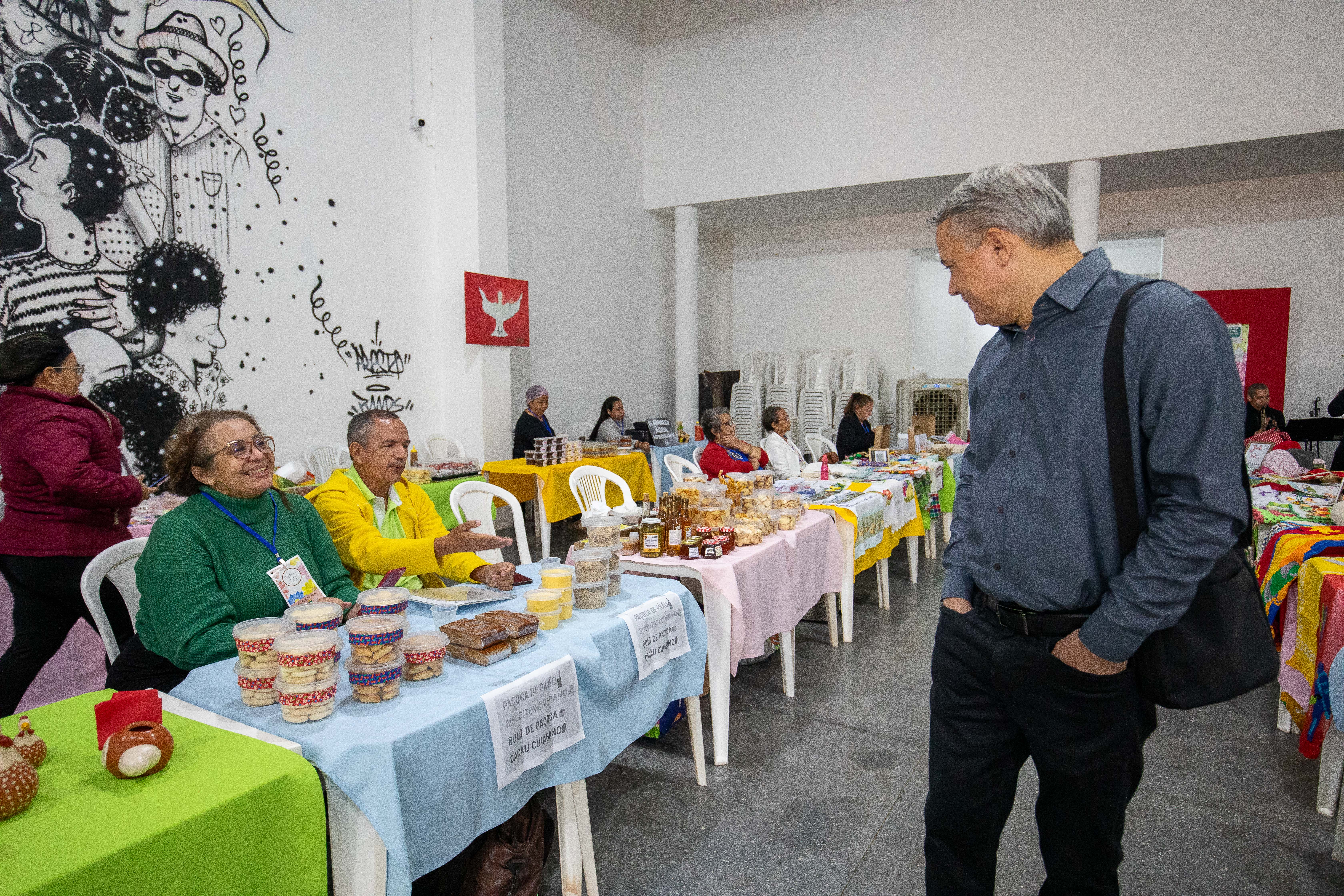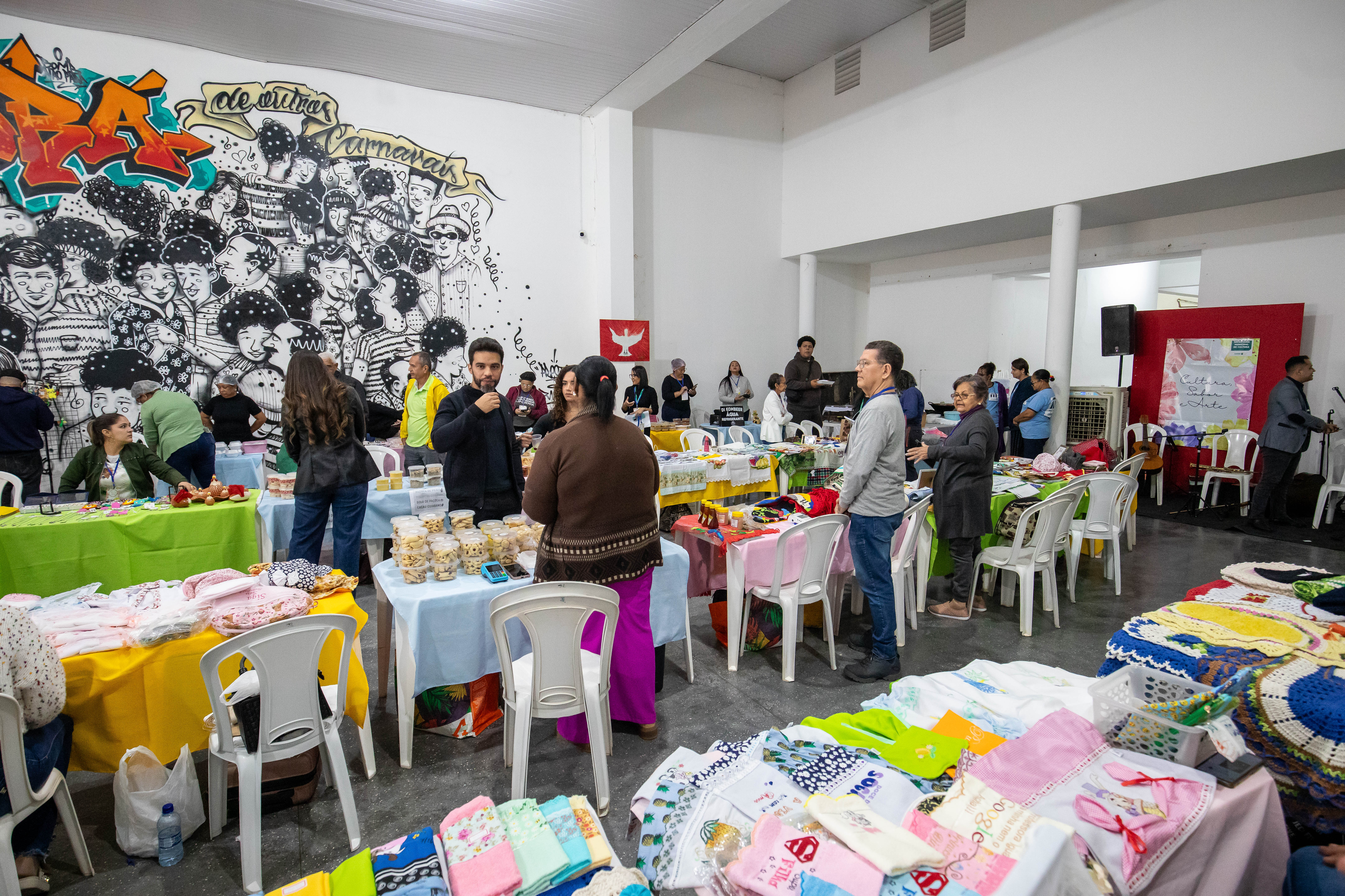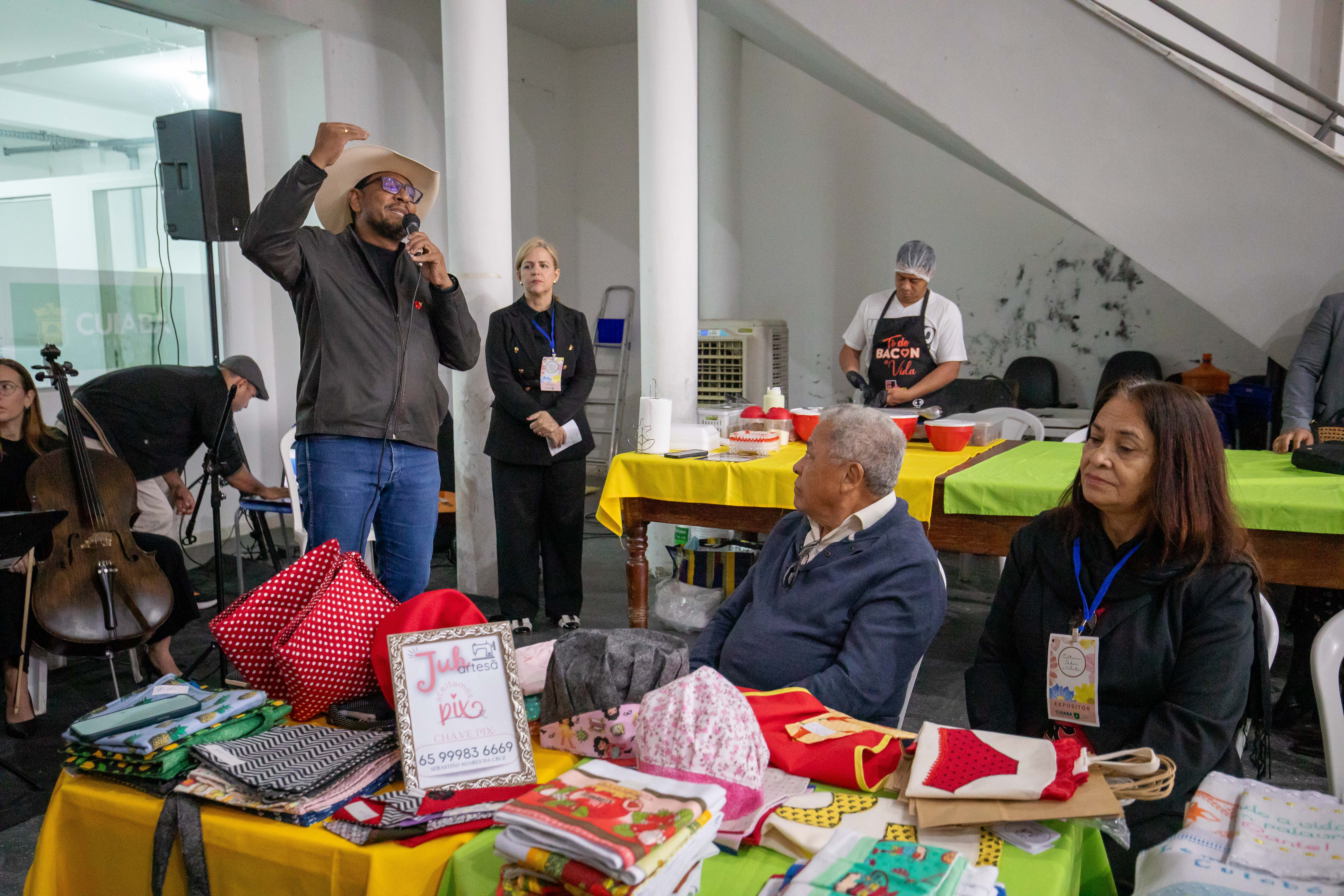 O saguão da Secretaria Municipal de Cultura de Cuiabá, na Rua Barão de Melgaço, recebeu nesta sexta-feira (30) a 1ª edição da Feira Cultura, Sabor e Arte. Com entrada gratuita e programação até as 17h, o espaço se transformou em um polo cultural, reunindo 53 expositores com artesanato, comidas típicas, doces, presentes criativos e atrações musicais ao vivo.