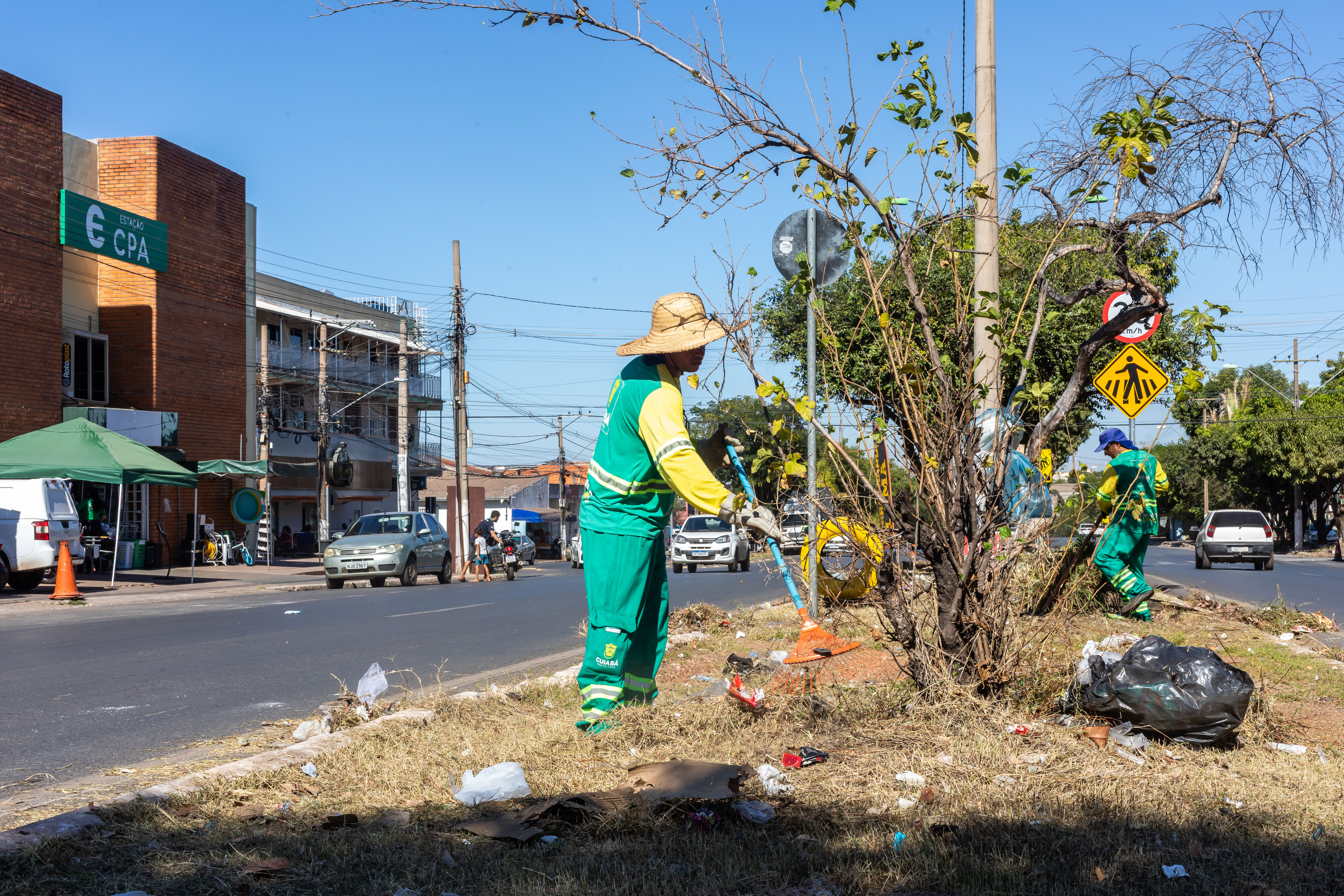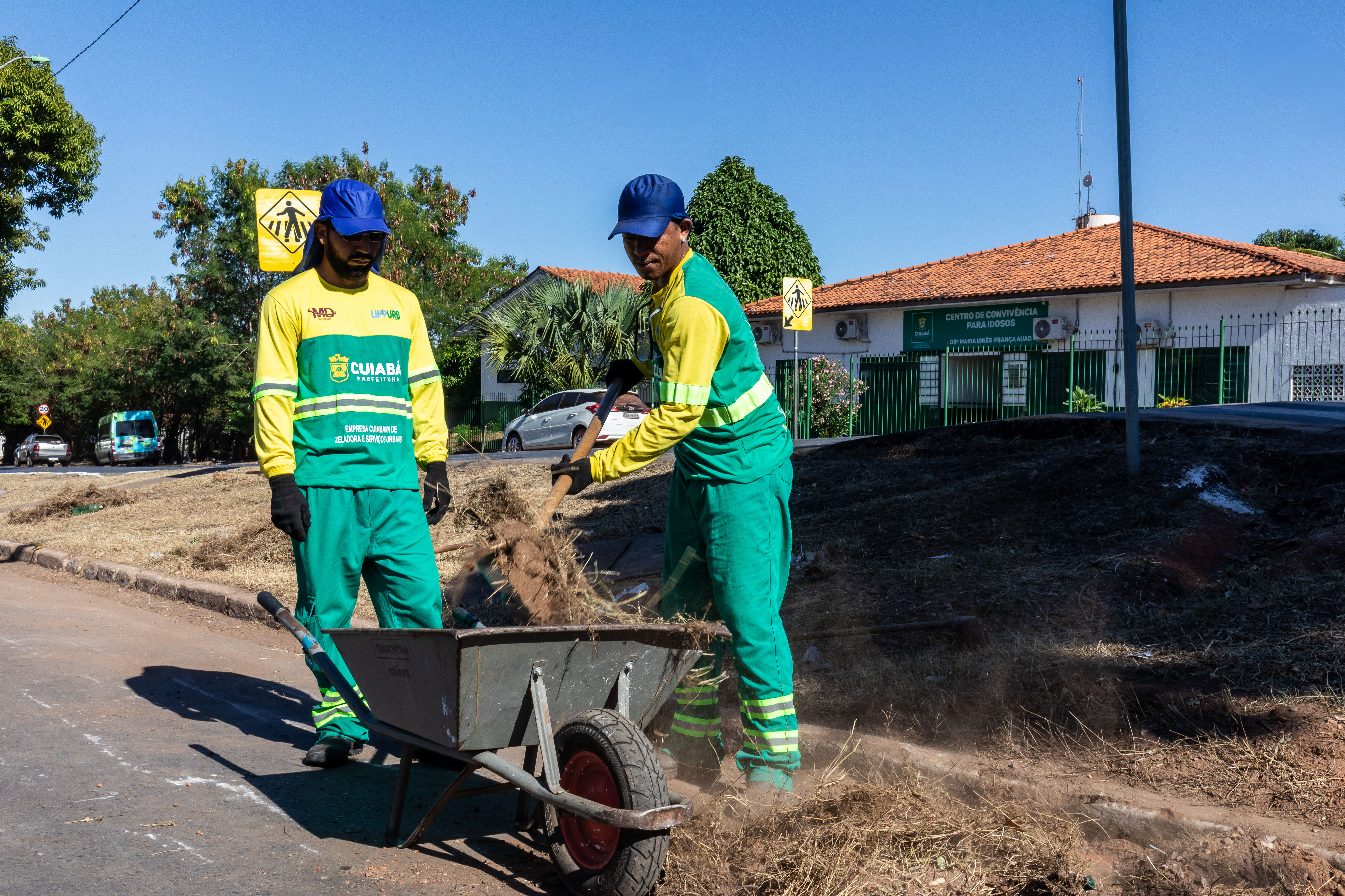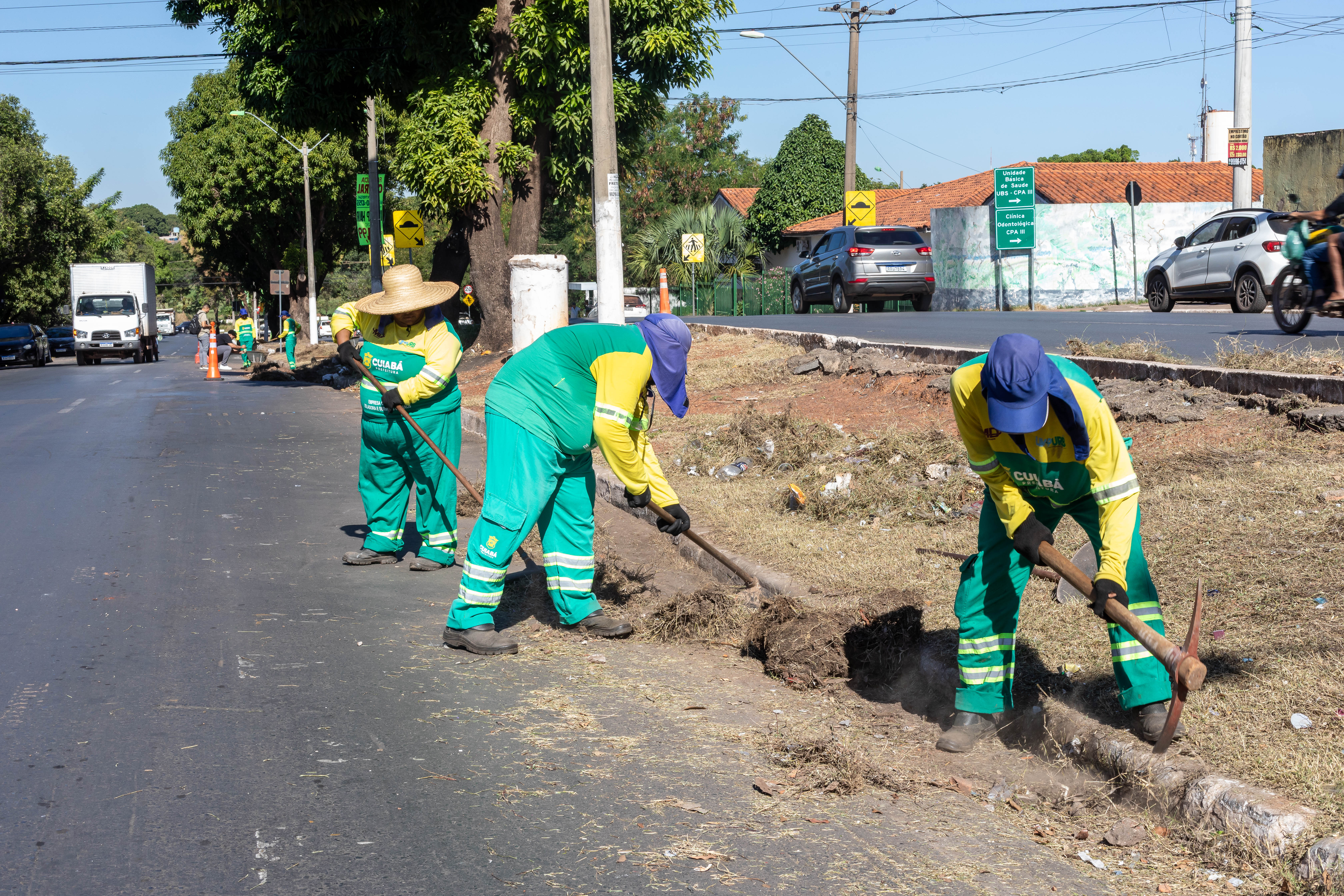 A Prefeitura de Cuiabá, por meio da Empresa Cuiabana de Zeladoria e Serviços Urbanos (Limpurb), segue intensificando as ações de limpeza urbana na capital. Na quarta-feira (18), as equipes atuaram na Avenida Tuiuiú, localizada no bairro CPA IV, com a realização de roçagem, varrição, pintura de meio-fio e manutenção na rede de iluminação pública.