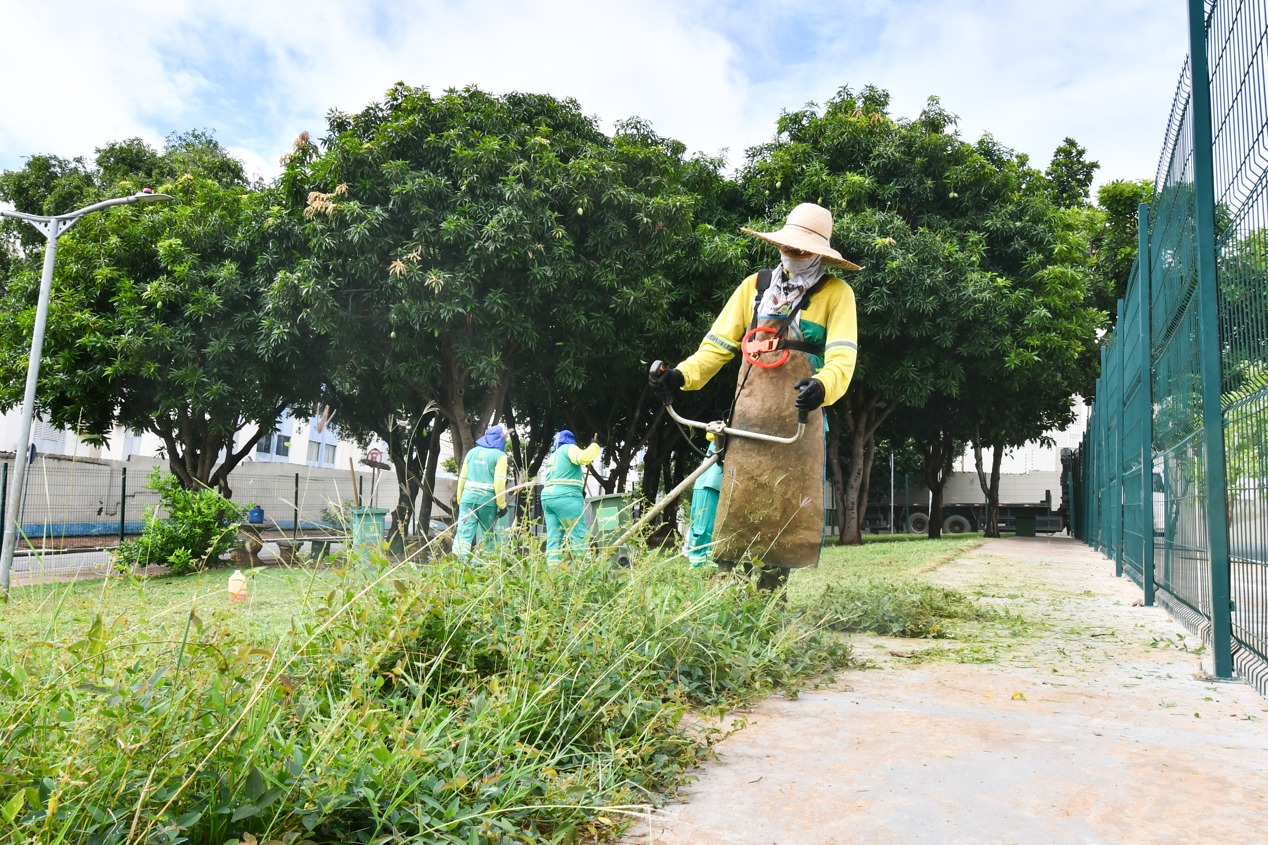 Ao todo 100 profissionais estão mobilizados para a execução dos serviços, que começaram às 7h e seguem até as 16h. Os trabalhadores contam com o apoio de roçadeiras e caminhões-caçamba para agilizar o transporte dos materiais recolhidos.