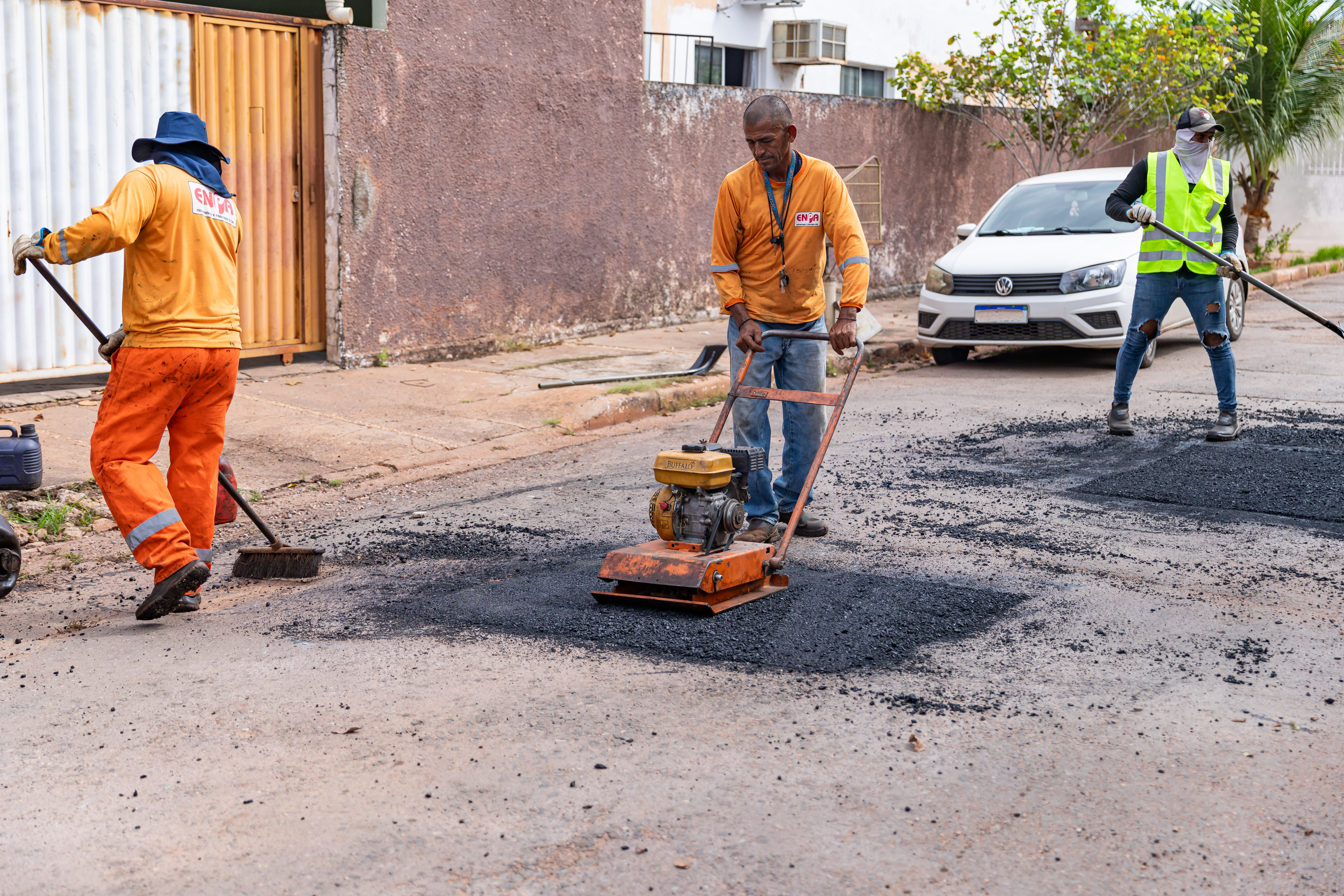 A Prefeitura de Cuiabá, por meio da Secretaria Municipal de Obras Públicas, segue intensificando as ações de recuperação viária em diversos bairros da capital. Neste sábado (10), o secretário Reginaldo Teixeira esteve na região da Morada do Ouro para fiscalizar de perto o mutirão tapa-buraco que desde quinta-feira (8) vem atendendo os bairros CPA I, II, III e IV, além da Morada do Ouro I e II.
