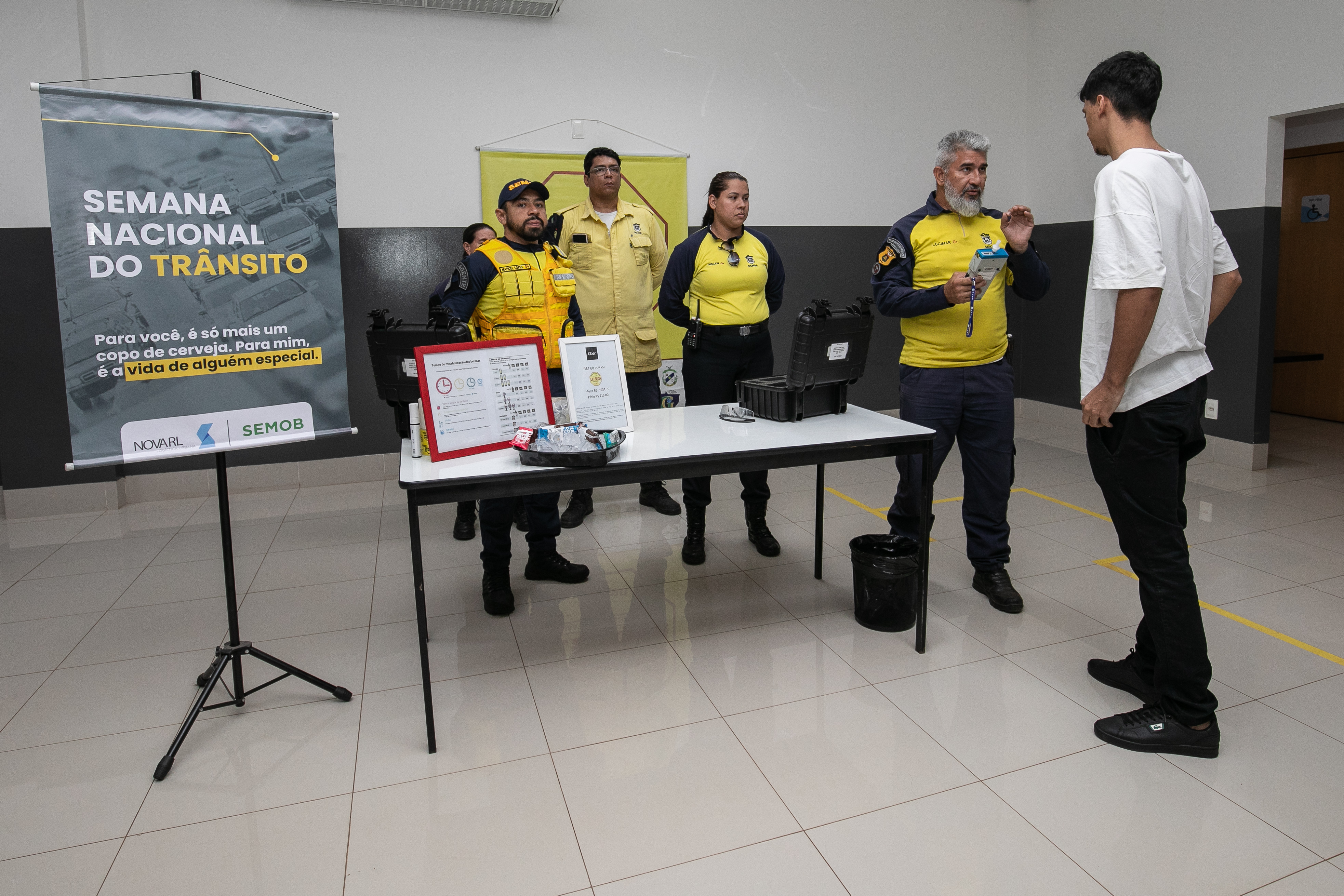 Na Semana Nacional do Trânsito, agentes da Semob realizam ações orientativas e explicam o funcionamento do bafômetro