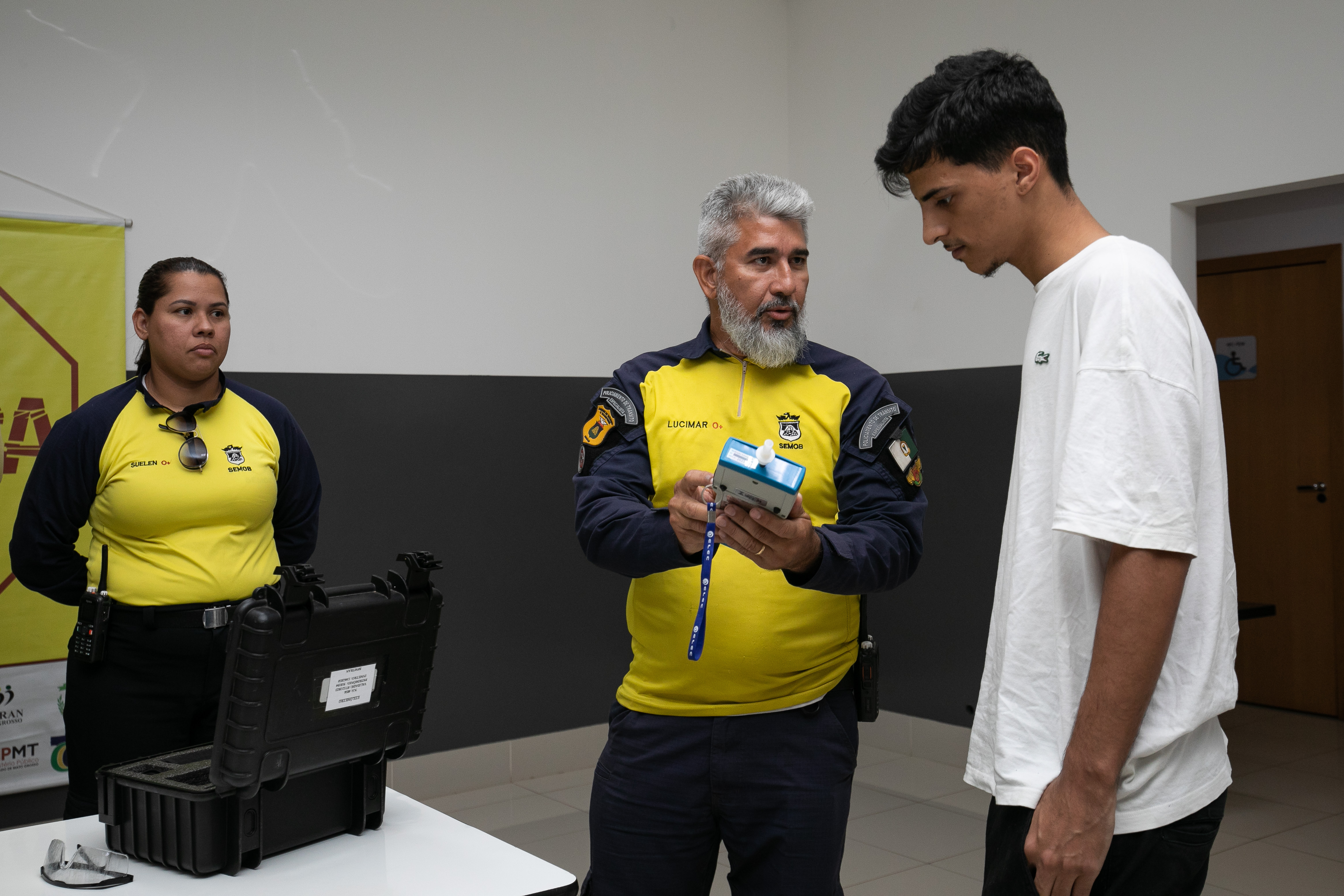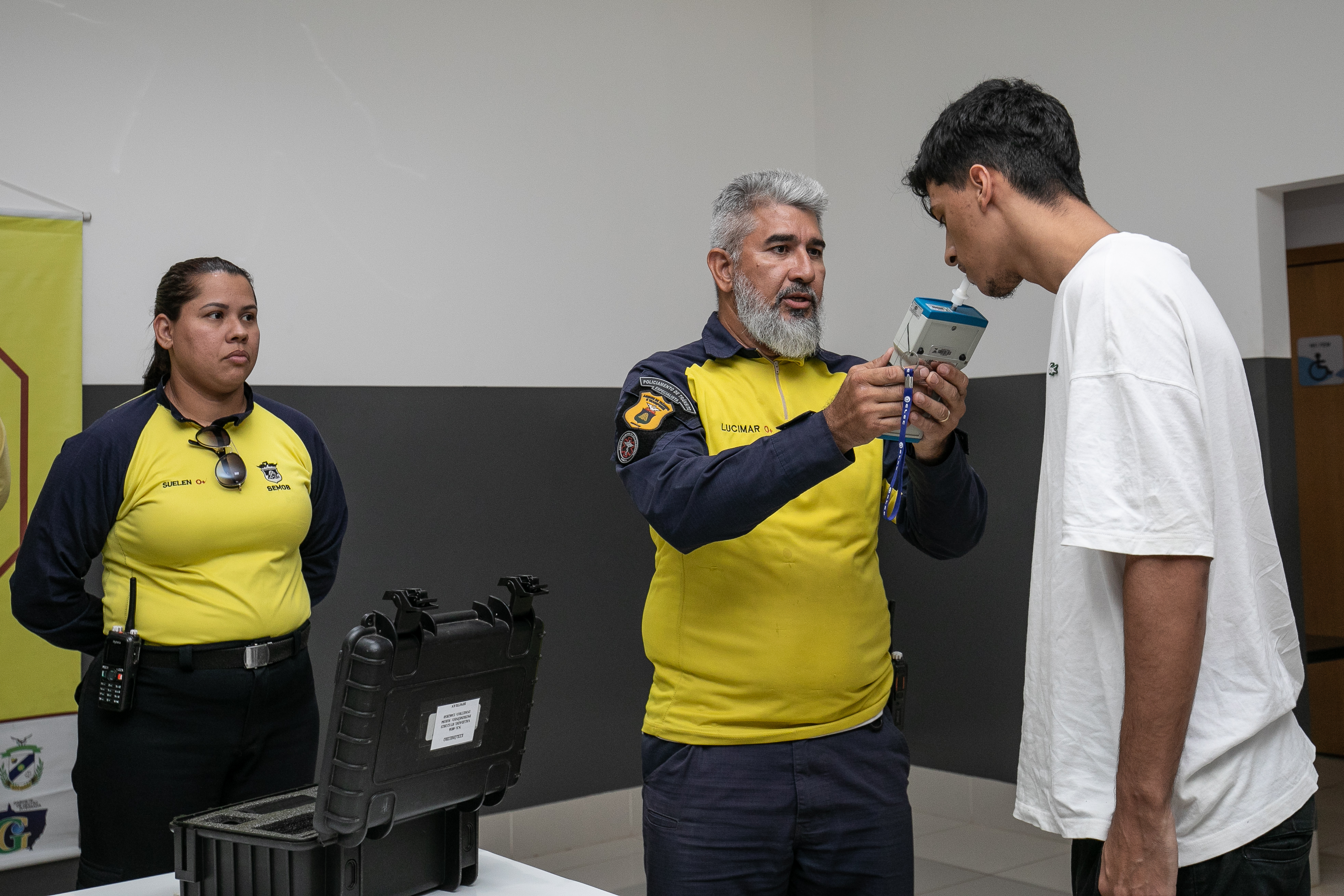 "A ação consiste na apresentação aos condutores e as pessoas que estão circulando no pátio, sobre os riscos que o álcool e direção traz, as consequências de ser flagrado pela fiscalização, o valor da autuação, esclarecer os aspectos legais da fiscalização, ofertar o teste de etilômetro, que muitas pessoas têm o receio e que nunca fizeram o teste de etilômetro. Tiramos aquelas crendices que um bombom pode alterar o teste. Demonstramos toda a efetividade da fiscalização. Como é um assunto que gera muita dúvida, principalmente relacionado ao que o teste detecta, e muitos condutores nunca efetuaram nenhum teste na vida, oportunizar para eles, realizar o teste fora do ambiente de fiscalização, fora da via de circulação, ele tira o receio de efetuar esse teste", explicou o agente de Trânsito, Marcel Lopes.
