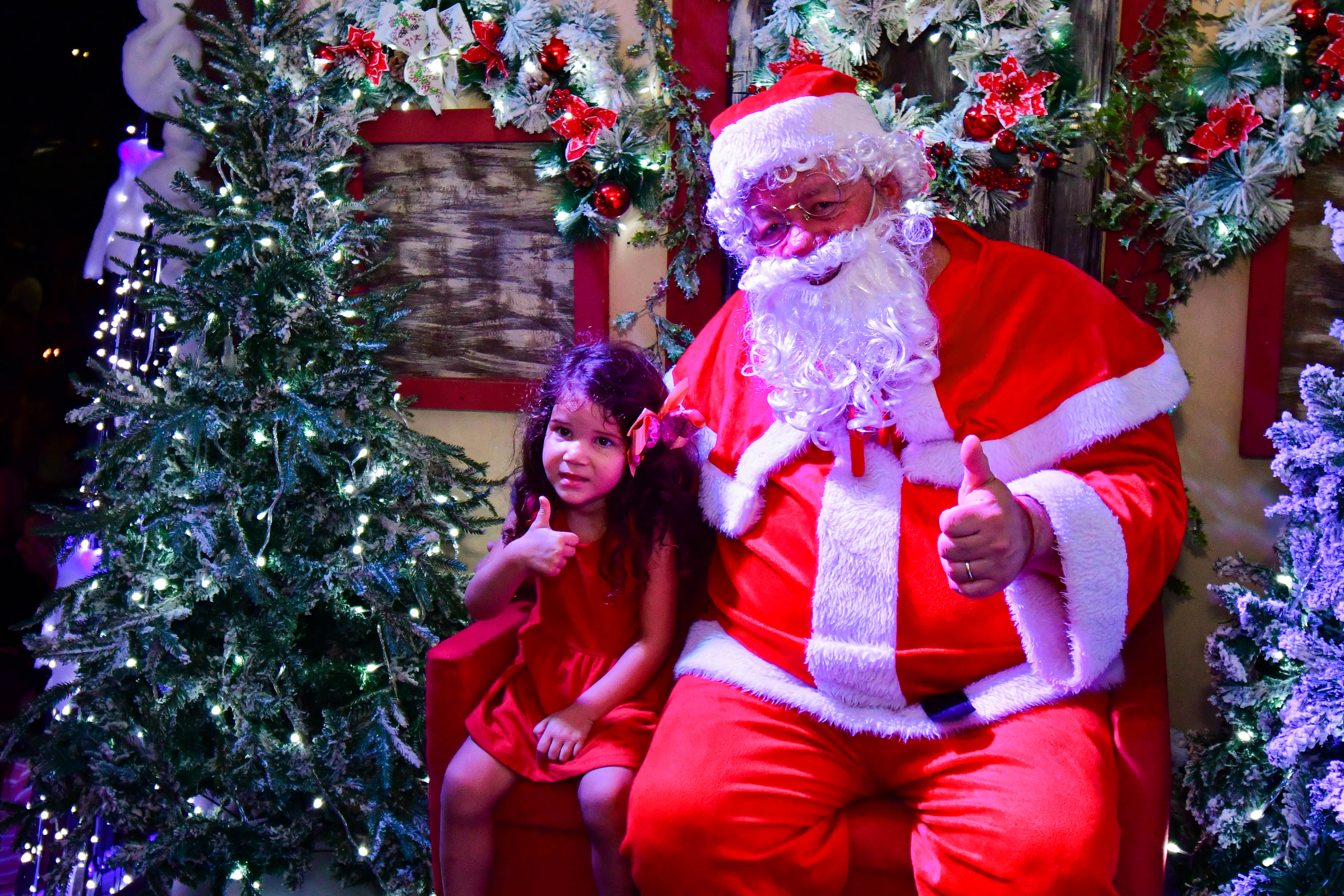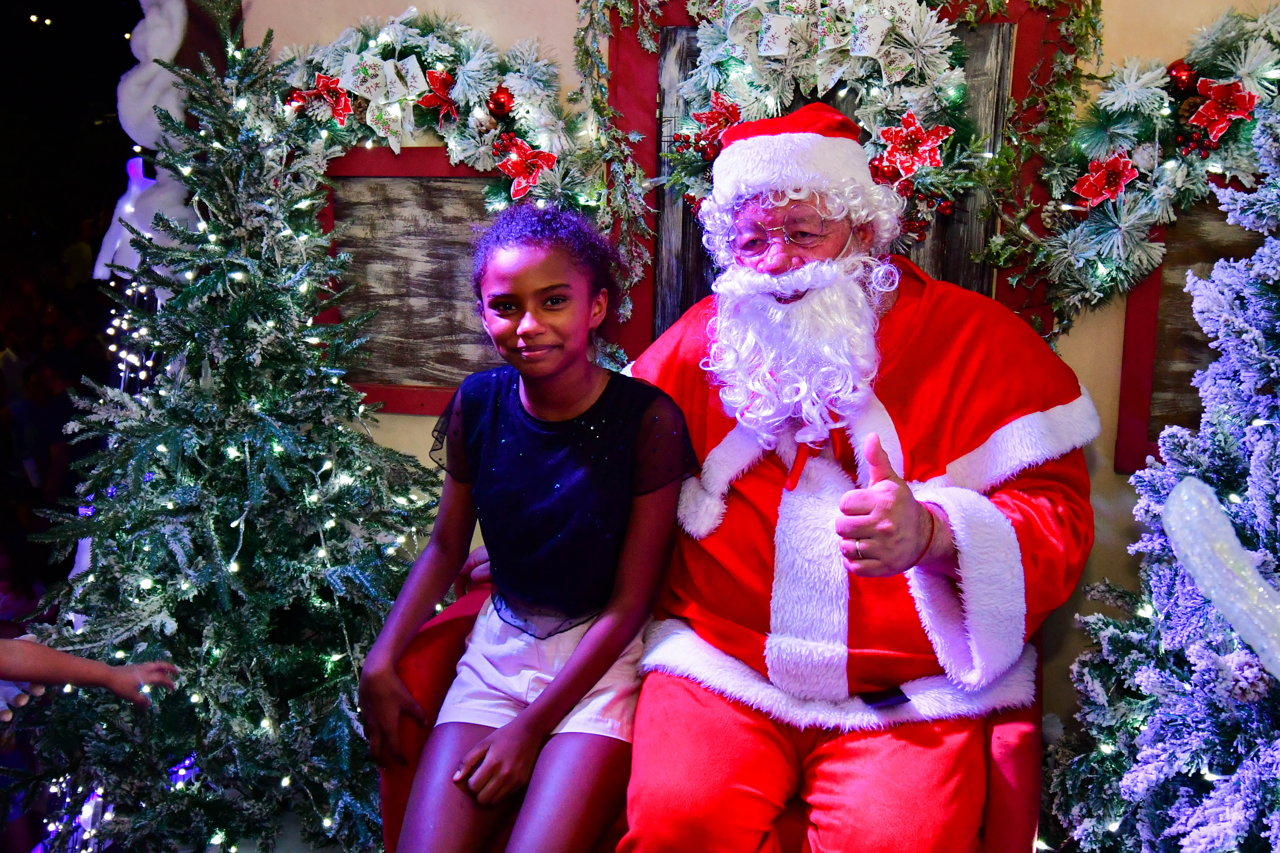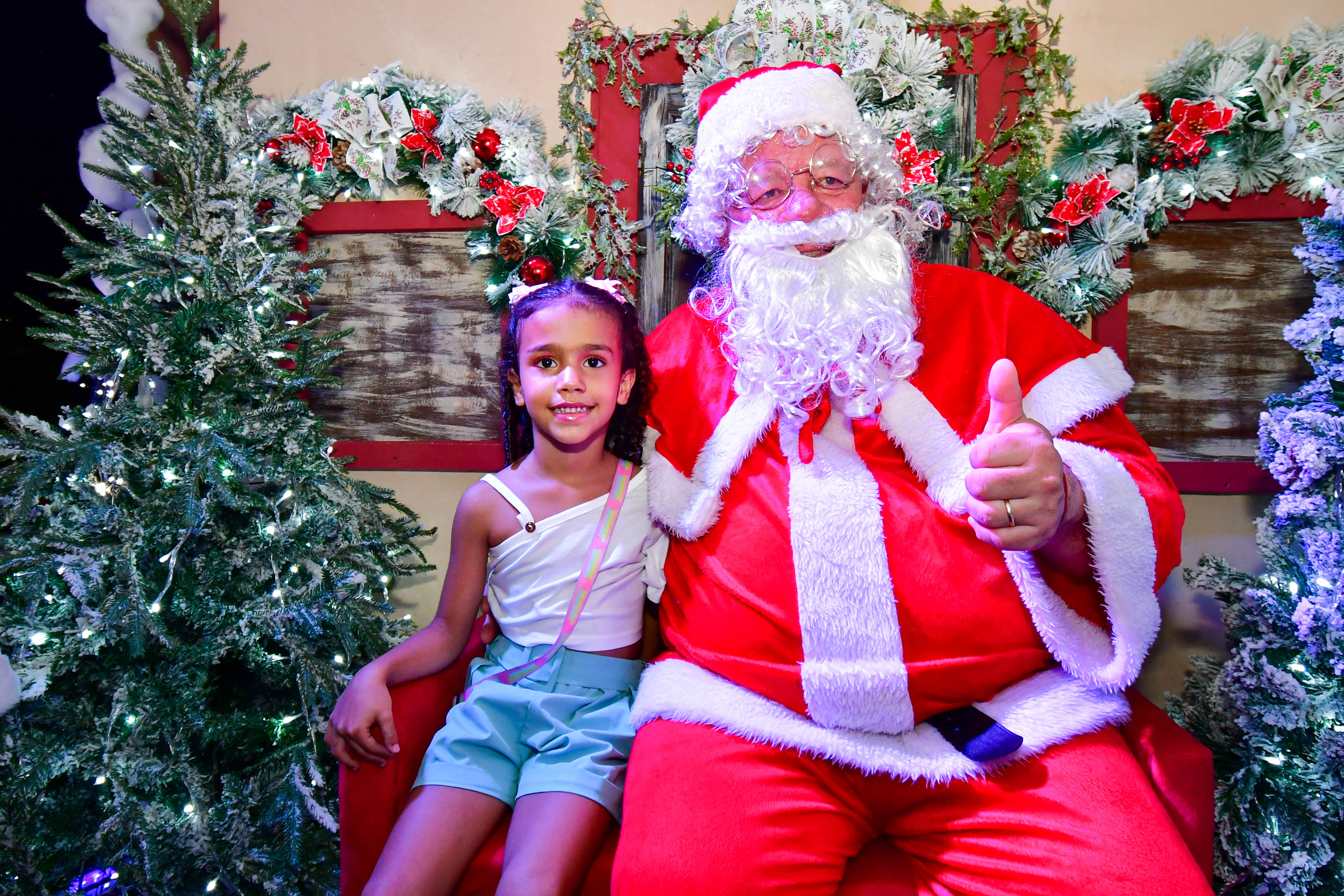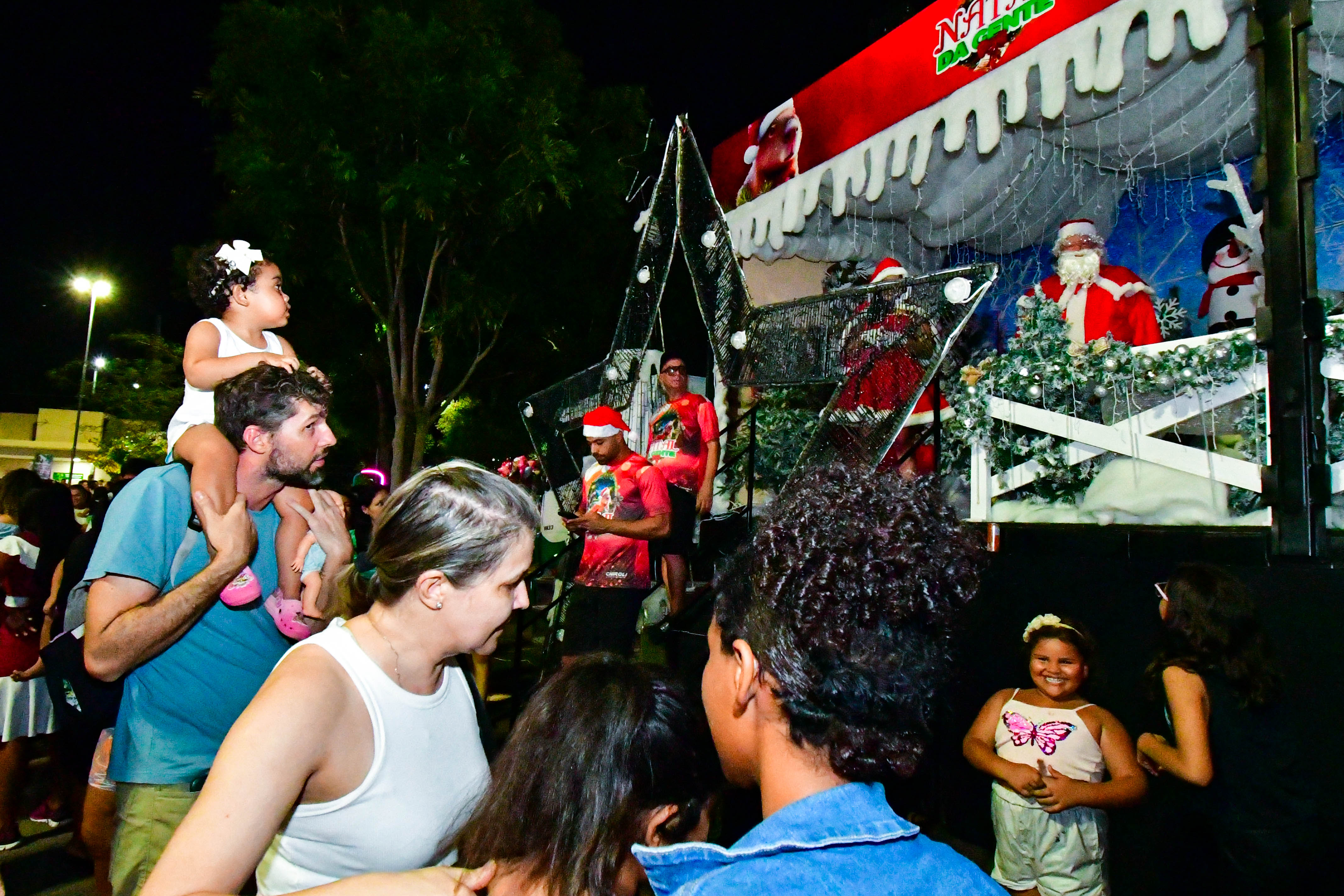 Na noite de domingo, as crianças puderam tirar foto com o bom velhinho e se encantar com a carreta de luz, que mede 15 metros carregando cerca de três toneladas de sonhos personificados em figuras natalinas.