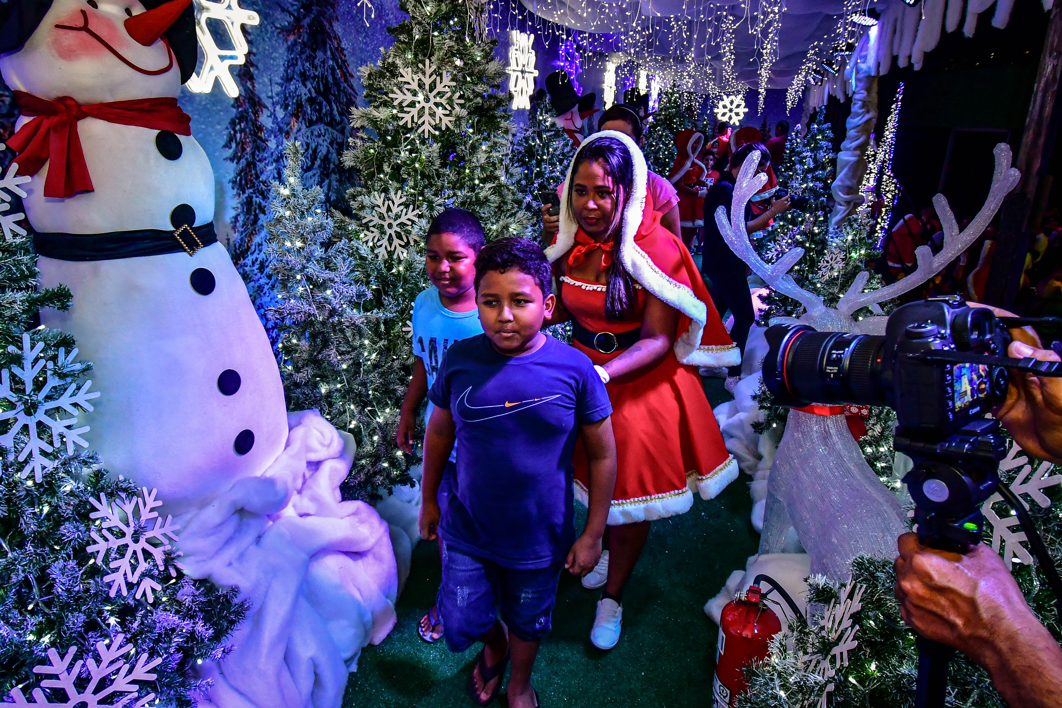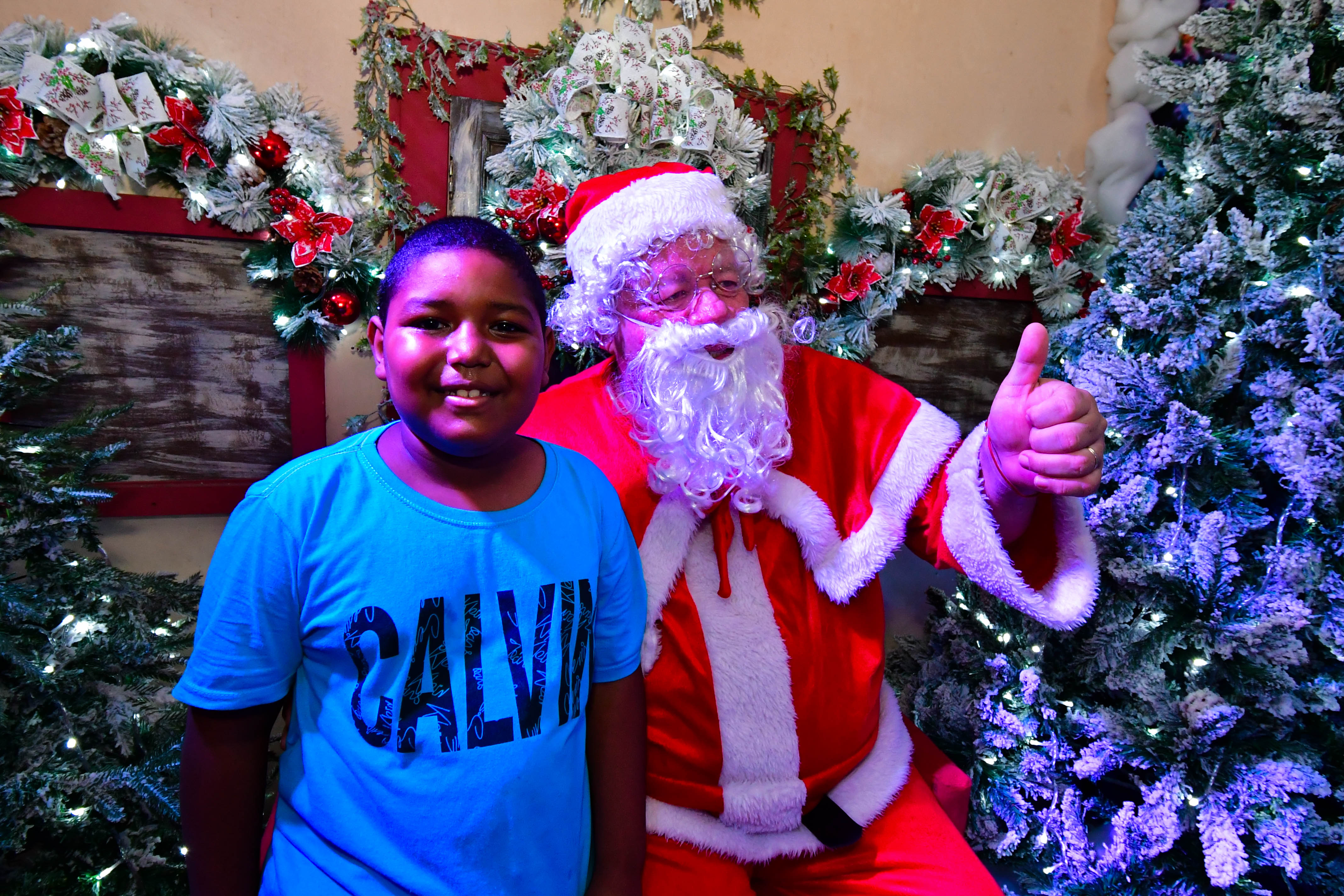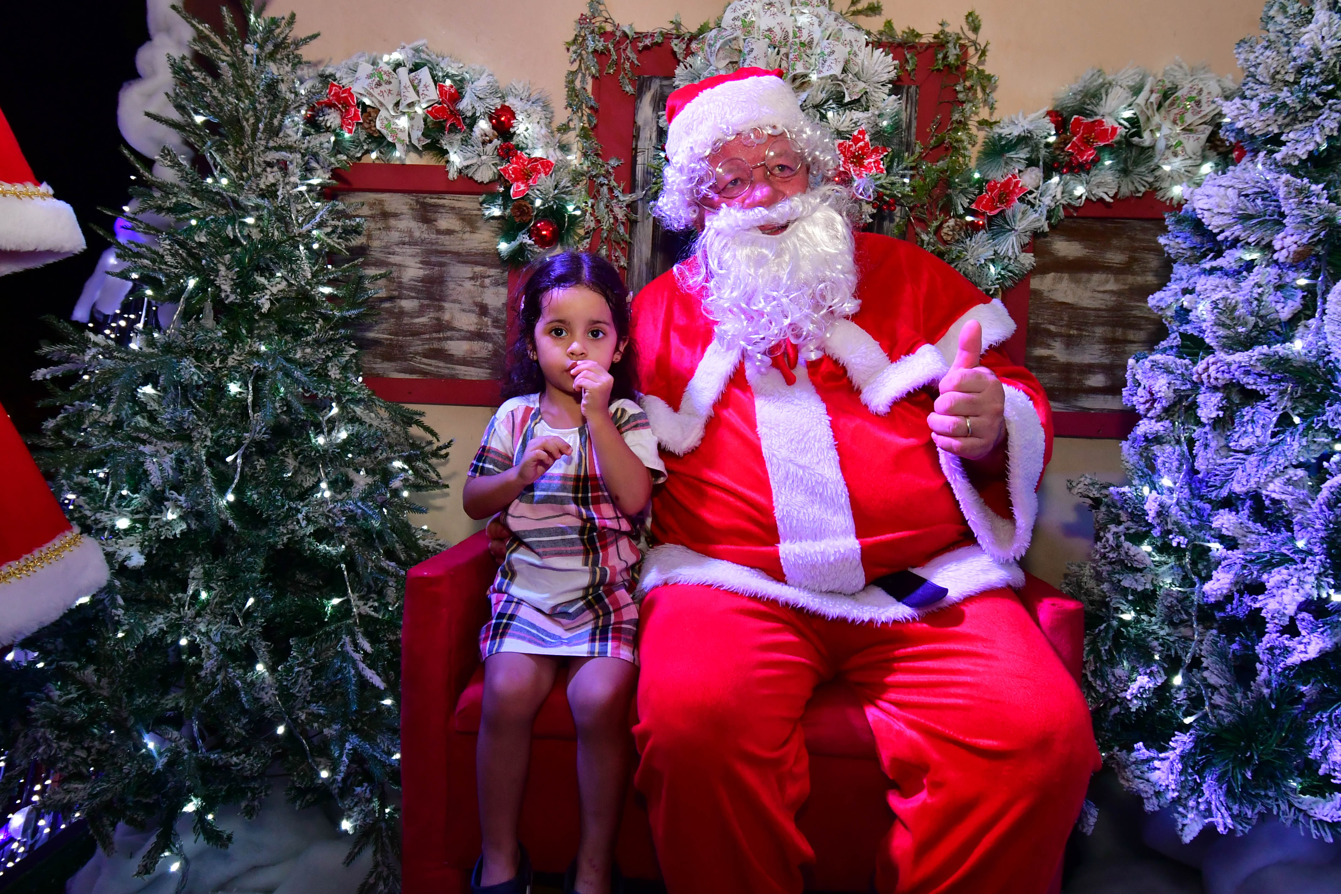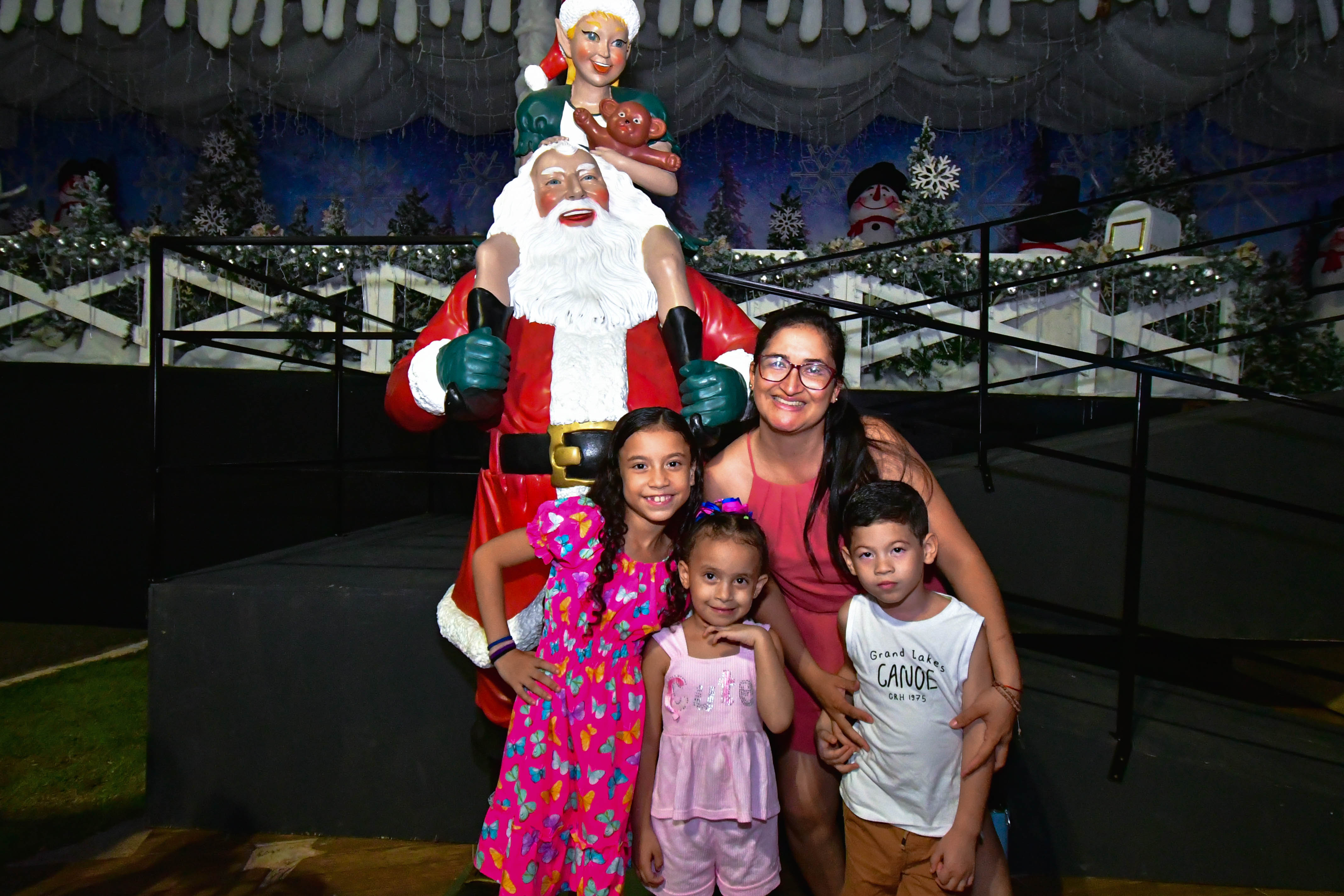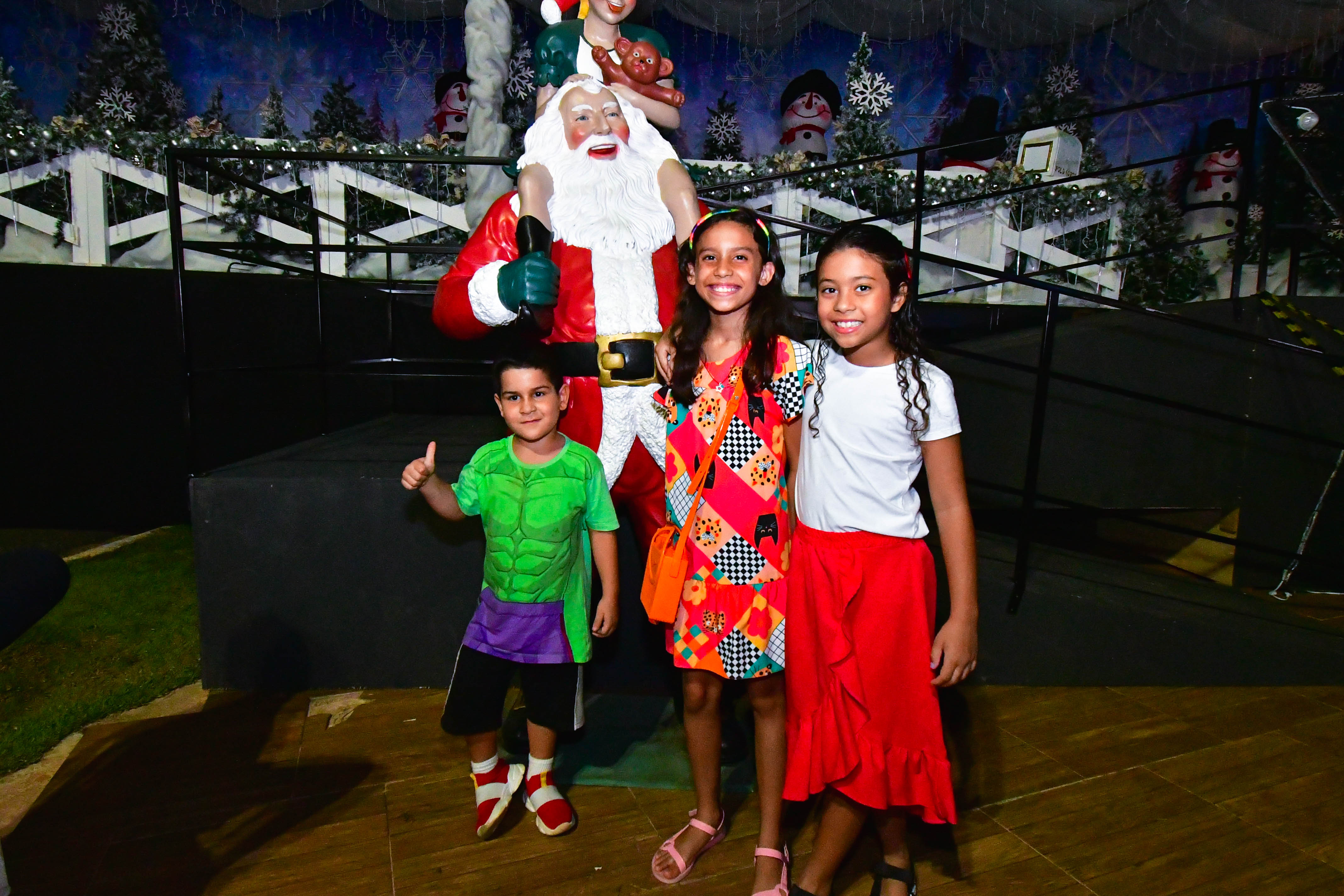 Na noite de domingo, as crianças puderam tirar foto com o bom velhinho e se encantar com a carreta de luz, que mede 15 metros carregando cerca de três toneladas de sonhos personificados em figuras natalinas.