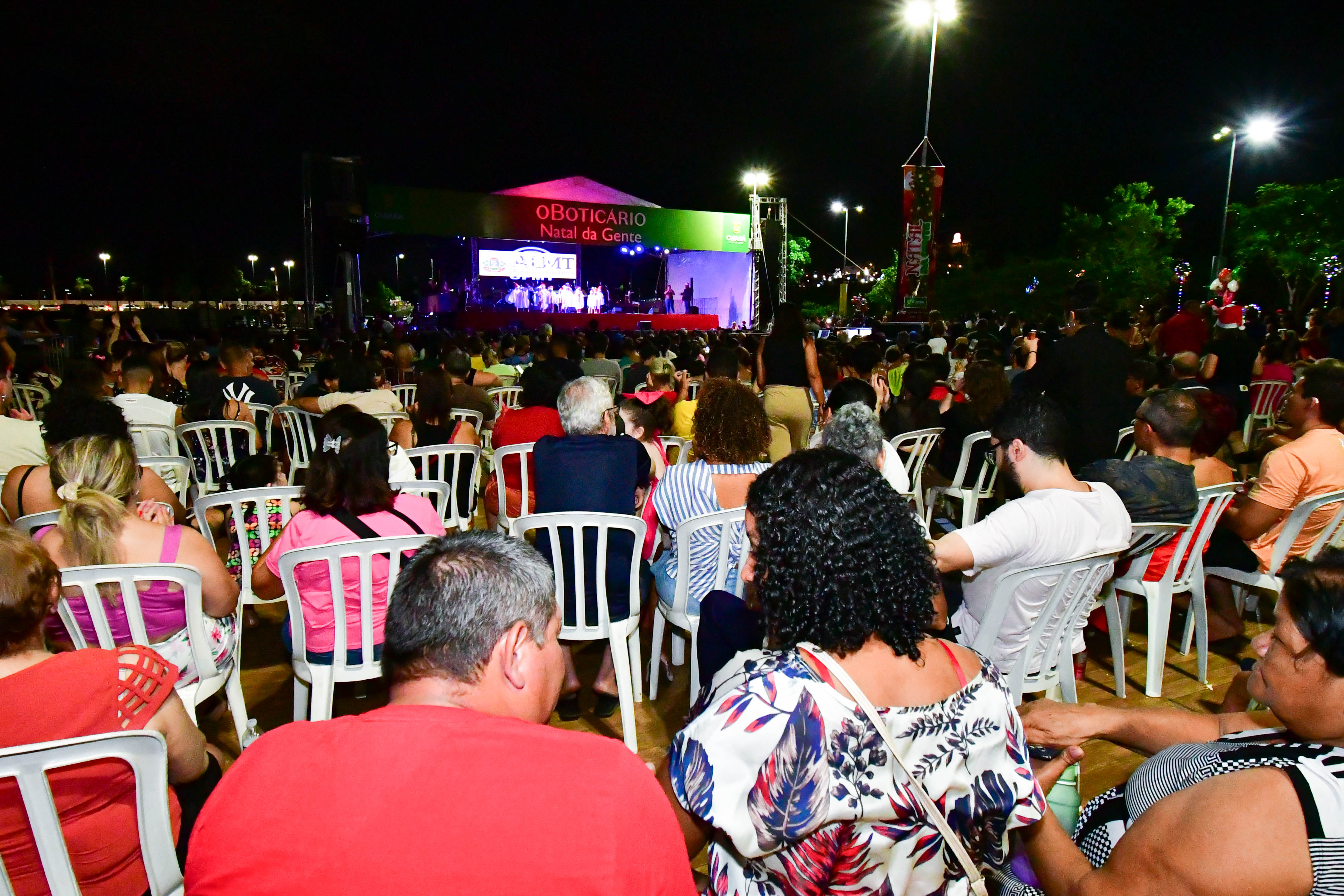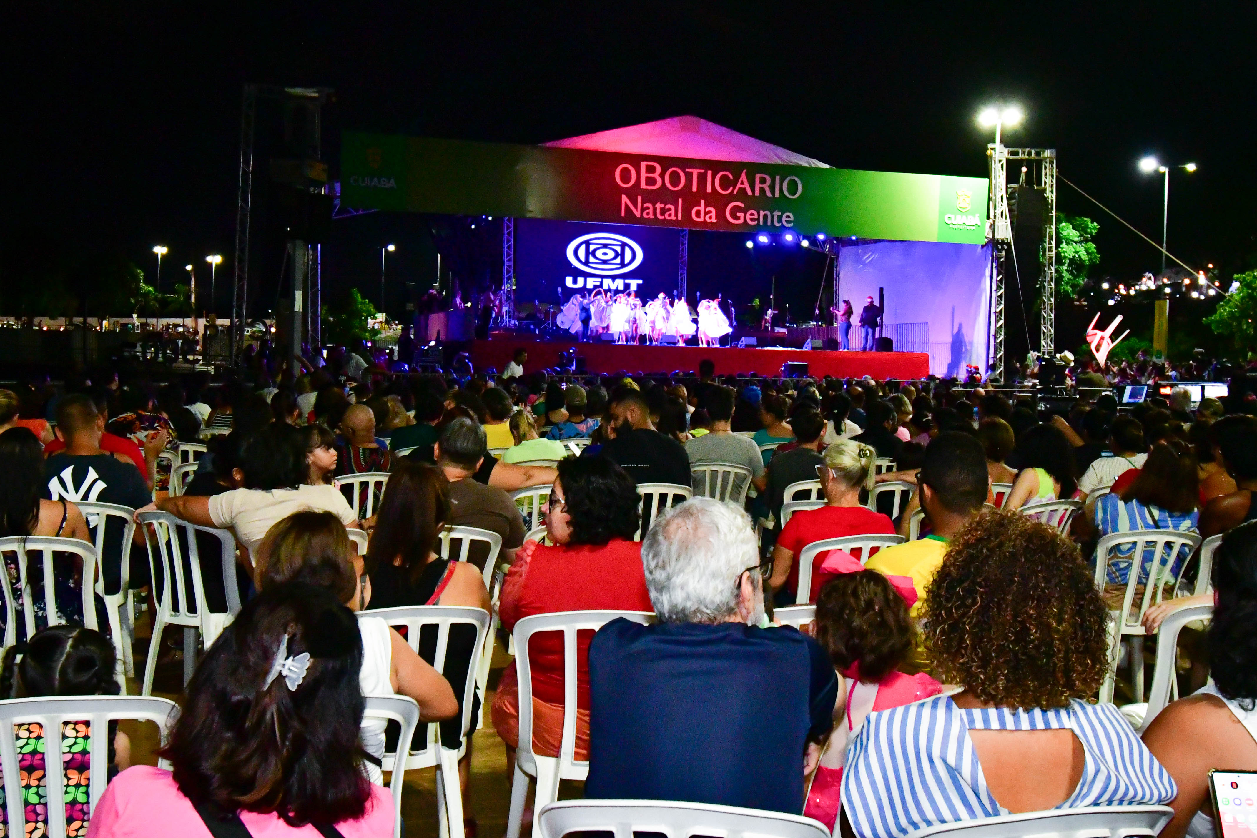 A magia do Natal encantou mais de oito mil pessoas no lançamento do ‘Natal da Gente 2023’, na noite deste domingo (10). A iniciativa da Prefeitura de Cuiabá, por meio da Secretaria Municipal de Cultura, Esporte e Lazer, levou para o Parque das Águas apresentações dos Corais da Universidade Federal de Mato Grosso – UFMT e do programa Siminina que promoveram emoção e reflexões para o público com um lindo repertório.