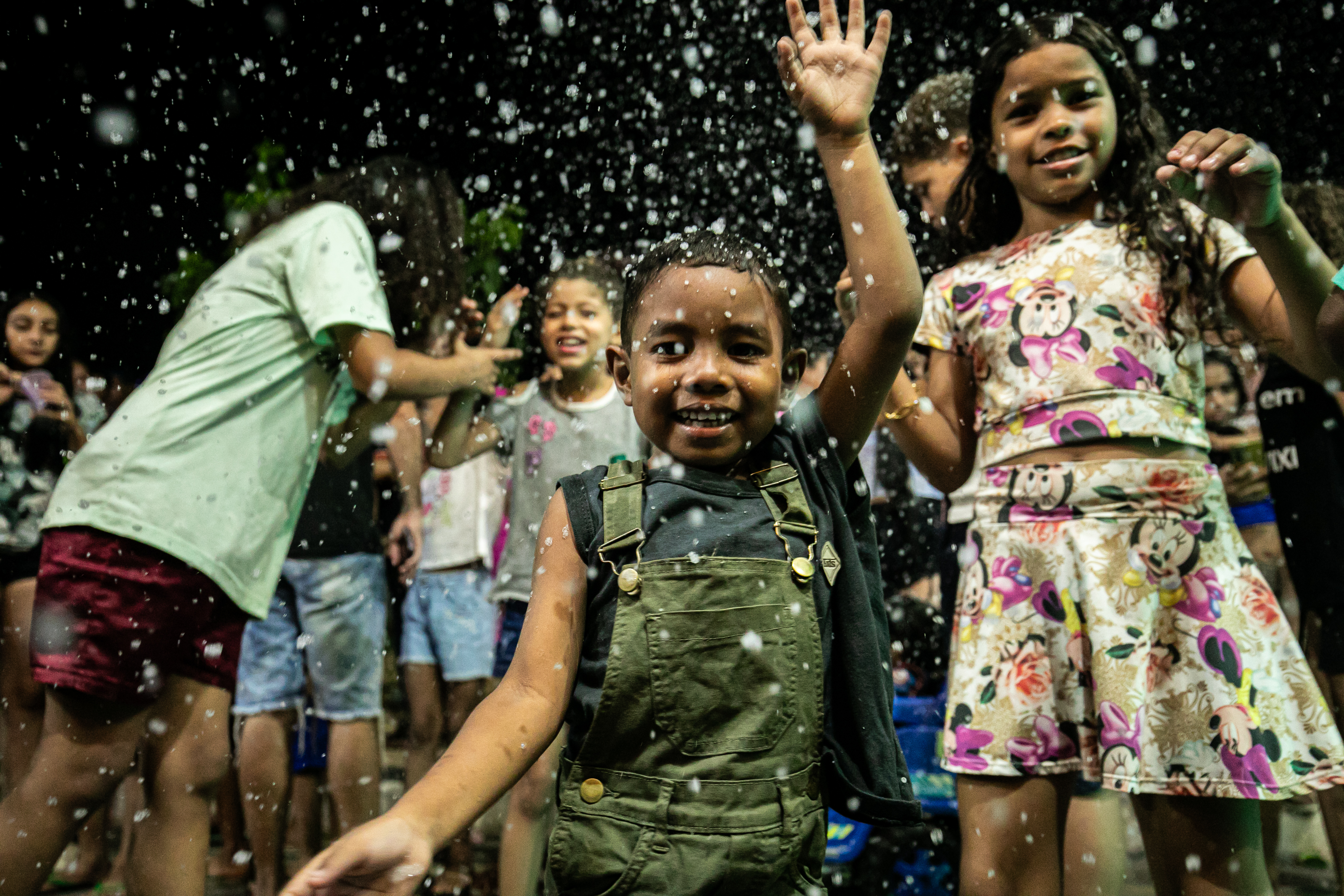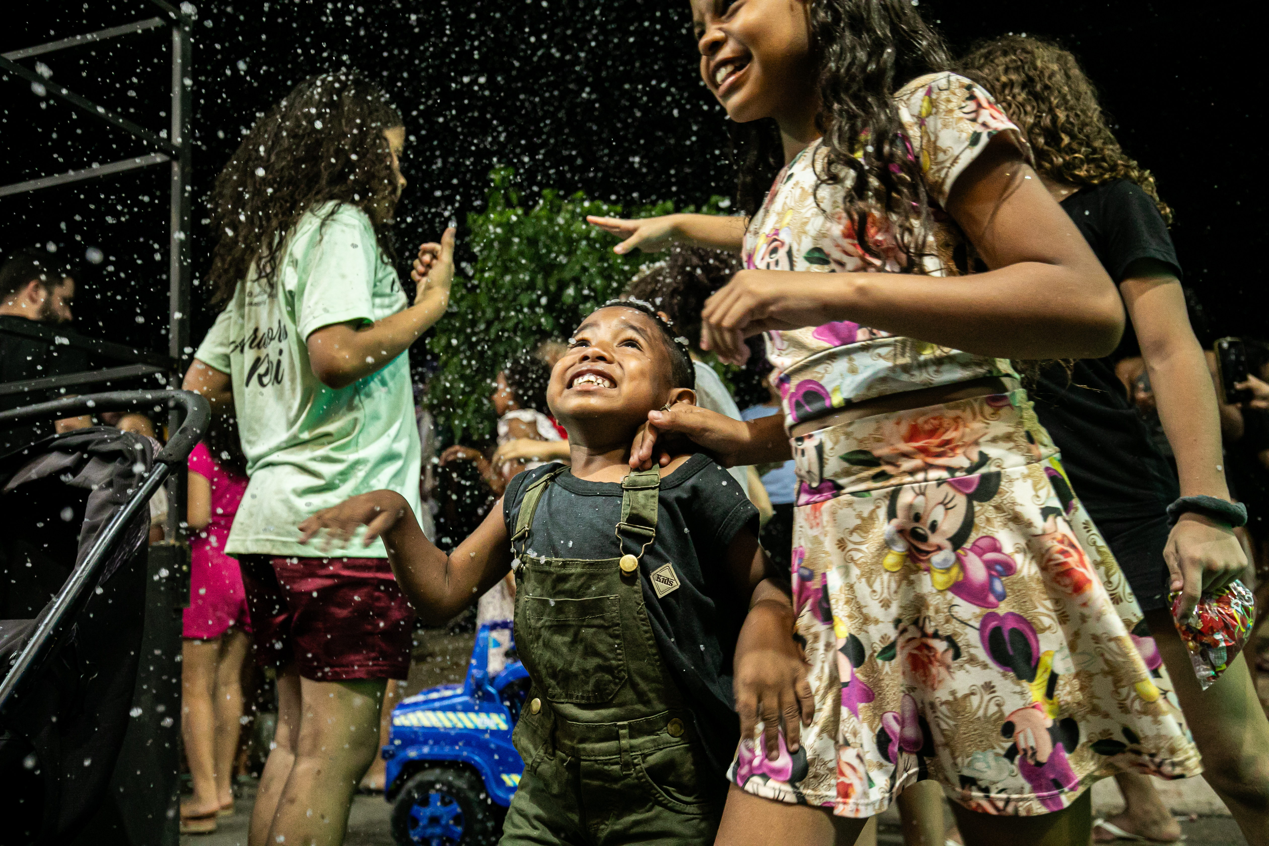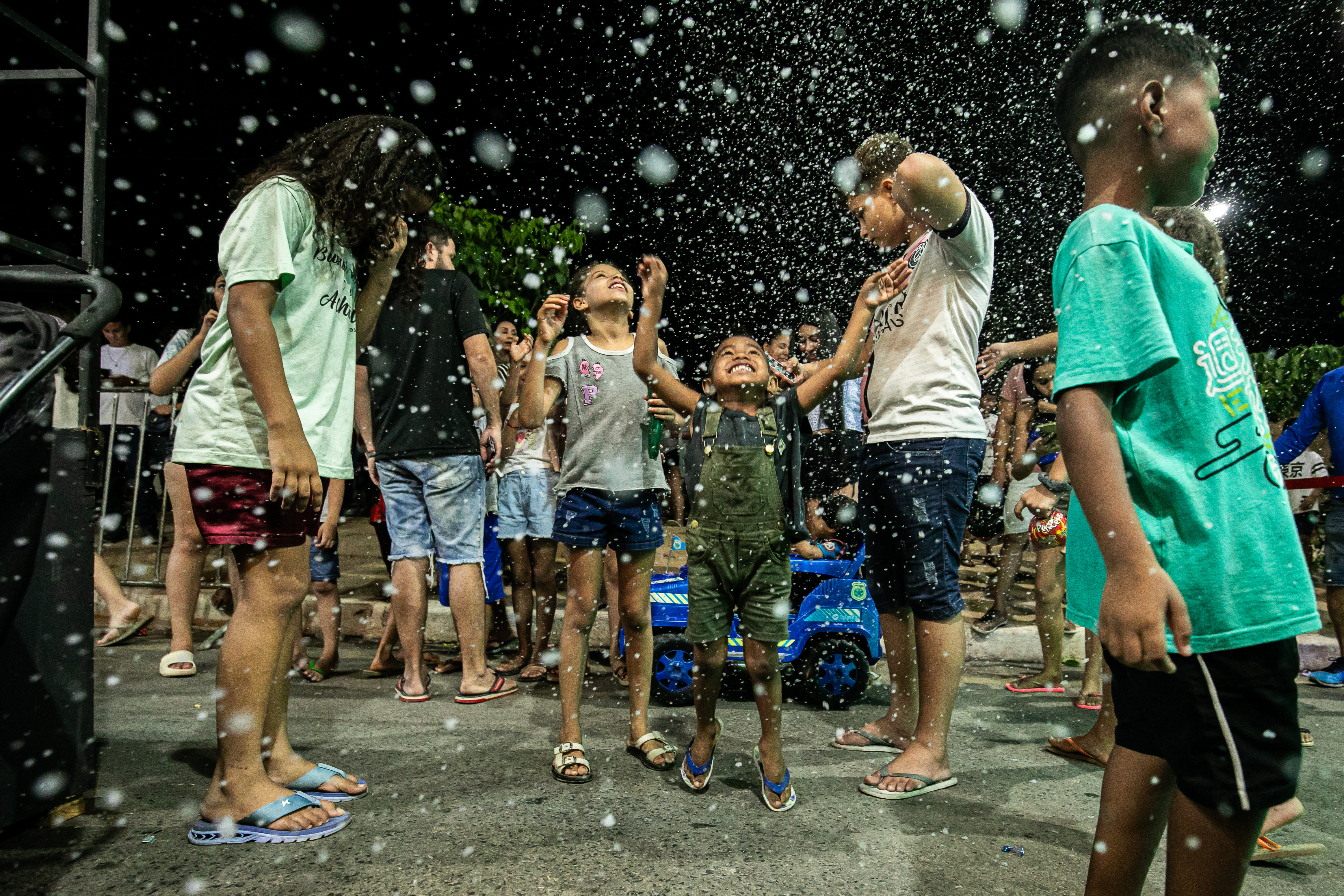 Para Kenia Silva de Jesus, moradora do bairro Pedra 90, o evento foi uma oportunidade imperdível. Ela levou seus dois filhos, de 2 e 11 anos, para participar da festa no Jardim União, onde sua mãe mora, já que não conseguiram ir à celebração em seu bairro. “Achei a iniciativa muito interessante, porque aqui nos bairros mais afastados geralmente não tem atrativos para as crianças. Foi uma oportunidade divertida e inesperada para eles”, contou Kenia, enquanto observava os filhos brincando na espuma e se preparando para a foto com o Papai Noel.