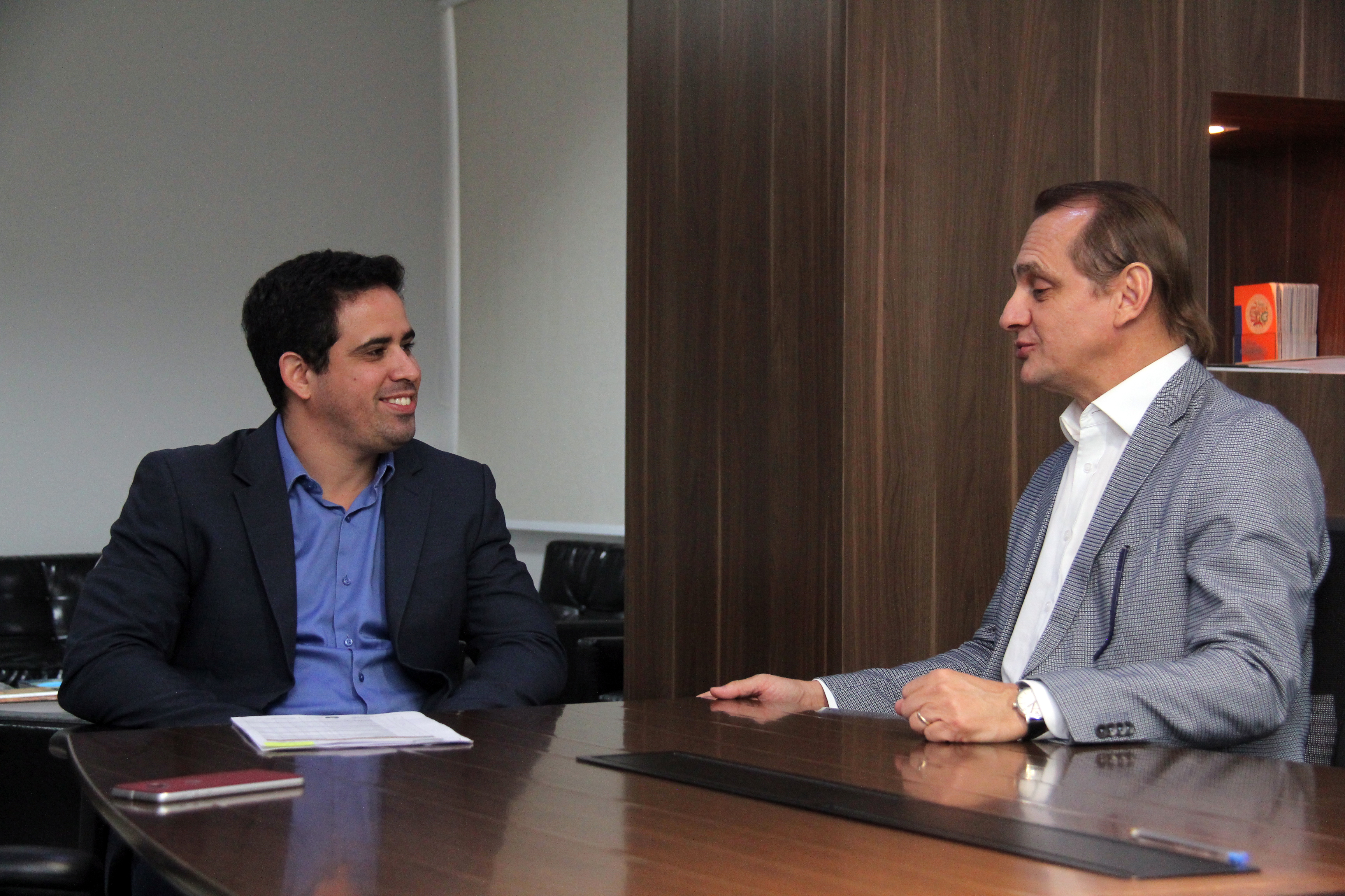 O vice-prefeito de Cuiabá, Niuan Ribeiro, recebeu nesta quarta-feira (23), no Palácio Alencastro, o secretário estadual de Cidades, Wilson Santos. Assim como já havia feito no último mês com o prefeito Emanuel Pinheiro, Wilson apresentou o andamento de importantes intervenções que o Estado deve realizar nos próximos meses na Capital. Durante o encontro foram debatidas demandas como obras na Ponte Benedito Figueiredo, drenagem no Córrego do Barbado, reforma do estádio Eurico Gaspar Dutra, dentre outras.