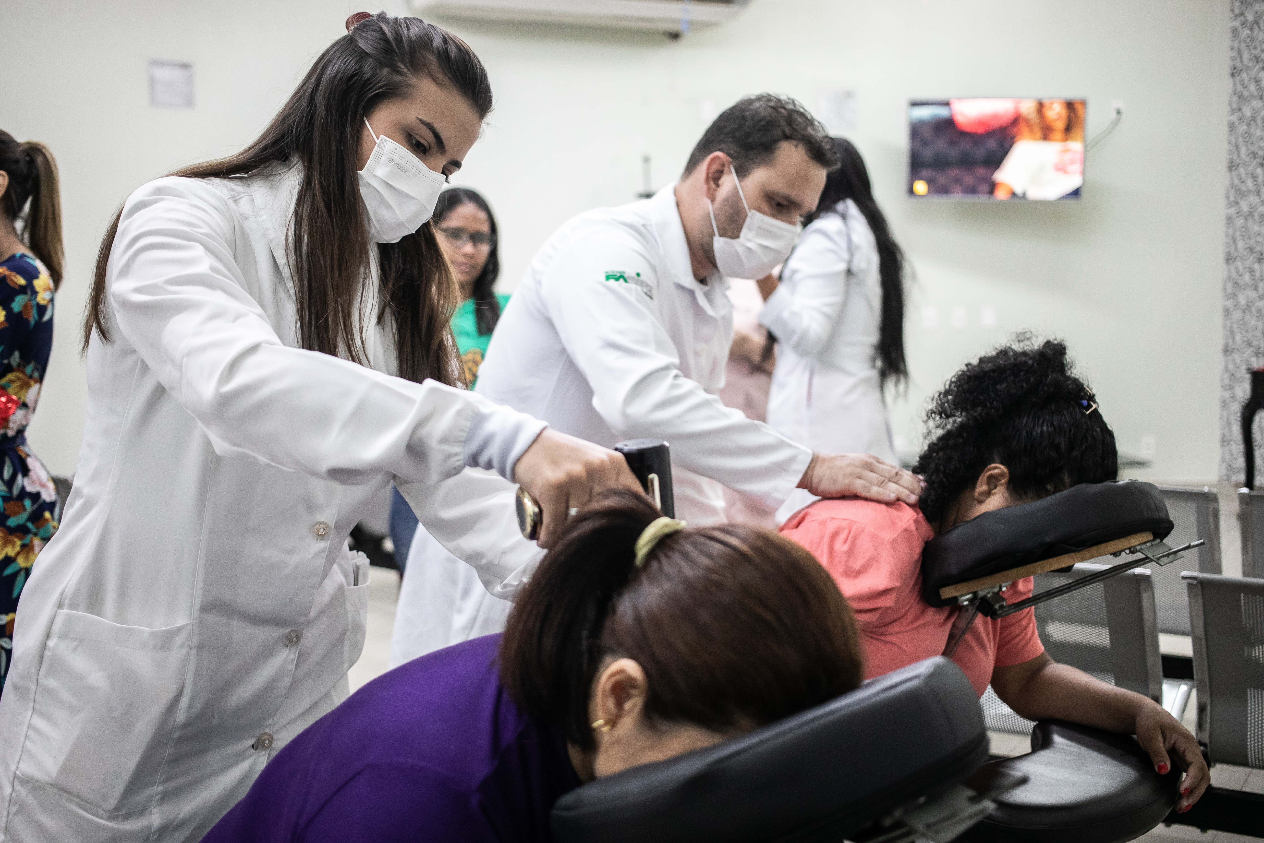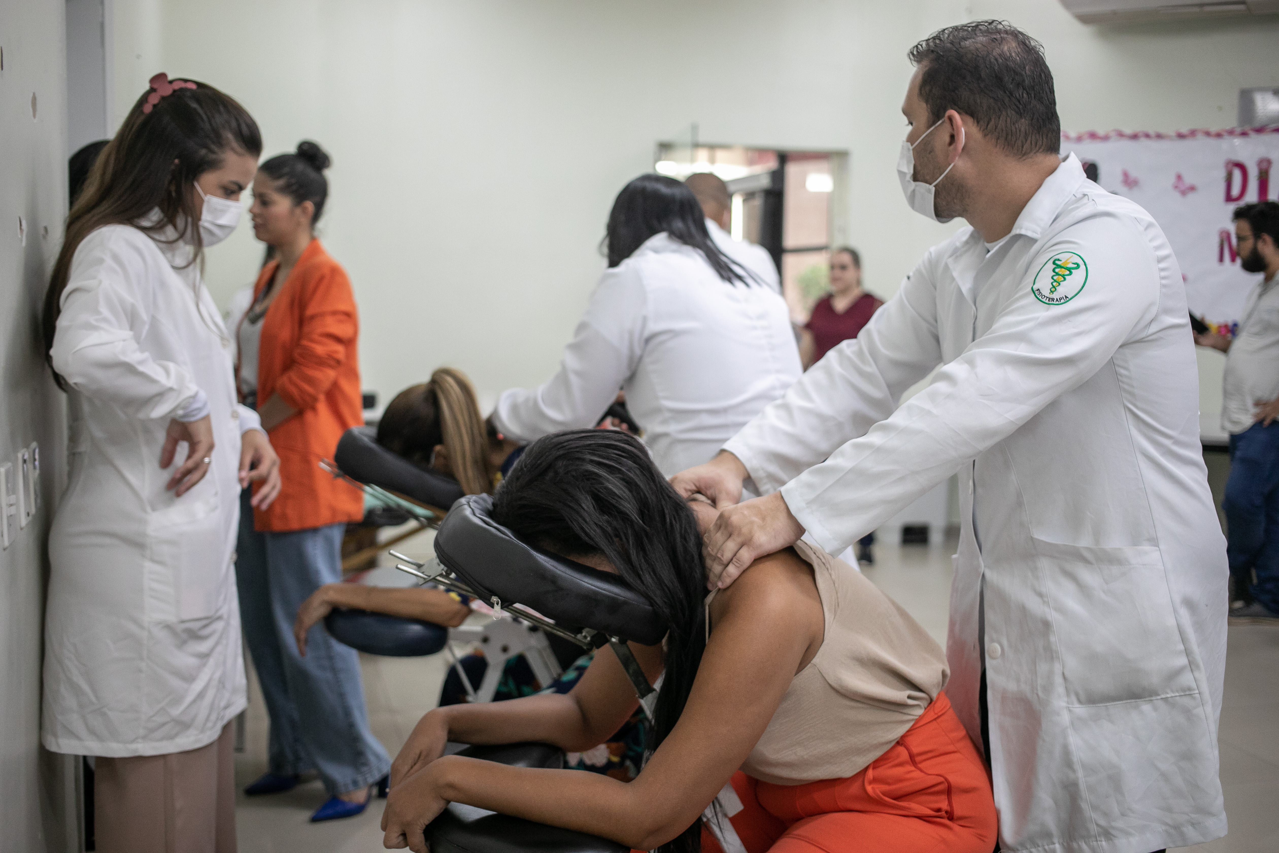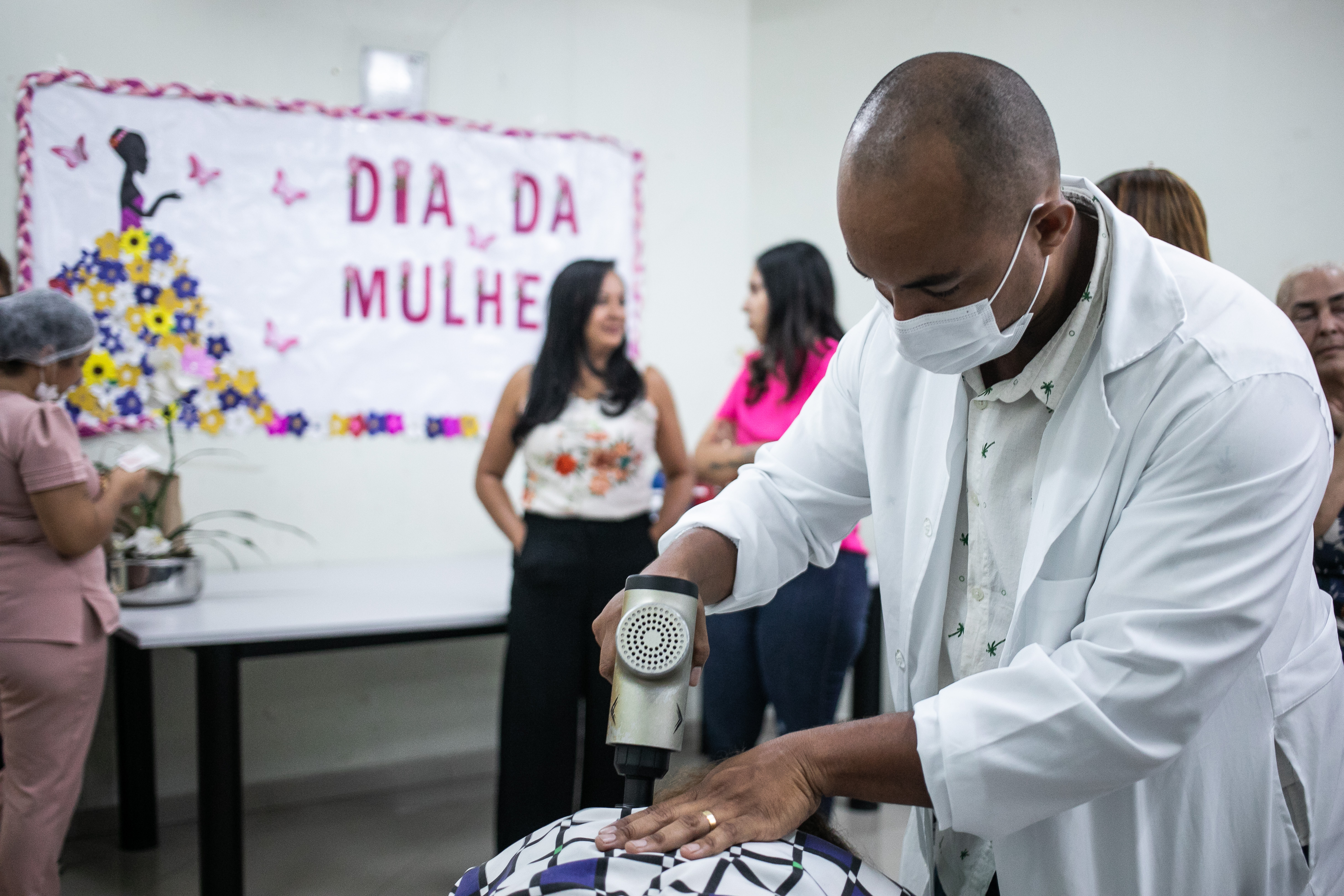 No dia das mulheres, descanso e relaxamento: servidoras do Hospital São Benedito recebem massagem e aprendem sobre autocuidado