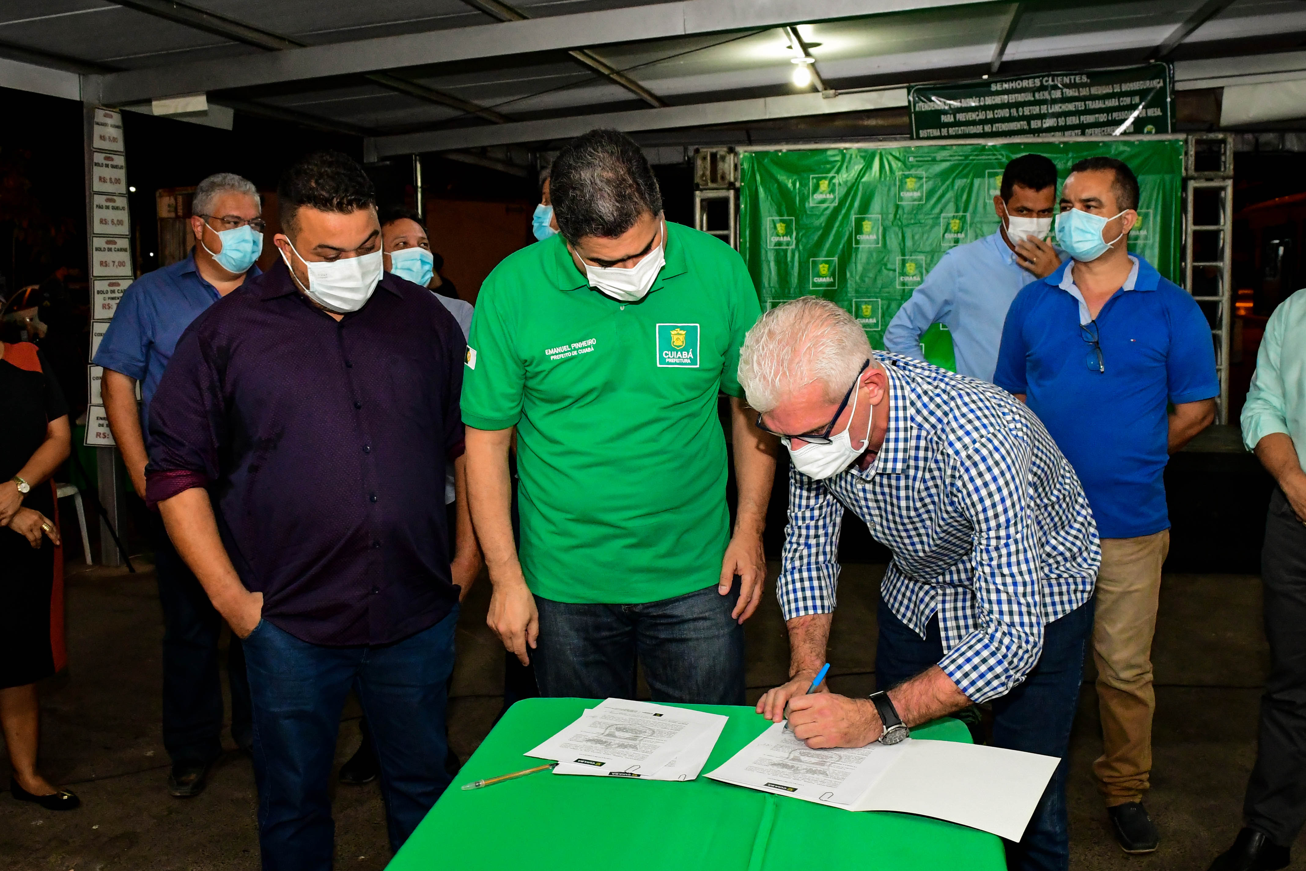Na data especial de homenagem aos feirantes, o prefeito de Cuiabá, Emanuel Pinheiro, oficializou o termo de comodato para administração do “Campo do Bode”. O espaço é tradicionalmente utilizado para realização do Campeonato dos Feirantes do Mercado do Porto, que este ano completa 16 anos. A solenidade foi realizada na noite de 25 de agosto.