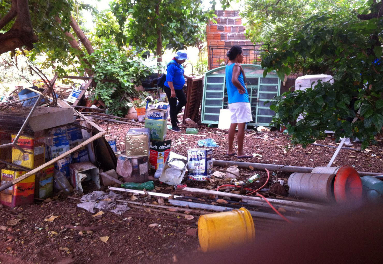 Dona Avelina disse que todos os dias observa a caixa d’água, limpa as bordas assim como os recipientes de água dos animais. Não deixa acumular o lixo da dengue e mantém garrafas de boca para baixo.
