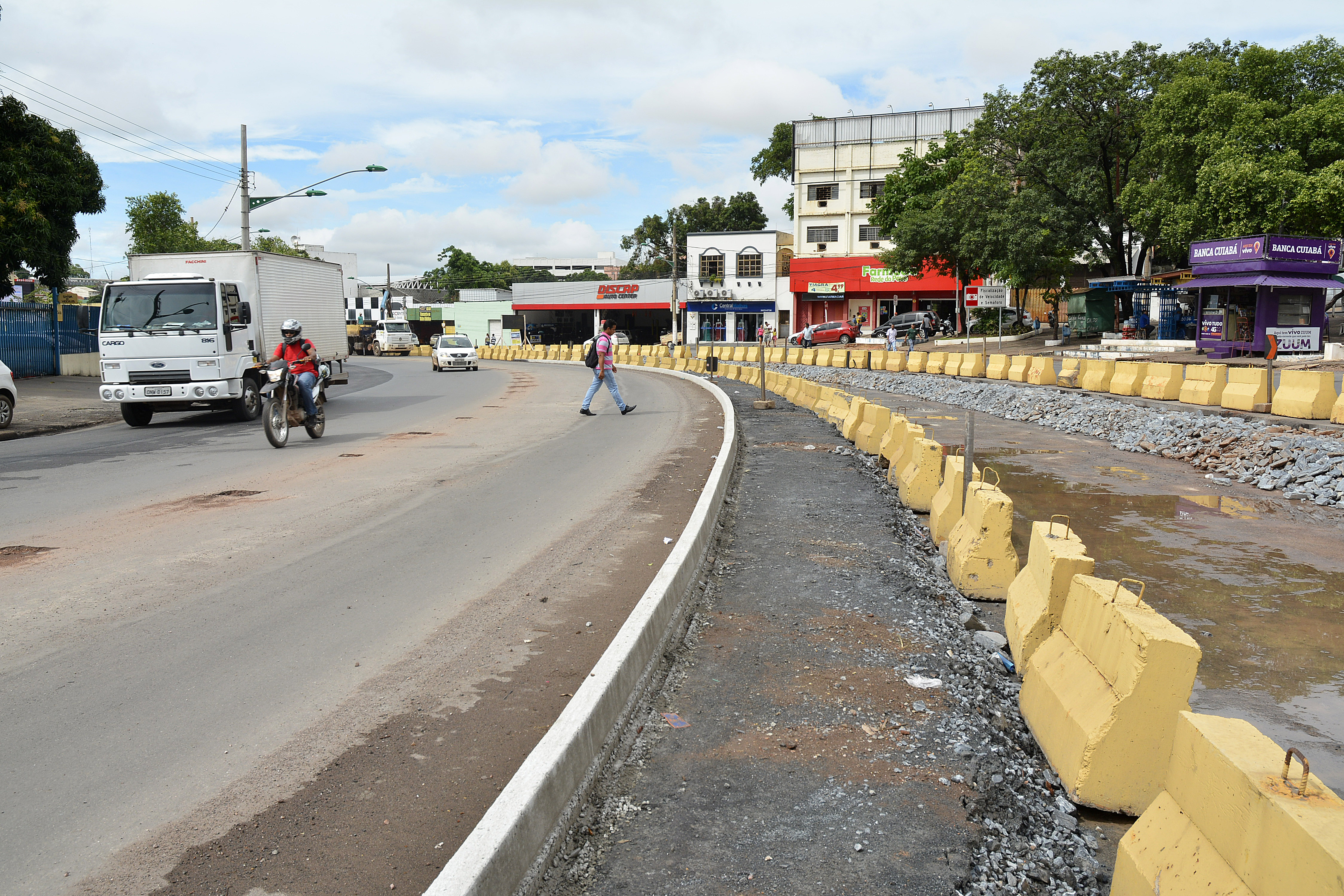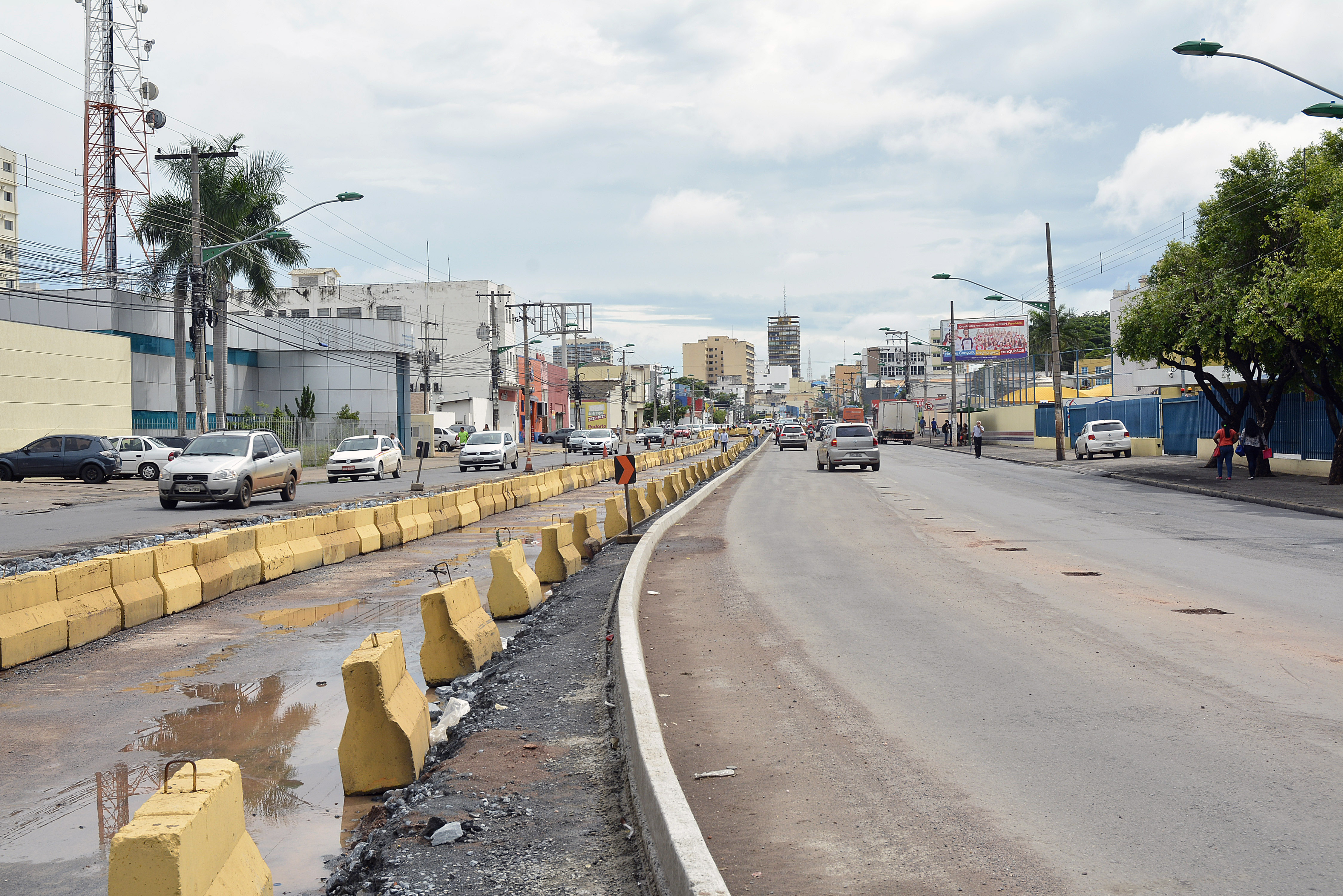 Na manhã desta segunda-feira (14), a Secretaria de Obras Públicas está concluindo a retirada dos blocos de concreto (gelo-baiano) colocados ao longo da vala que foi aberta para a implantação do VLT e que orientavam os motoristas para evitar acidentes. A Secretaria de Obras Públicas também está finalizando as obras de meio-fio e vai iniciar ainda esta semana a construção de mais uma pista no canteiro central com uma extensão de 120 metros, que vai até próximo à Praça Ipiranga.