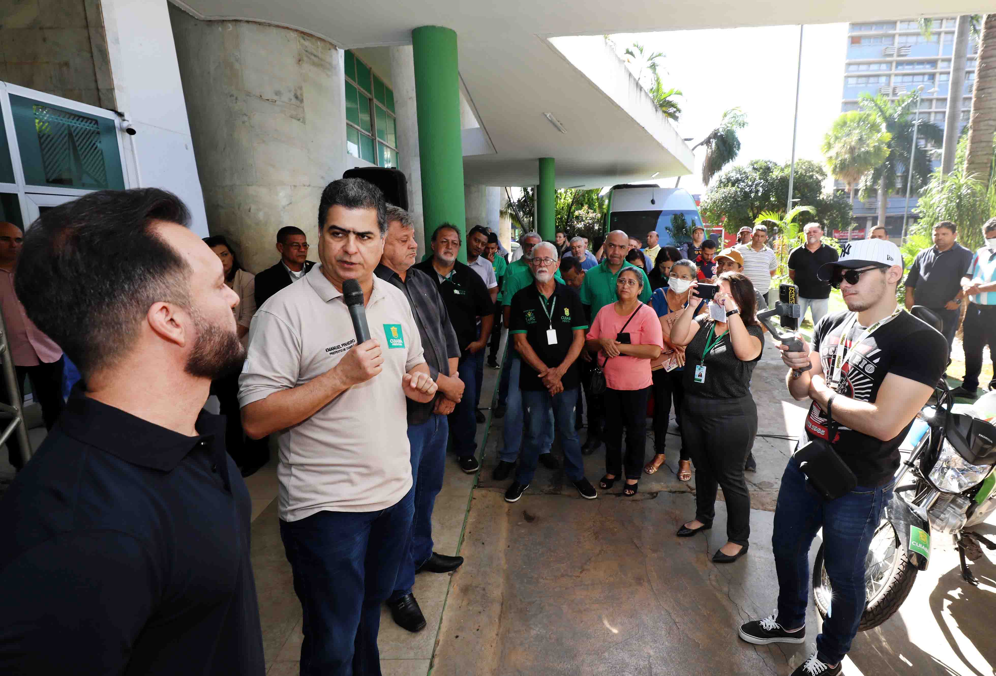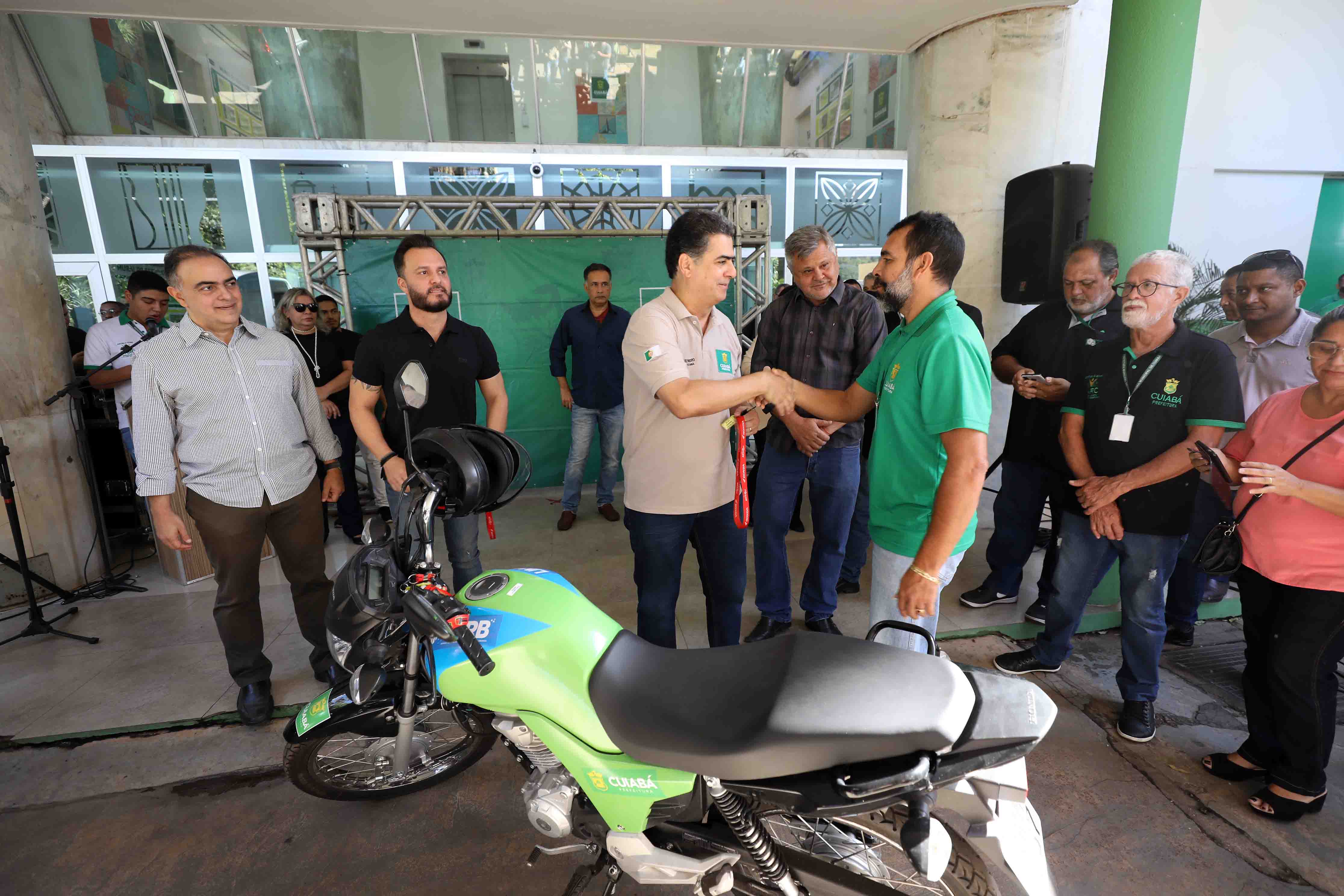 Melhorar as condições de trabalho do servidor público para que as ações da Prefeitura de Cuiabá cheguem com mais qualidade à população. Seguindo essa premissa, o prefeito Emanuel Pinheiro entregou nesta segunda-feira (4), 12 vans para transporte de operadores de limpeza pública e 12 motocicletas para fiscalização dos serviços ligados à Empresa Cuiabana de Zeladoria e Serviços Urbanos (Limpurb).