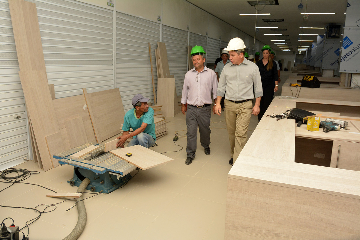 “Marco histórico” e “revolução” foram as palavras utilizadas pelo prefeito Mauro Mendes nesta terça-feira (30), durante a vistoria das futuras instalações do novo Shopping Popular. Na companhia de Misael Galvão, presidente da Associação dos Camelôs do Shopping Popular, ele conheceu a nova estrutura, que também terá um piso superior com uma unidade do Ganha Tempo.