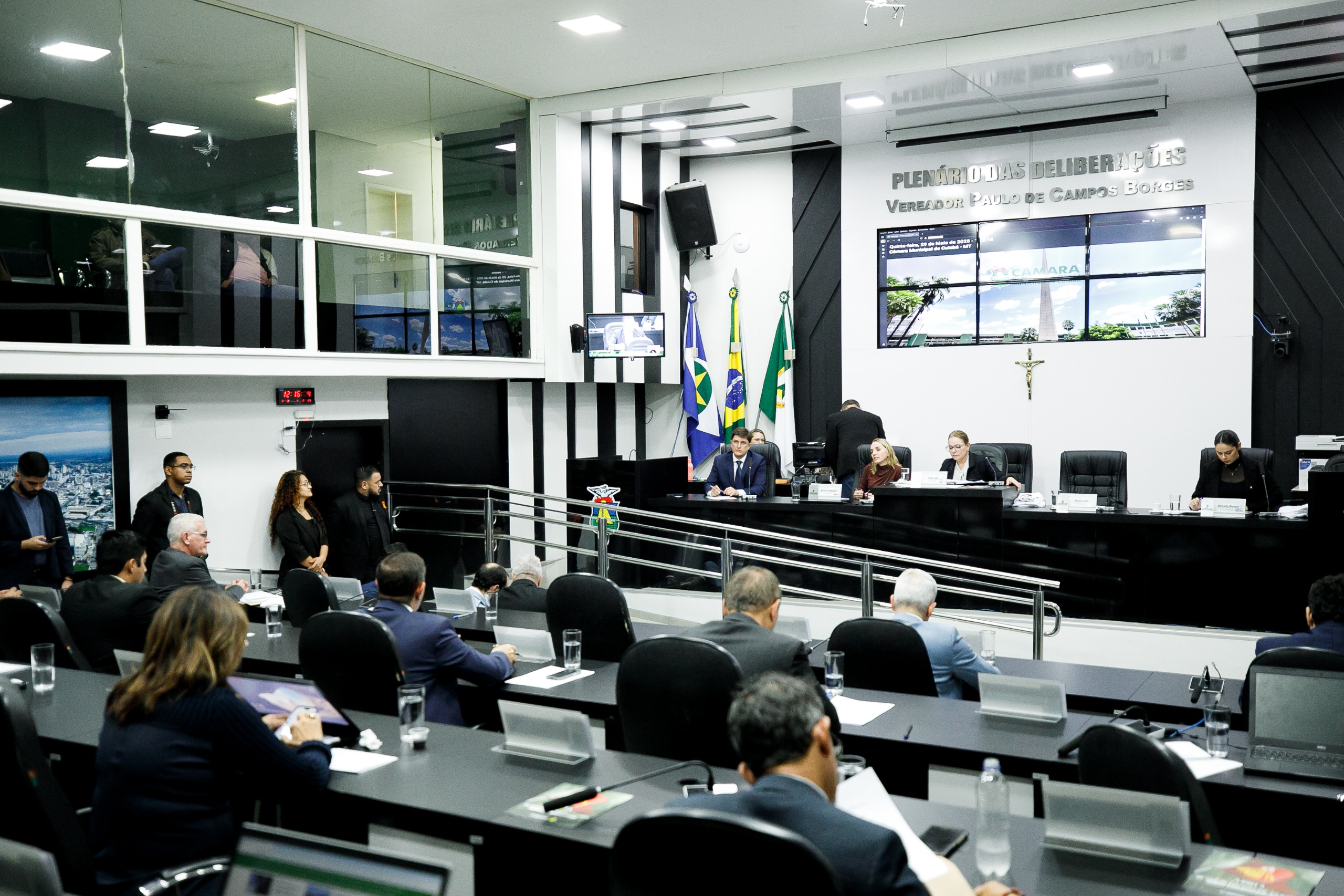 A foto mostra o plenário da Câmara, durante sabatina aos novos diretores da Agência Cuiabá Regula.